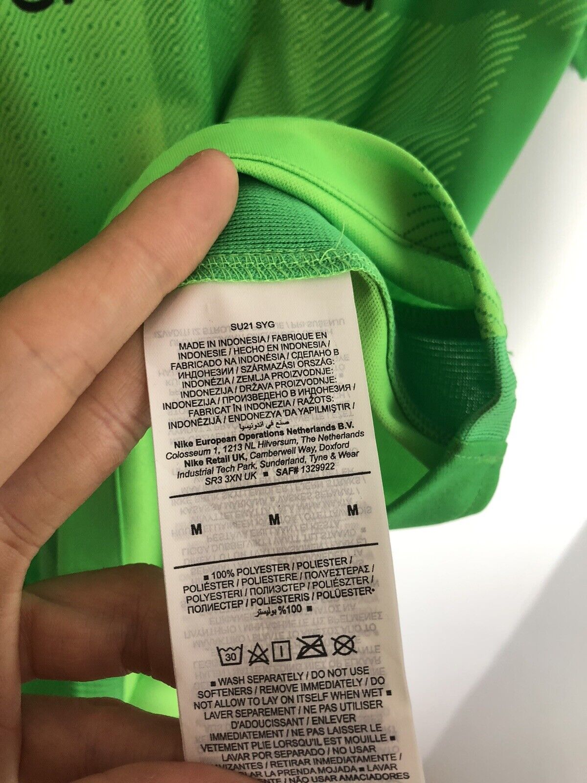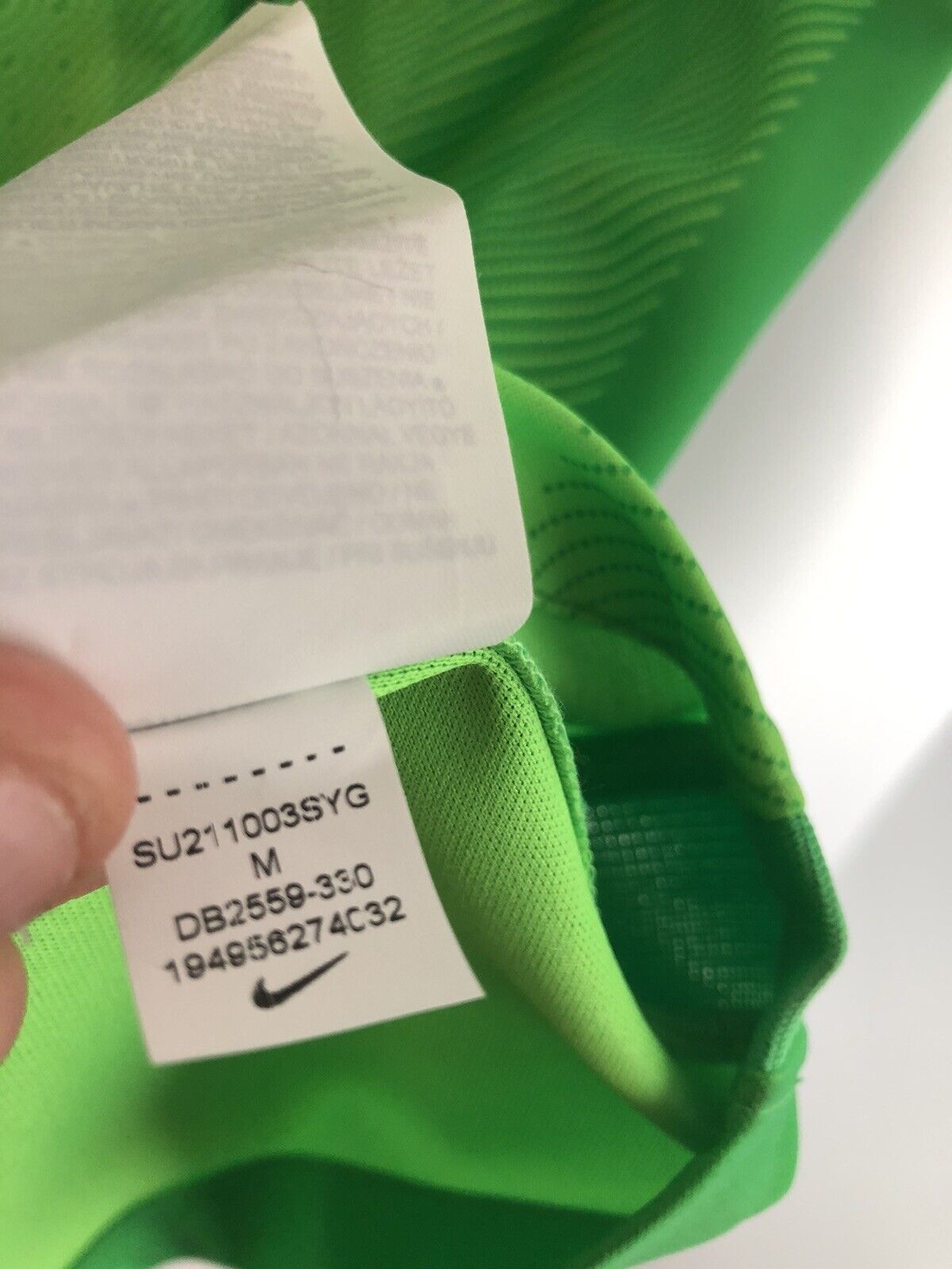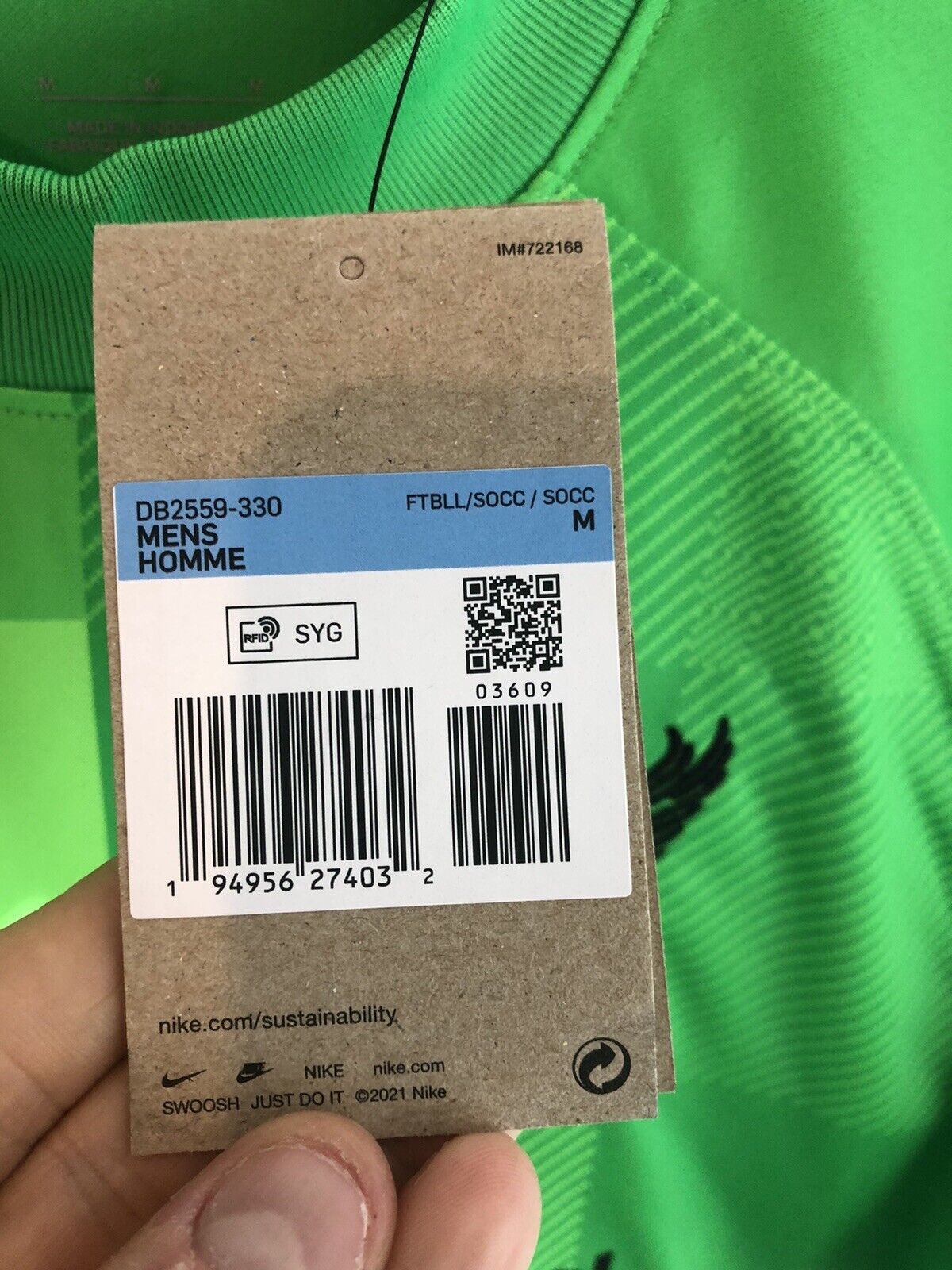 Show your support for Liverpool with this brand new A. Becker #1 2021/22 home Champions League goalkeeper shirt. The stylish green shirt features short sleeves and a loose fit, making it suitable for adults in a size medium. The shirt is made by Nike and has a product code of DB2559-330, ensuring that you get a genuine item. This shirt has collar to hem measurements of 29 inches and pit to pit measurements of 20 inches. The shirt has a official Liverpool A. Becker #1 nameset and official Premier League player size patch. This shirt is suitable for wearing casually or at the match, so why not show your love for Liverpool by getting this shirt today.