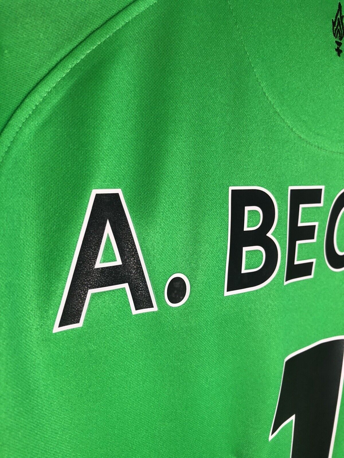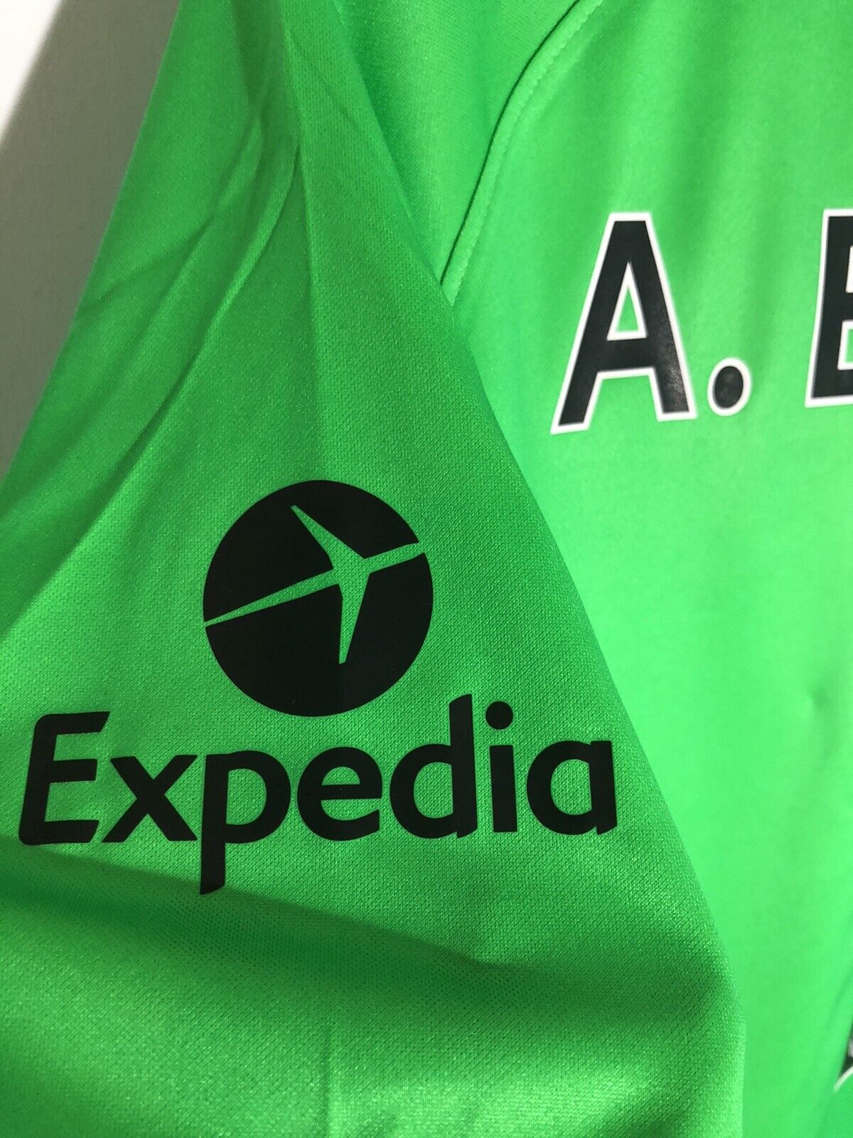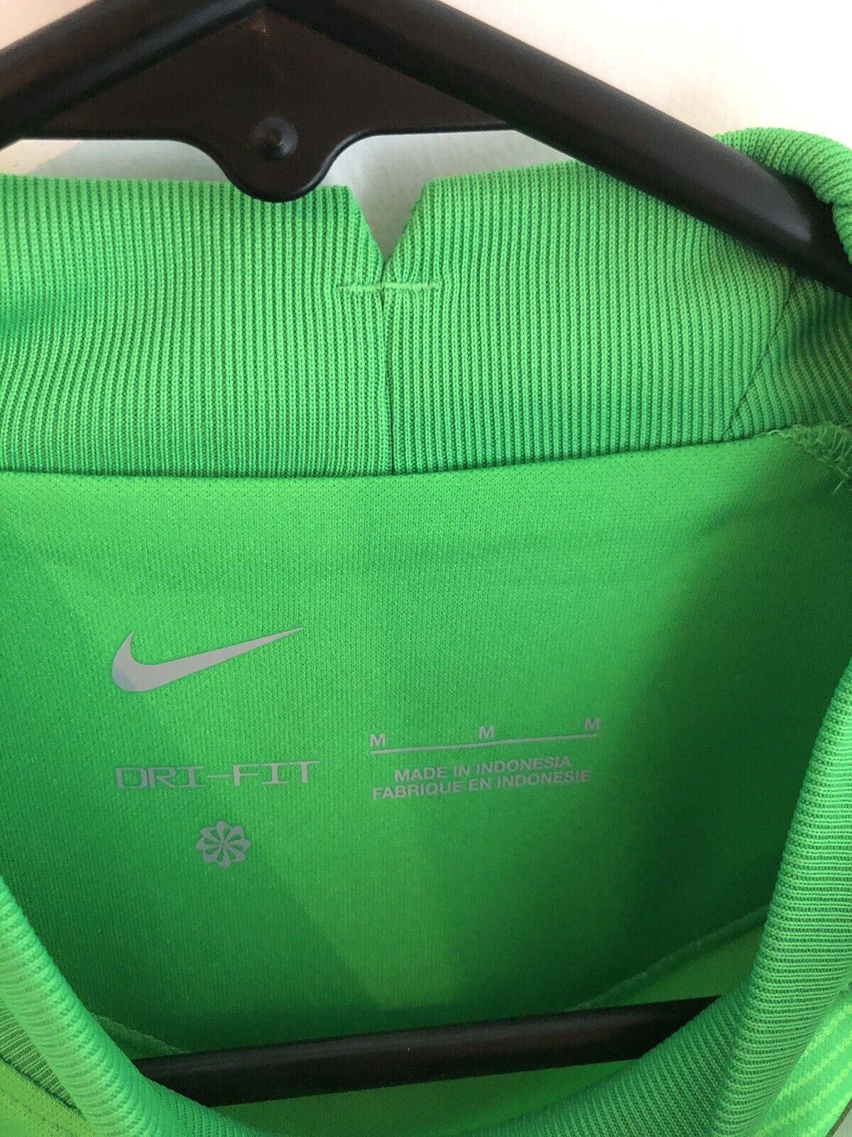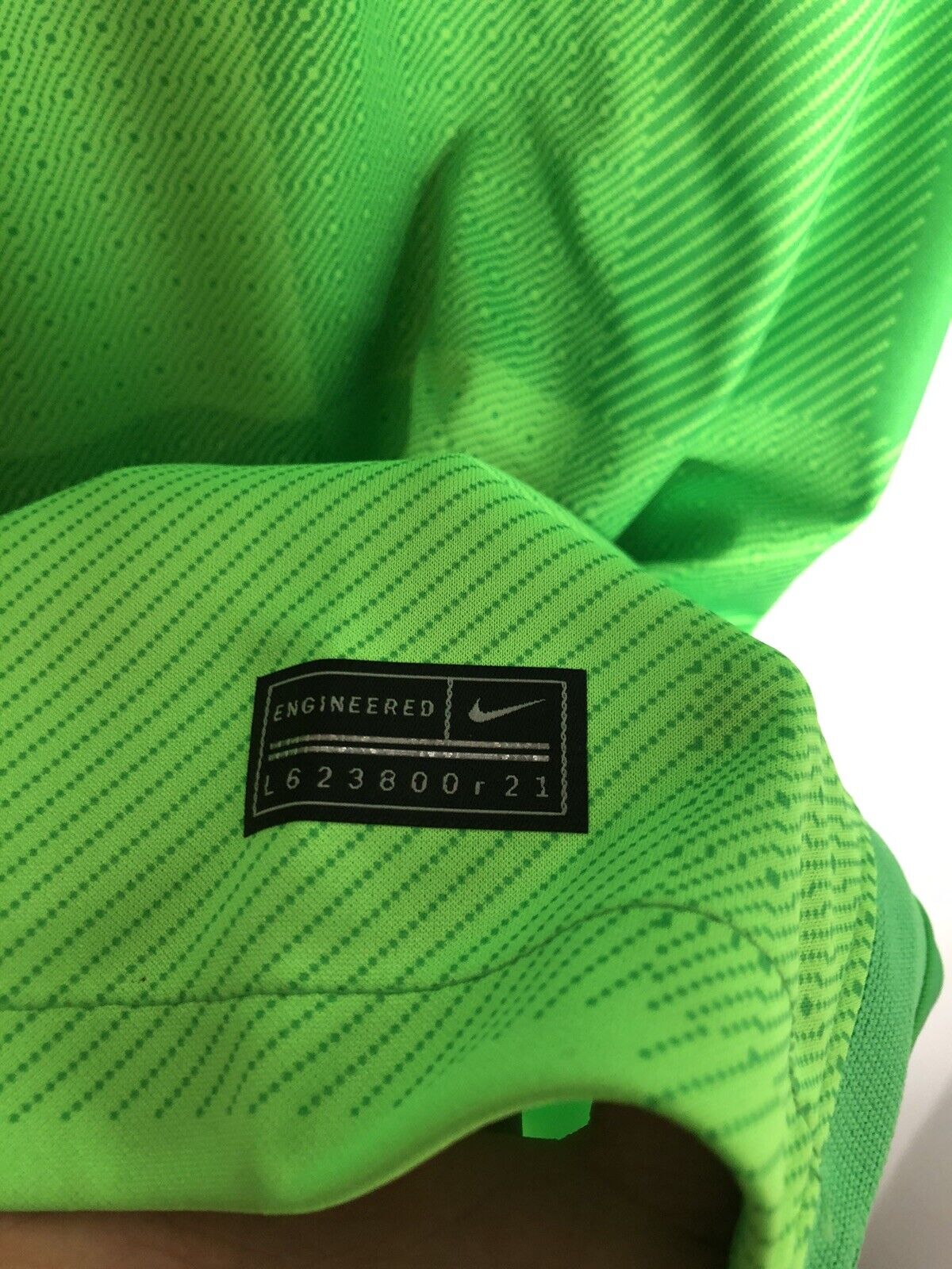 Show your support for Liverpool with this brand new A. Becker #1 2021/22 home Champions League goalkeeper shirt. The stylish green shirt features short sleeves and a loose fit, making it suitable for adults in a size medium. The shirt is made by Nike and has a product code of DB2559-330, ensuring that you get a genuine item. This shirt has collar to hem measurements of 29 inches and pit to pit measurements of 20 inches. The shirt has a official Liverpool A. Becker #1 nameset and official Premier League player size patch. This shirt is suitable for wearing casually or at the match, so why not show your love for Liverpool by getting this shirt today.