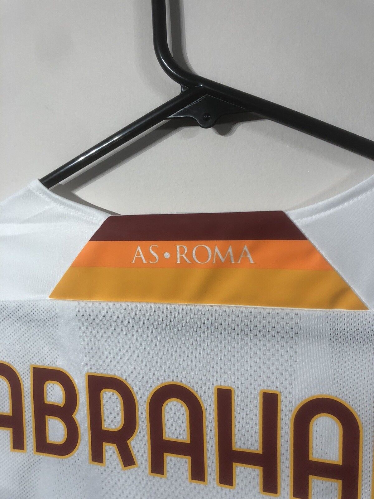 The white shirt boasts the AS Roma crest on the chest, along with the New Balance logo, perfect for when the team is travelling to take on opponents. This shirt has a Abraham's #9 nameset. The shirt is in brand new condition and ready to wear. Represent your love for AS Roma with this stunning shirt today.