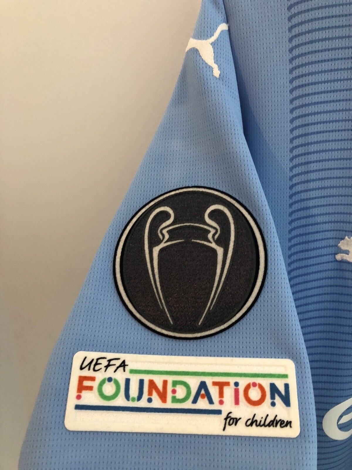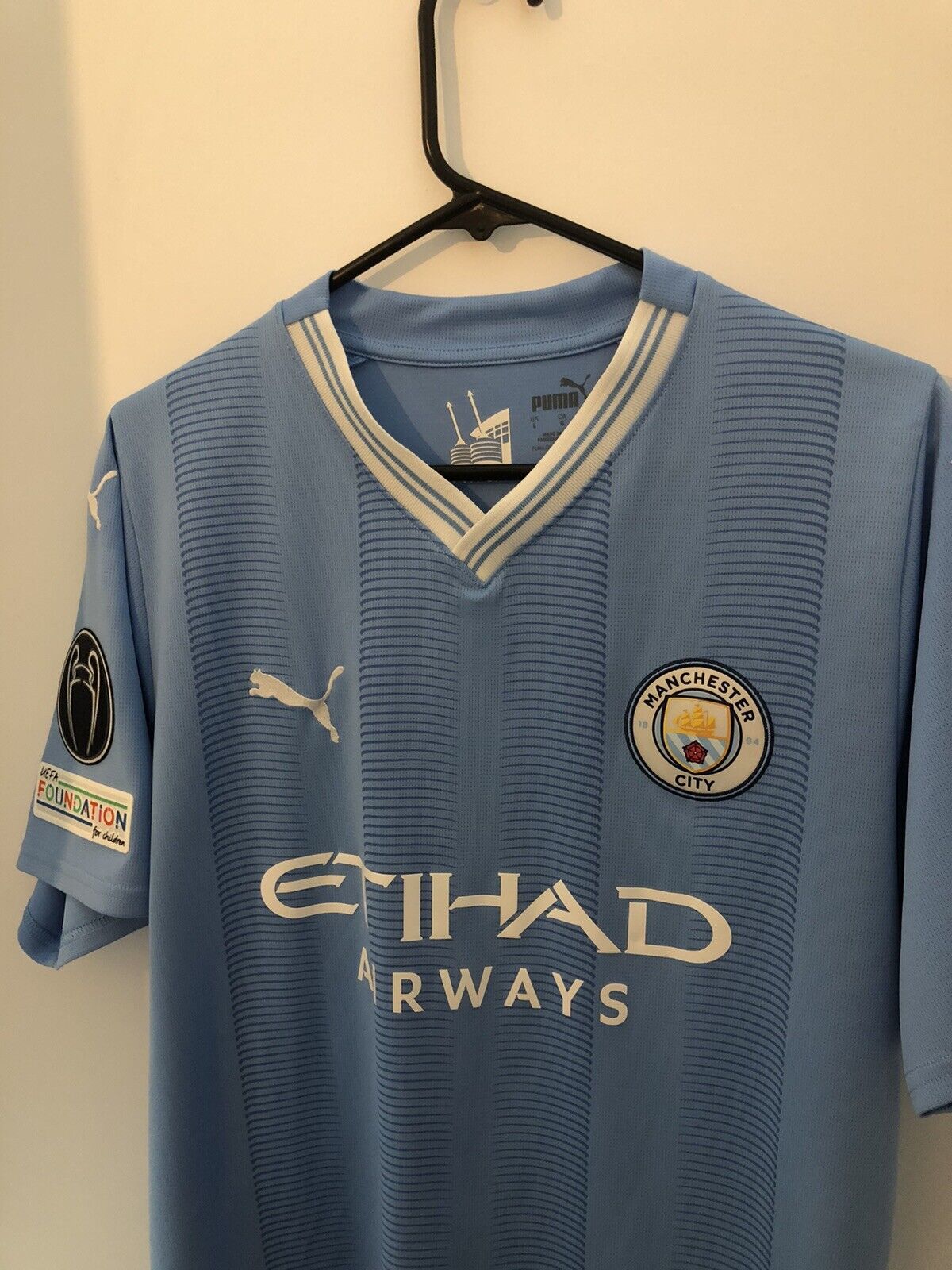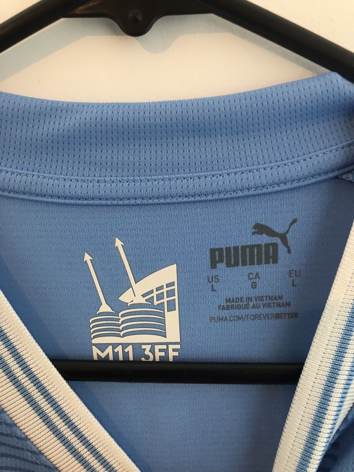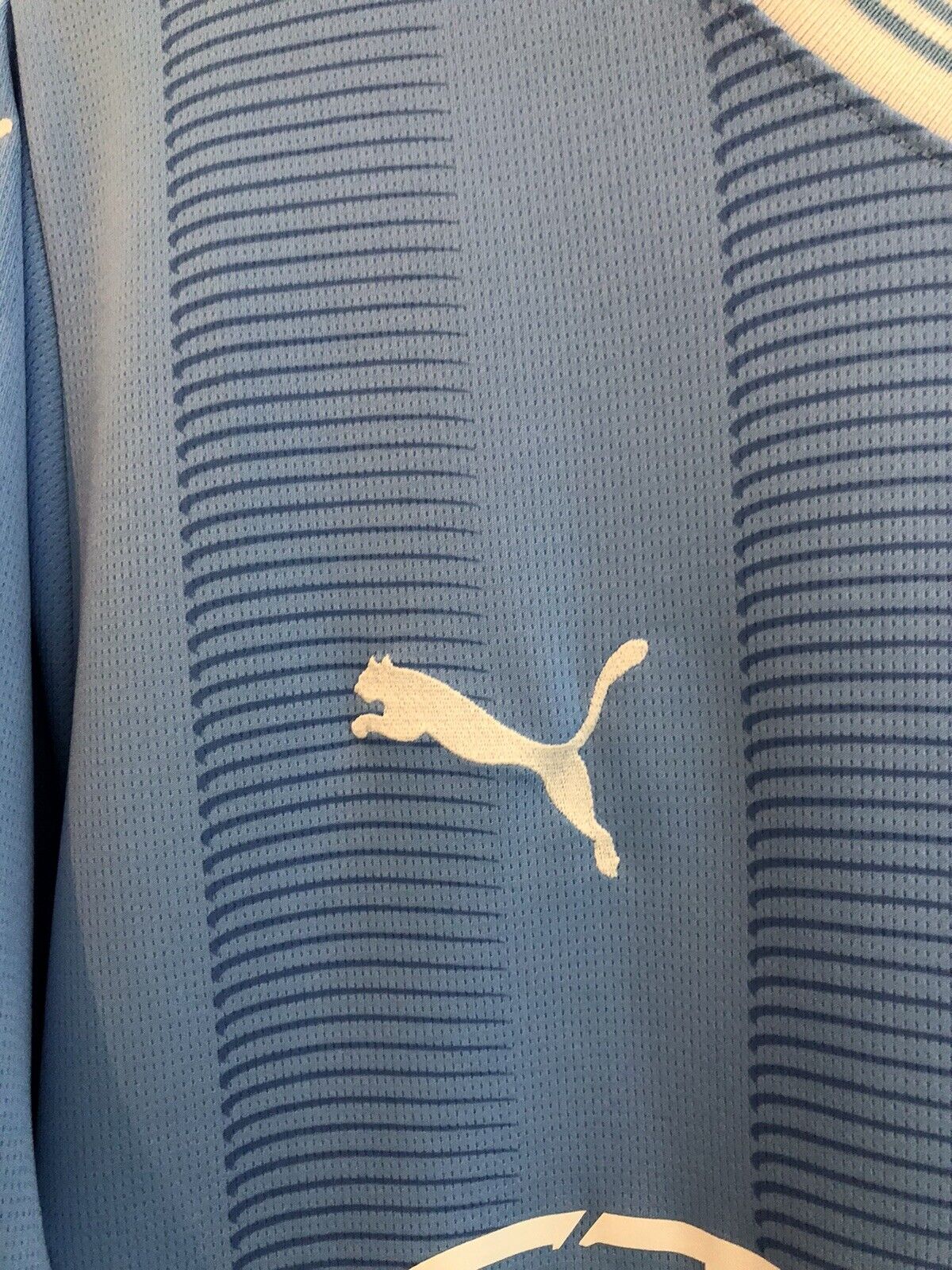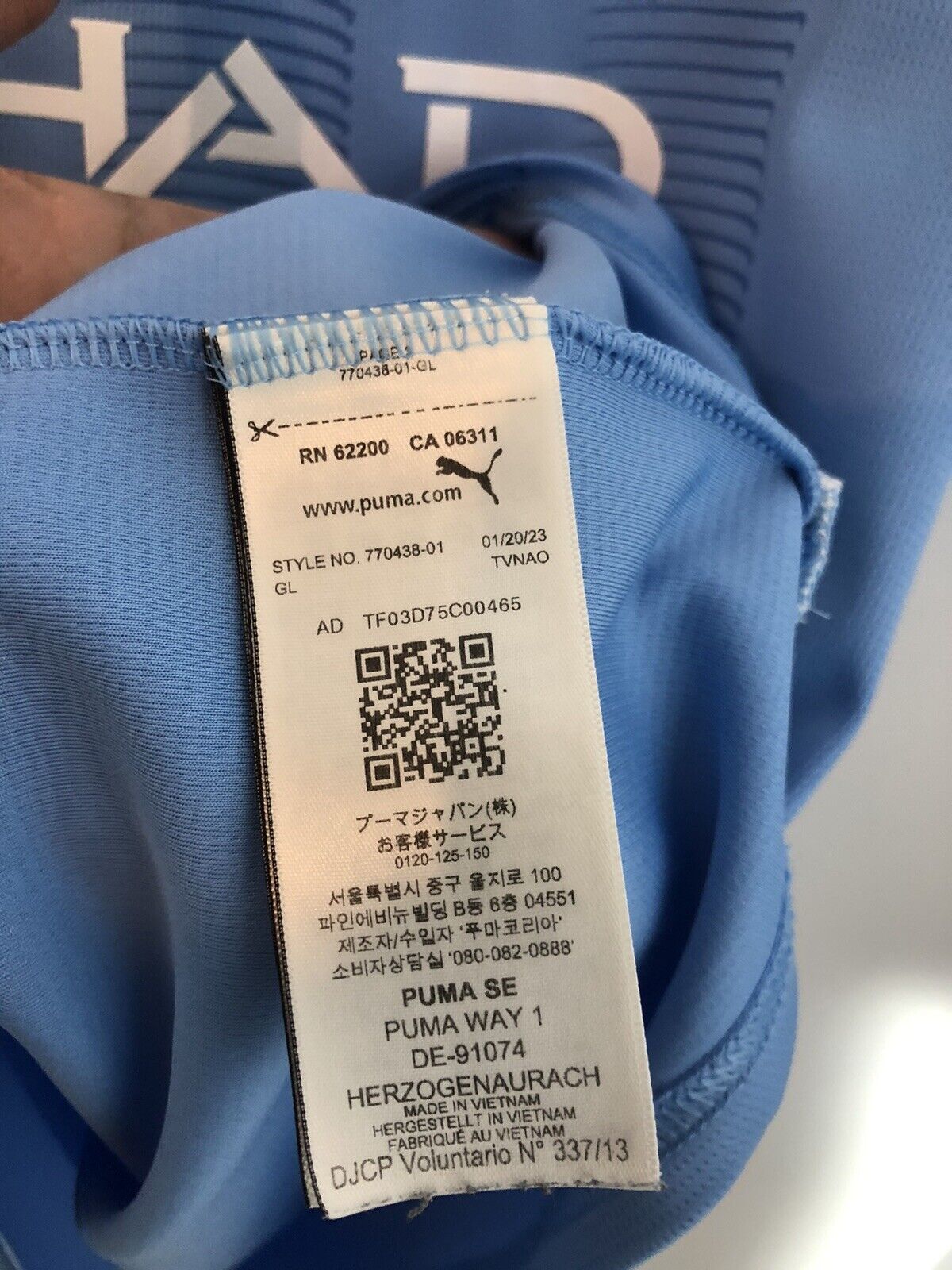 Show your support for Manchester City with this excellent condition Akanji #25 2023/24 home football shirt. The shirt features short sleeves and a loose fit, making it suitable for adults in a size large. The shirt is made by PUMA and has a product code of 770438-01, ensuring that you get a genuine item. This shirt has collar to hem measurements of 29 inches and pit to pit measurements of 21 inches. The shirt has an official Akanji #25 nameset and Champions League patches. This shirt is suitable for wearing casually or at the match, so why not show your love for Manchester City by getting this shirt today.