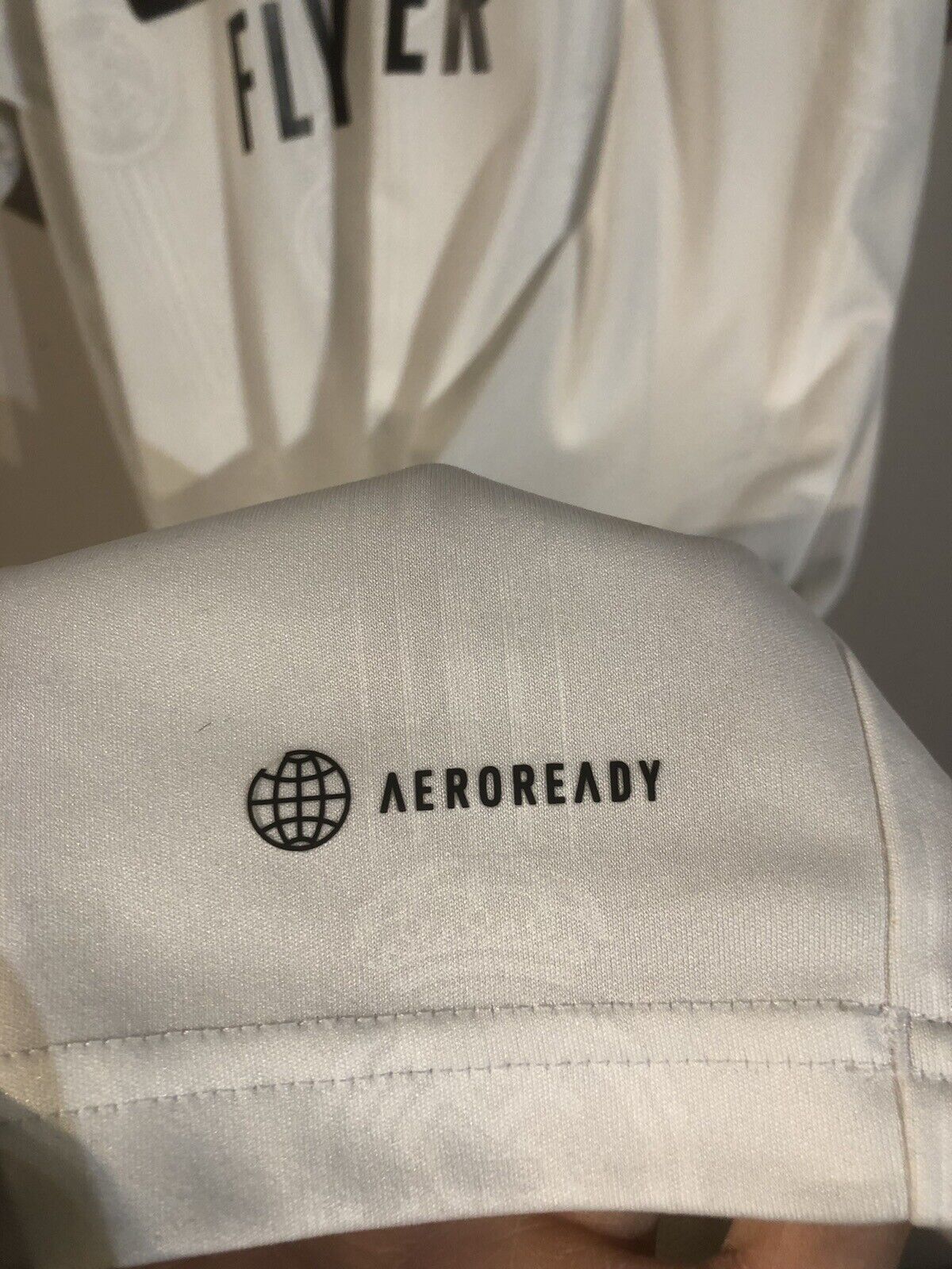 The shirt is in excellent condition and has never been worn, perfect for adding to your sports memorabilia collection. The shirt has a white base colour with the Real Madrid crest on the left chest and the adidas logo on the right. Get this shirt now to show your support for the team and add a valuable item to your collection.
