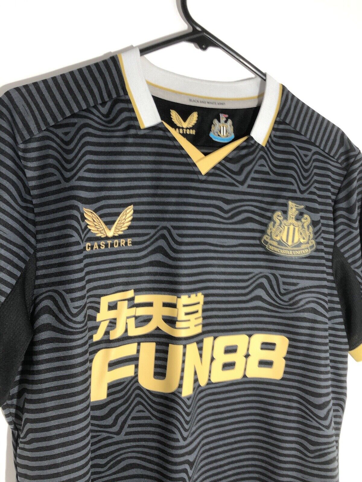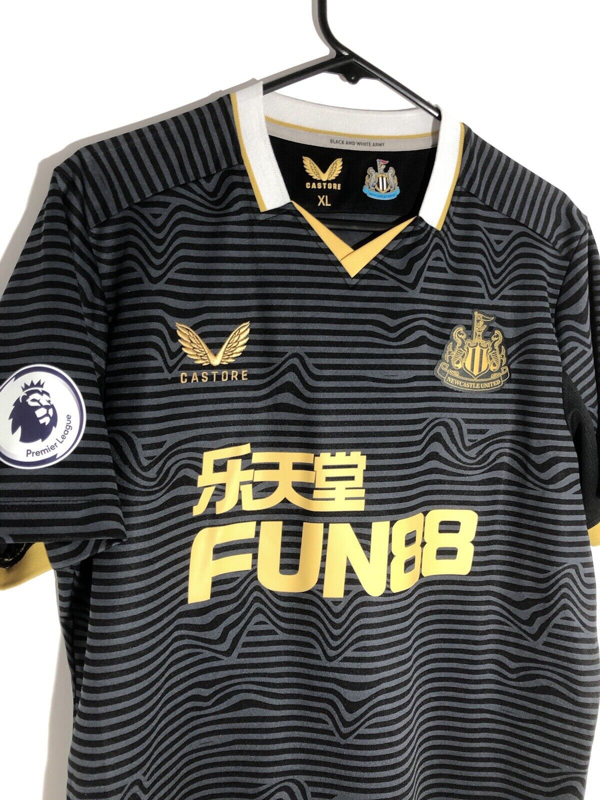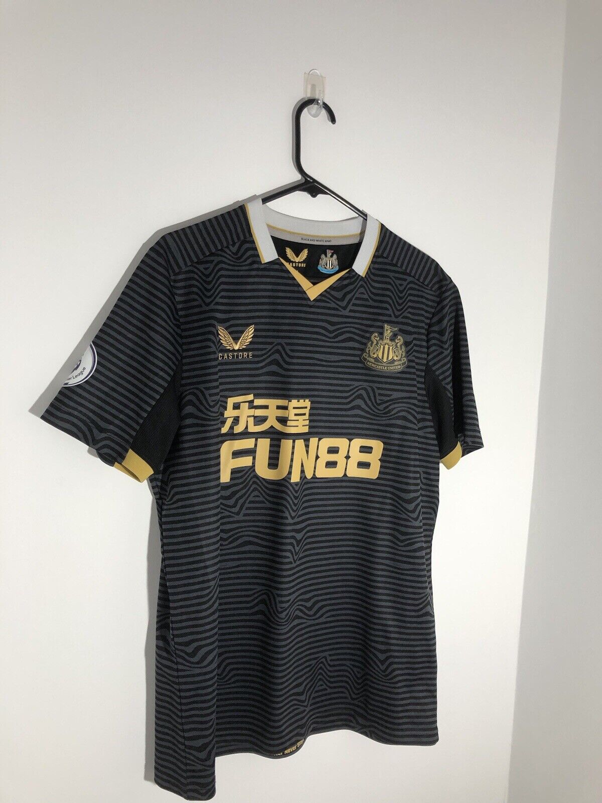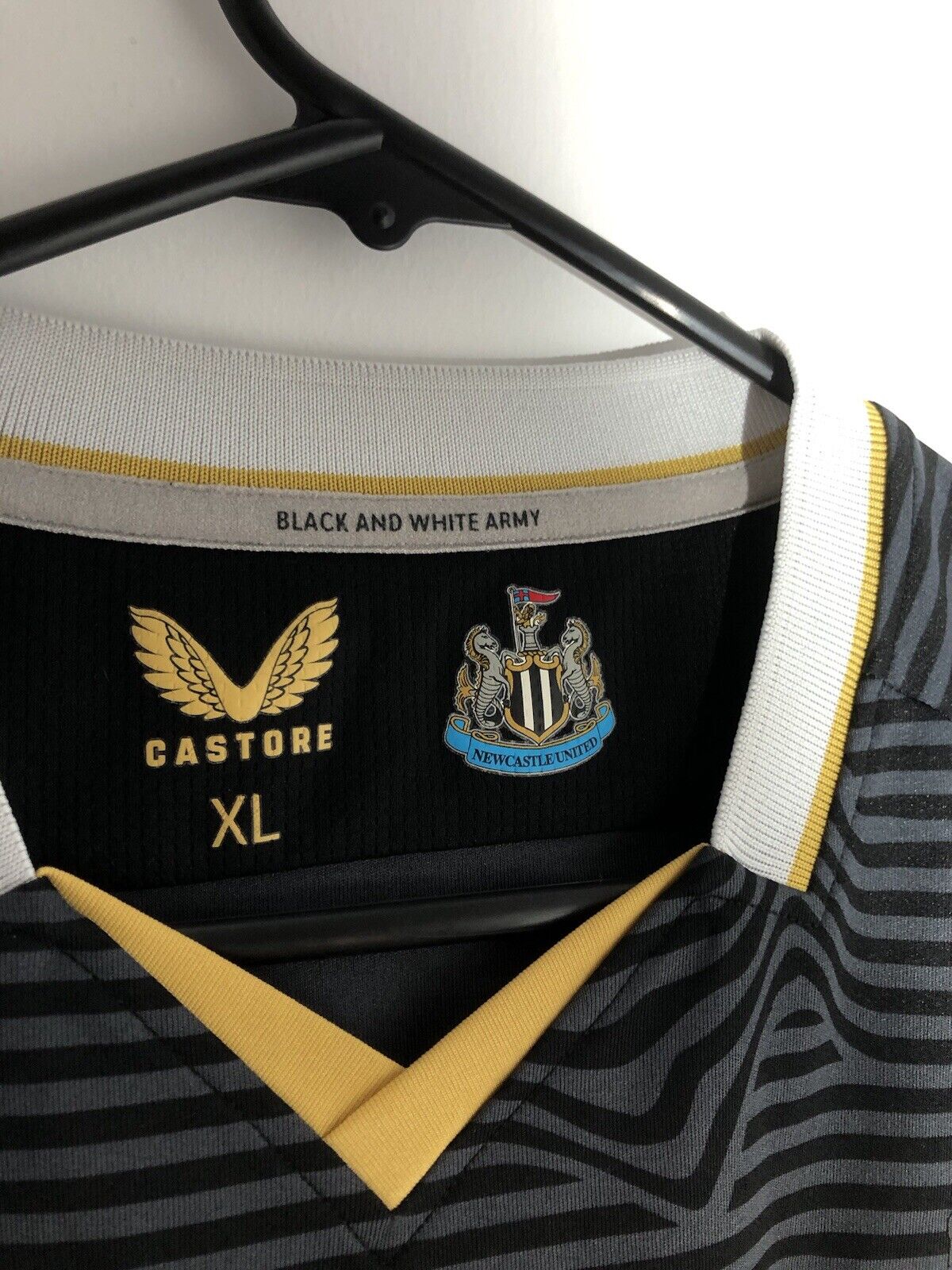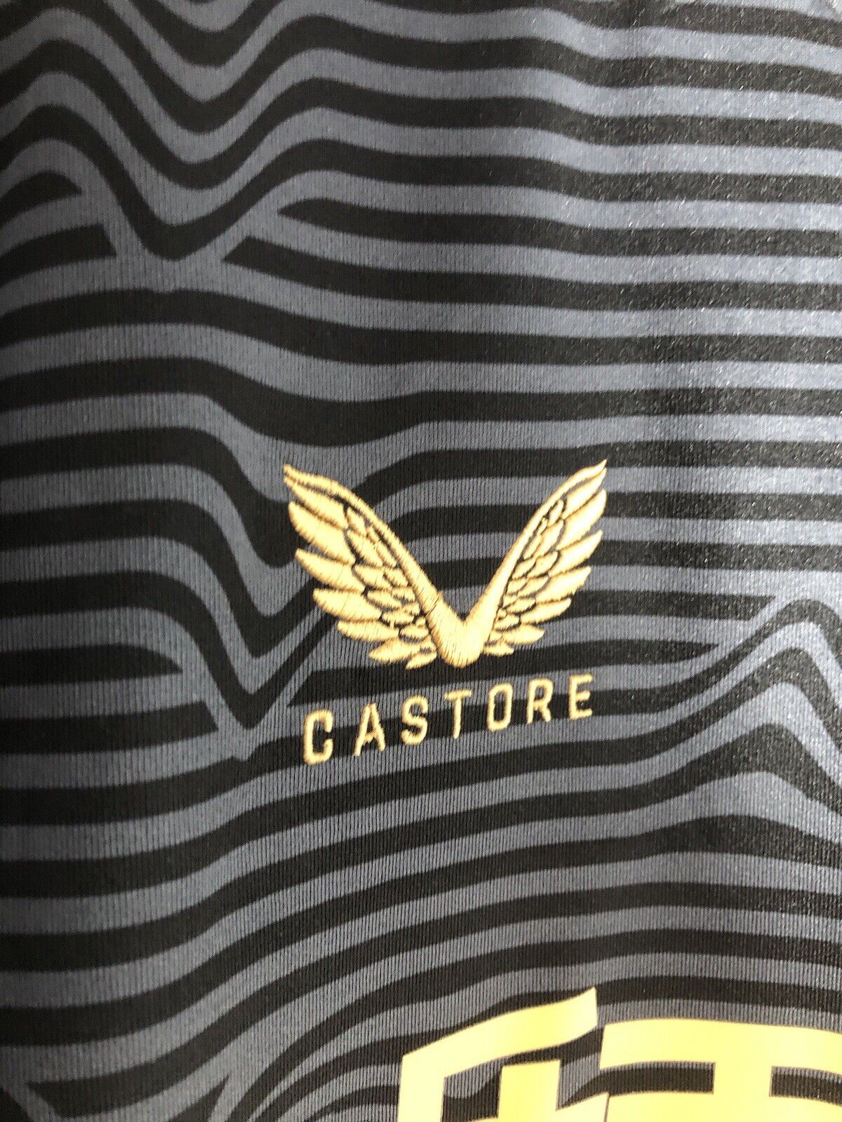 Show your support for Newcastle with this excellent condition Almiron #24 2021/22 away football shirt. The stylish away shirt features short sleeves and a loose fit, making it suitable for adults in a size Xl. The shirt is made by Castore and this shirt has collar to hem measurements of 30 inches and pit to pit measurements of 22 inches. The shirt has a official Newcastle Almiron #24 nameset and a player size Premier League patch. This shirt is suitable for wearing casually or at the match, so why not show your love for Newcastle by getting this shirt today.