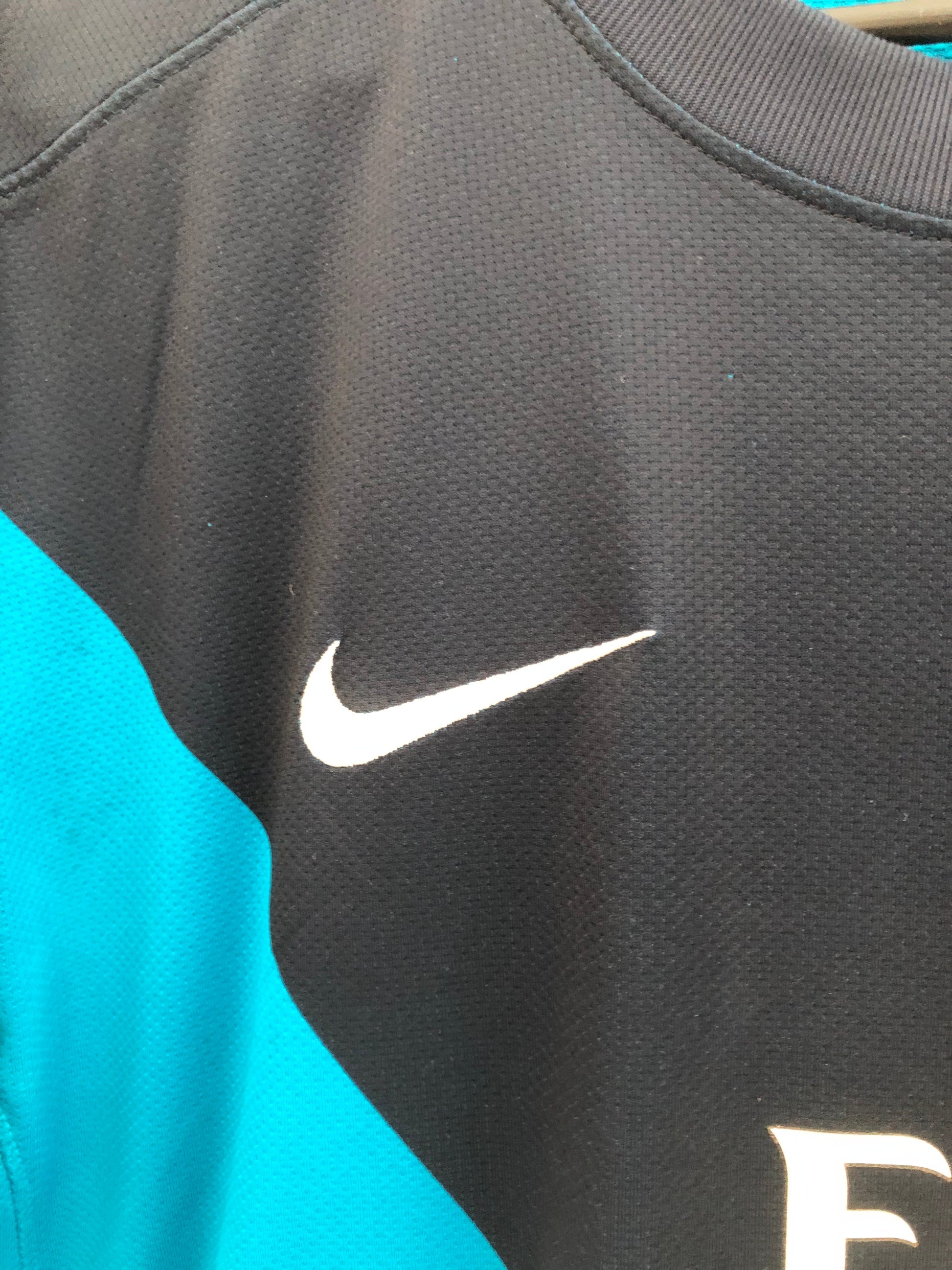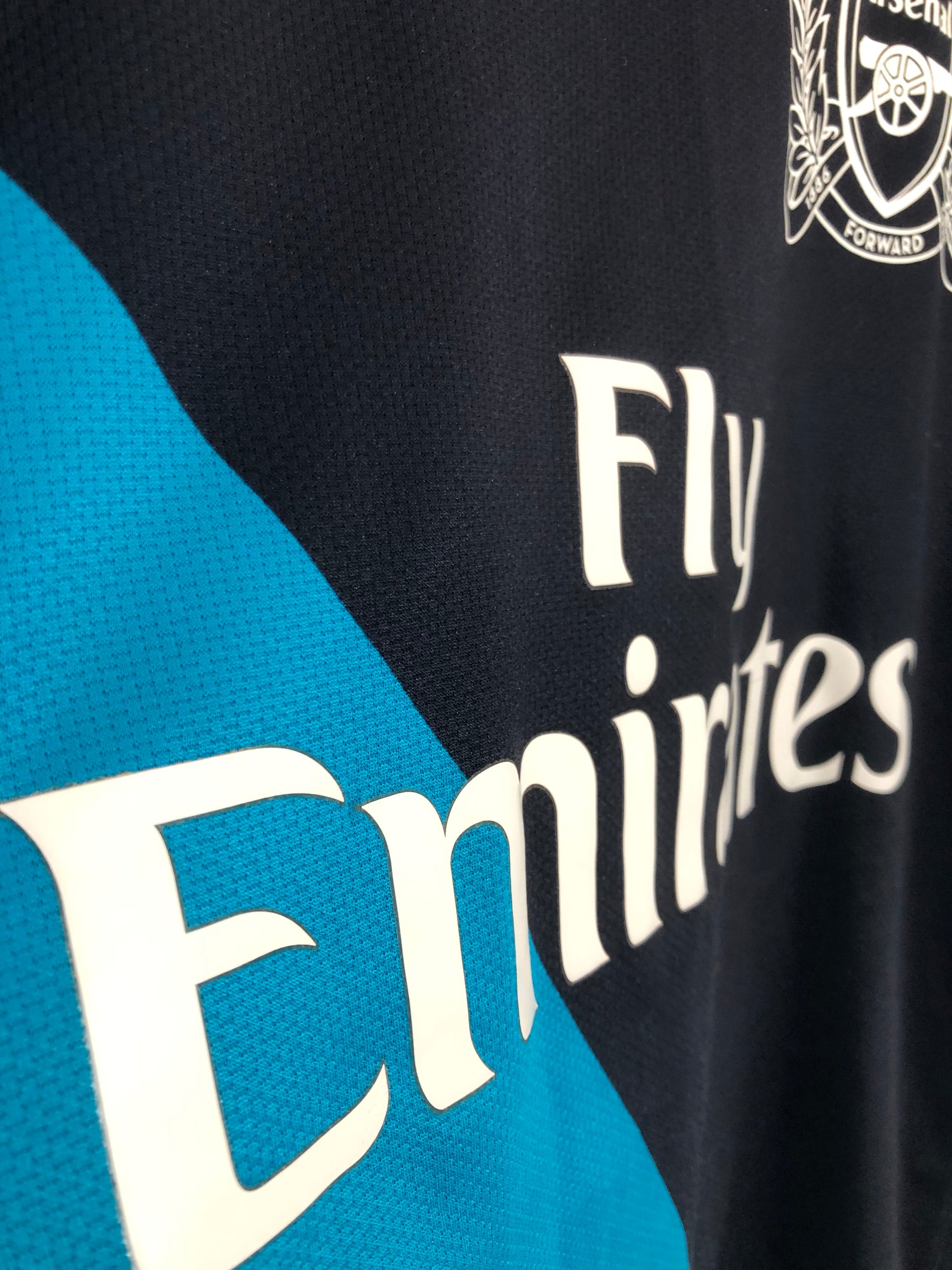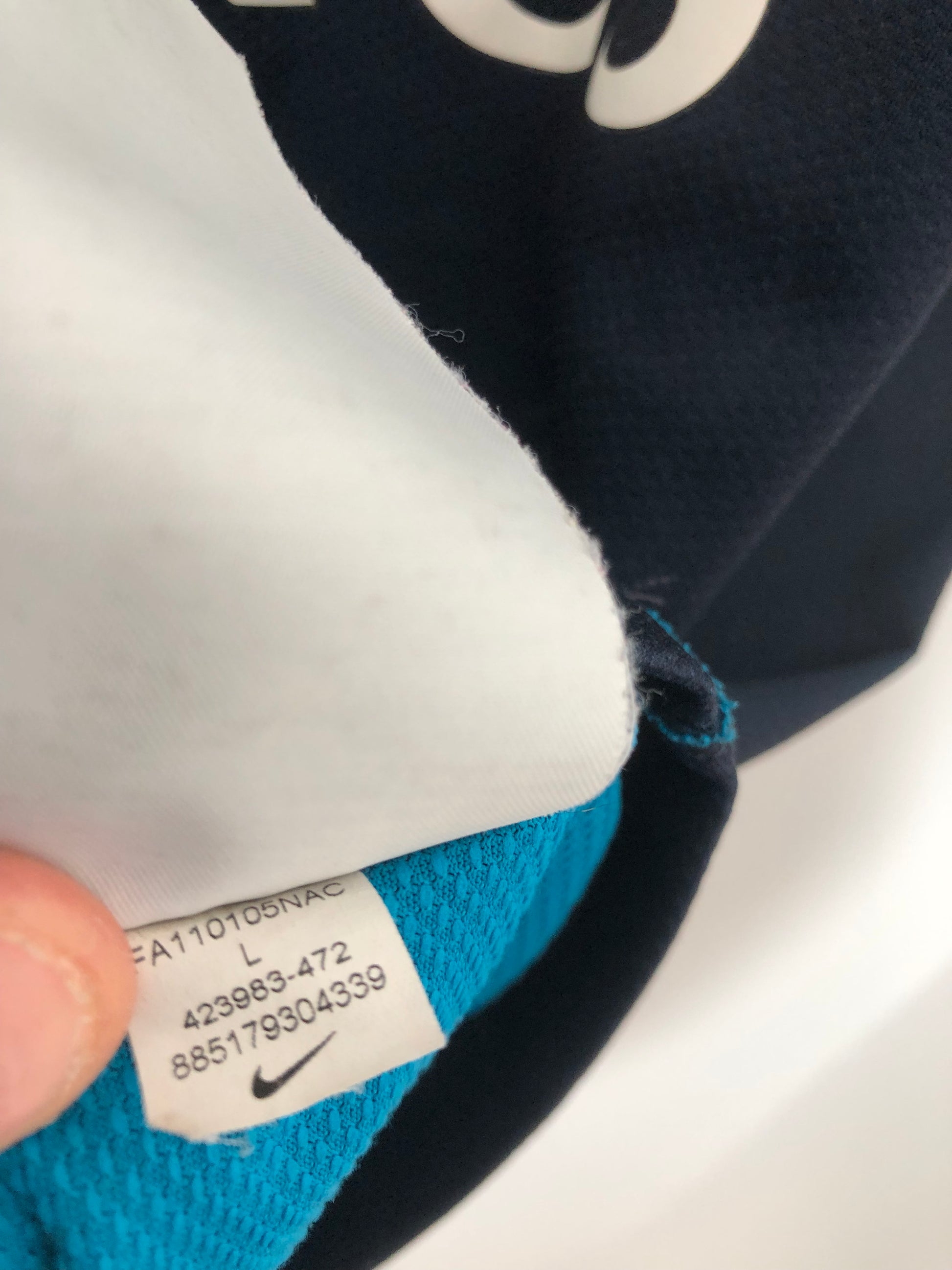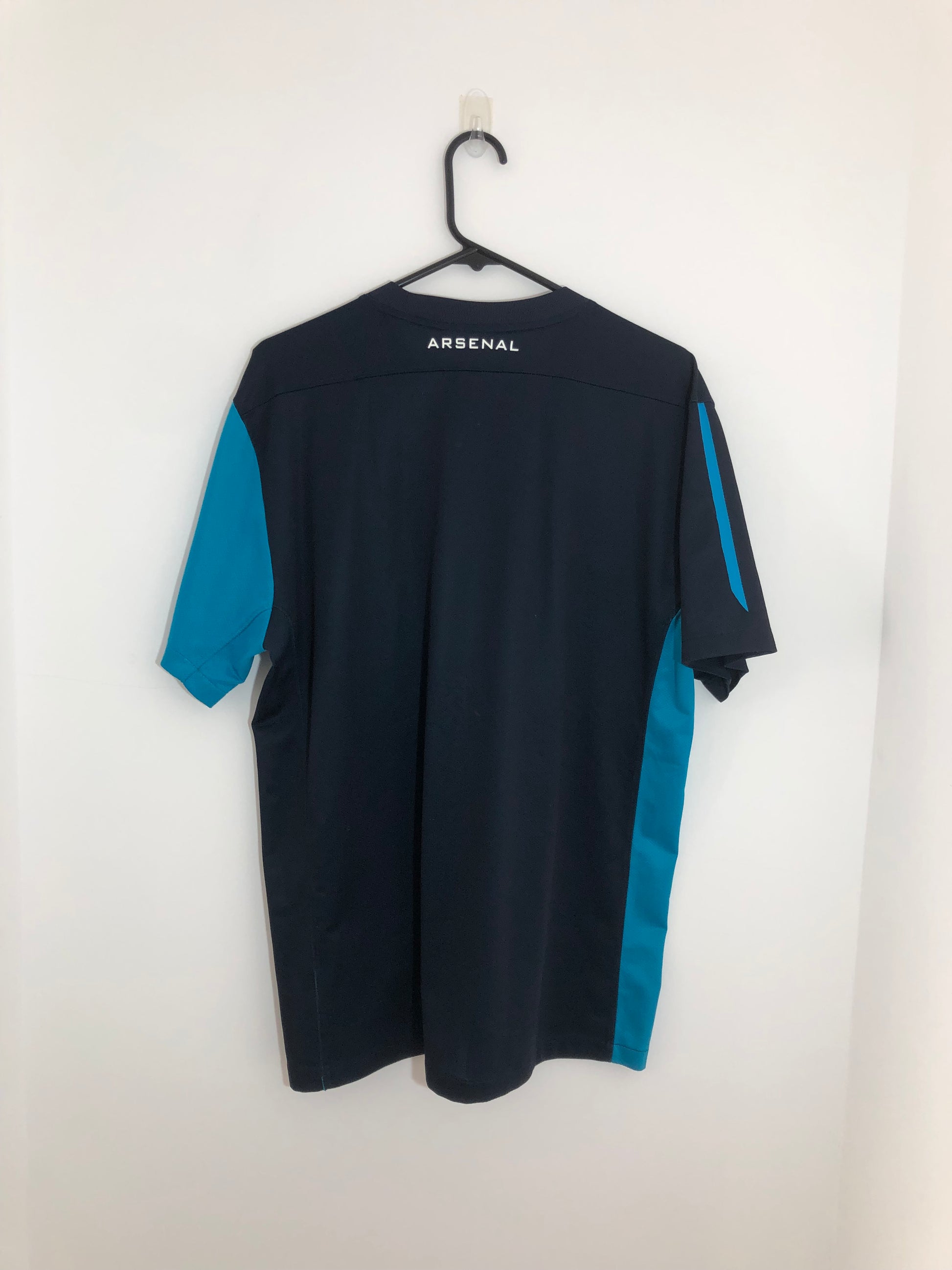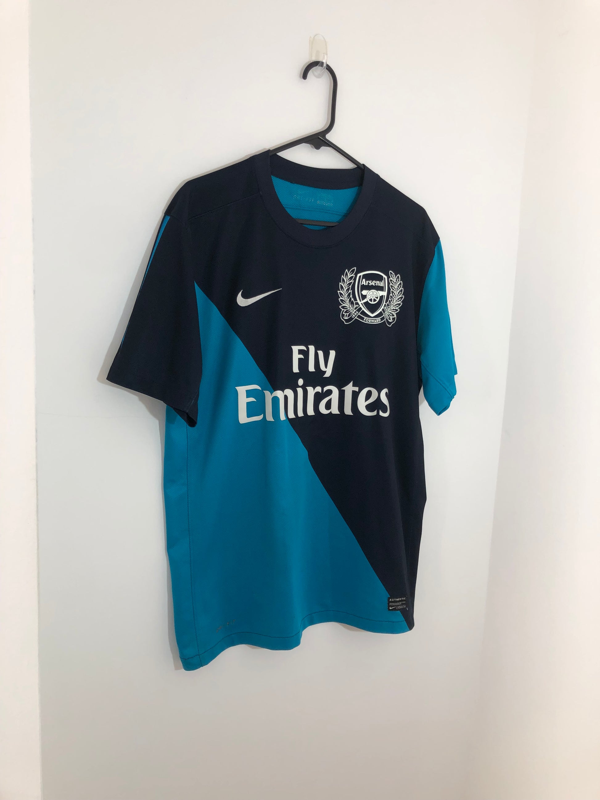 Show your support for Arsenal with this excellent condition 2011/12 away football shirt. The shirt features short sleeves and a loose fit, making it suitable for adults in a size large. The shirt is made by Nike and has a product code of 423983-472, ensuring that you get a genuine item. This shirt has collar to hem measurements of 30 inches and pit to pit measurements of 22 inches. This shirt is suitable for wearing casually or at the match, so why not show your love for Arsenal by getting this shirt today.