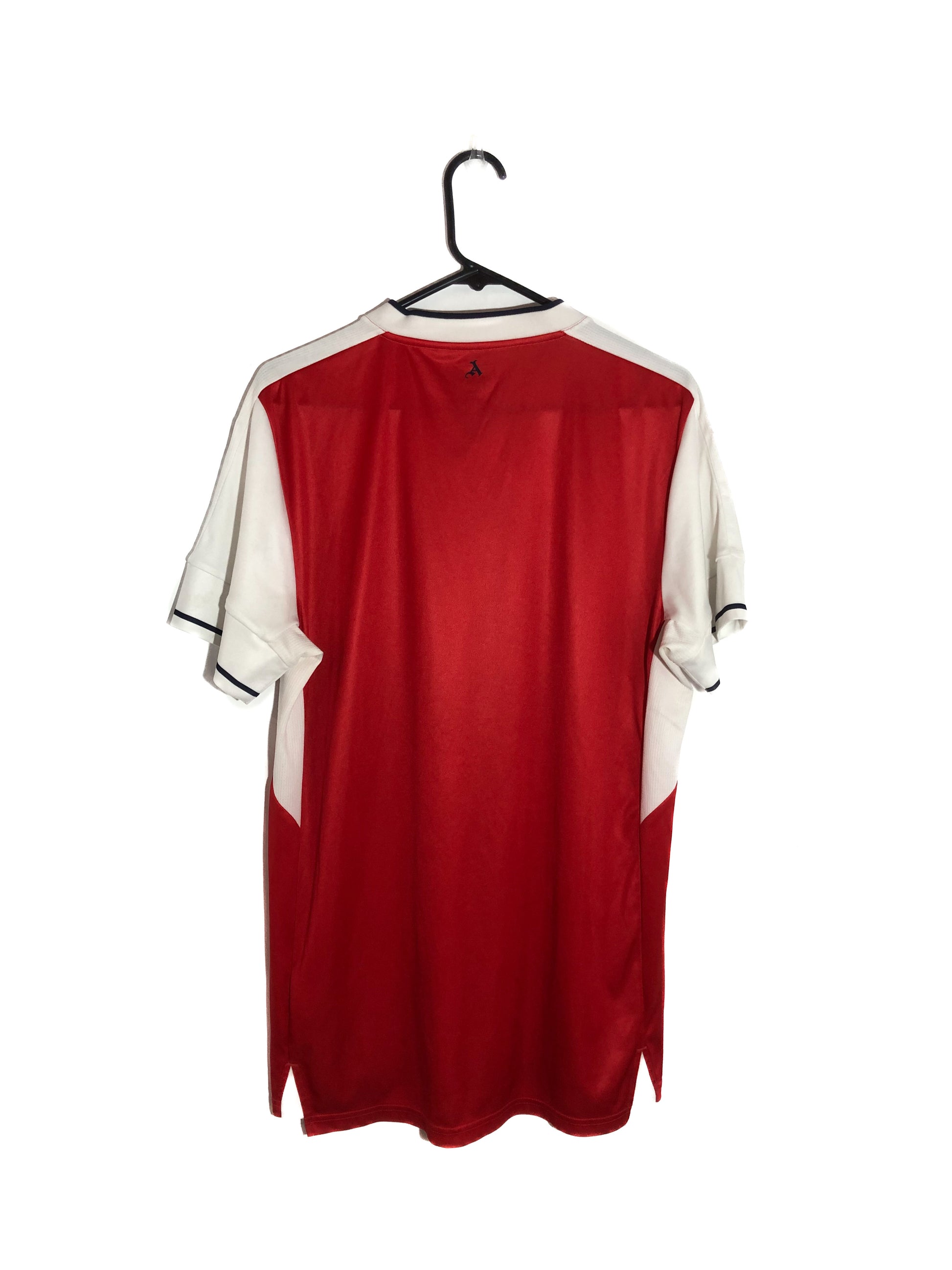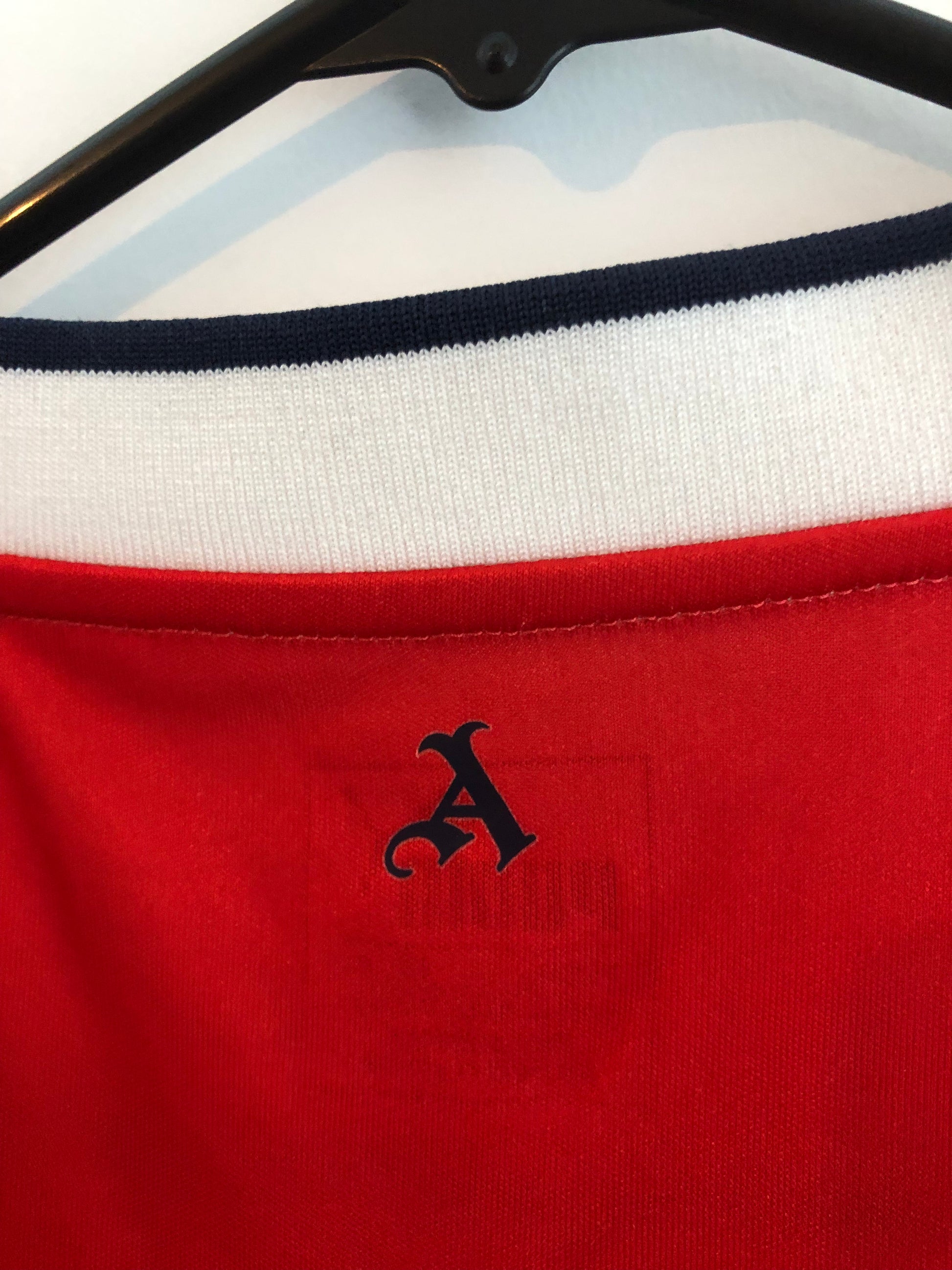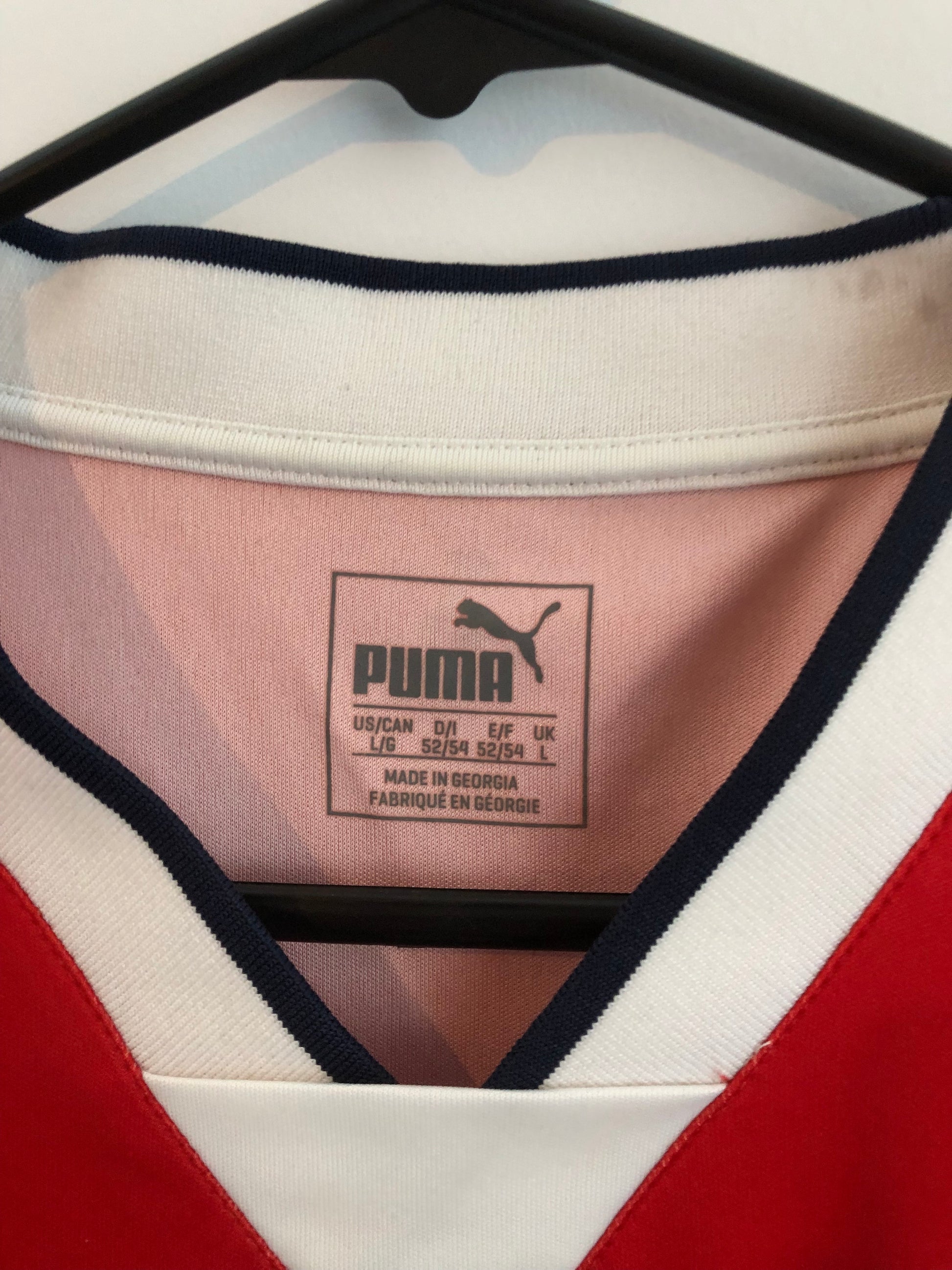 Show your support for Arsenal with this excellent condition 2016/17 home shirt. The shirt features short sleeves and a loose fit, making it suitable for adults in a size large. The shirt is made by Puma and has a product code of 749712, ensuring that you get a genuine item. This shirt has collar to hem measurements of 30 inches and pit to pit measurements of 22 inches. This shirt is suitable for wearing casually or at the match, so why not show your love for Arsenal by getting this shirt today.