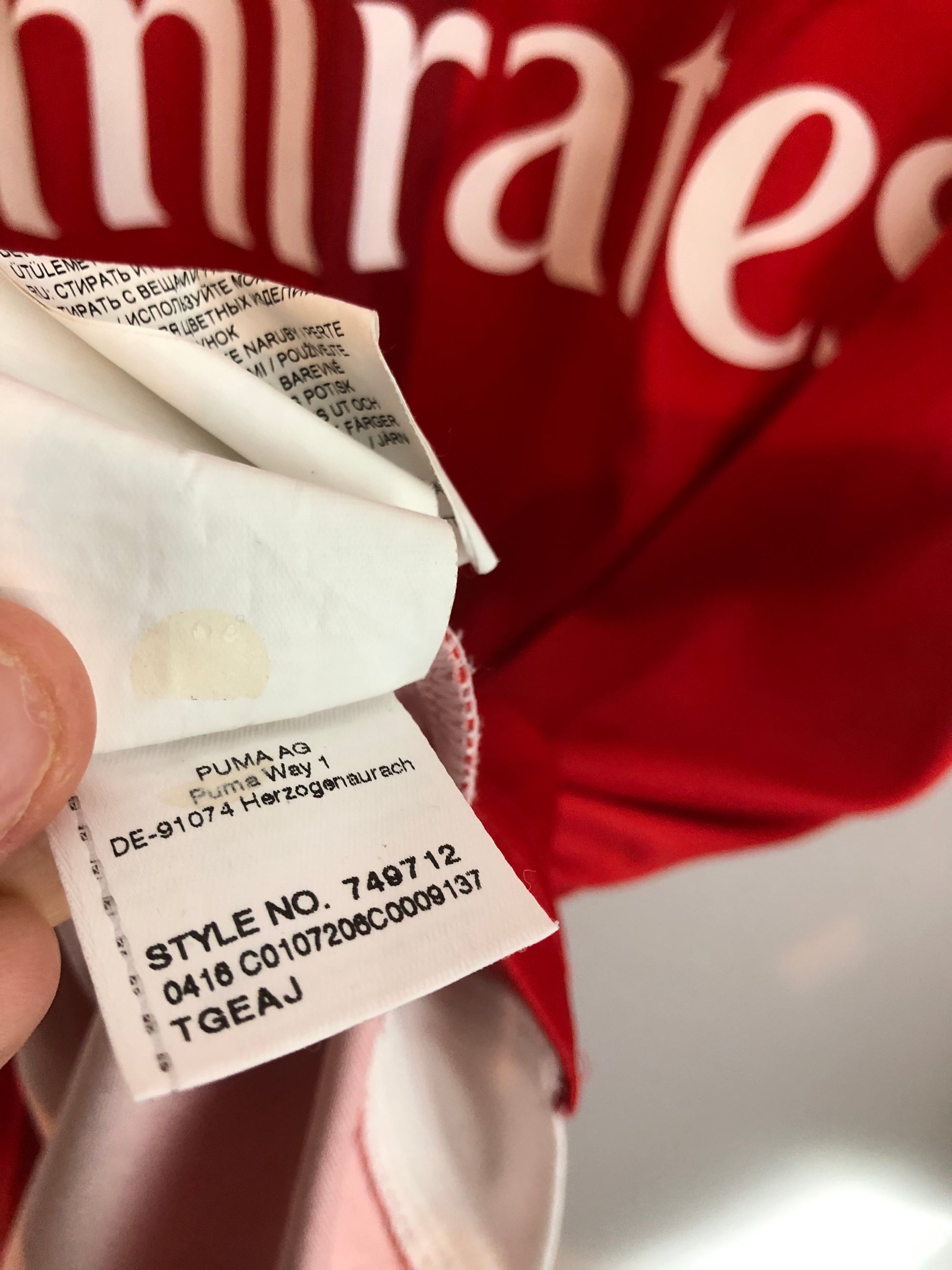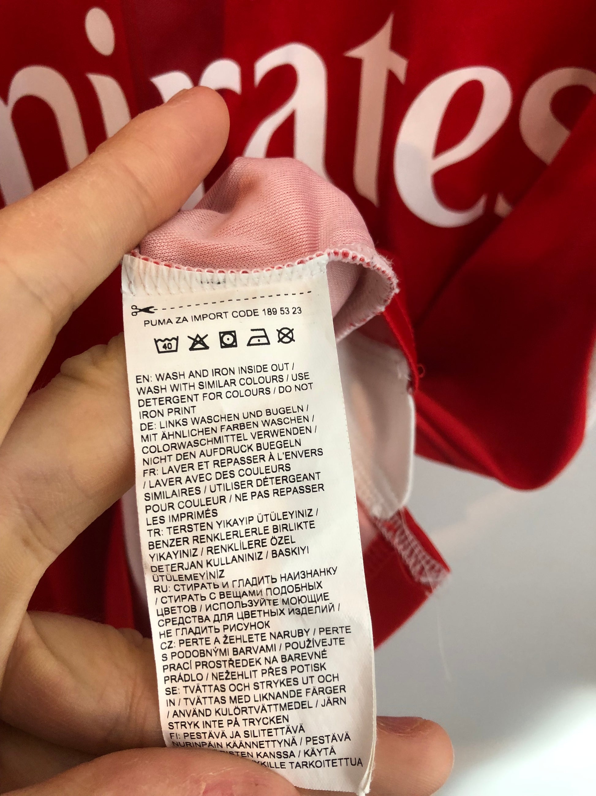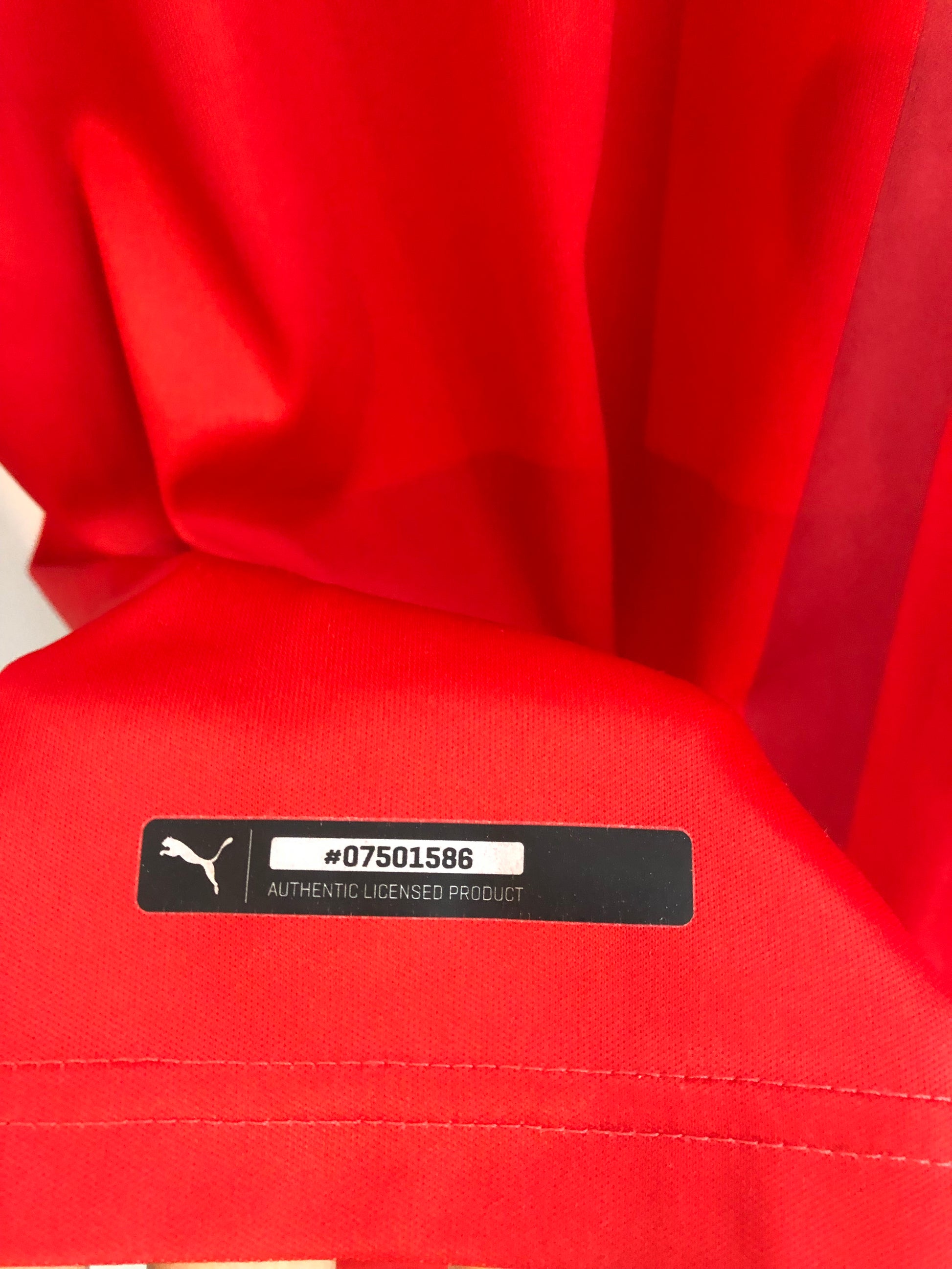 Show your support for Arsenal with this excellent condition 2016/17 home shirt. The shirt features short sleeves and a loose fit, making it suitable for adults in a size large. The shirt is made by Puma and has a product code of 749712, ensuring that you get a genuine item. This shirt has collar to hem measurements of 30 inches and pit to pit measurements of 22 inches. This shirt is suitable for wearing casually or at the match, so why not show your love for Arsenal by getting this shirt today.