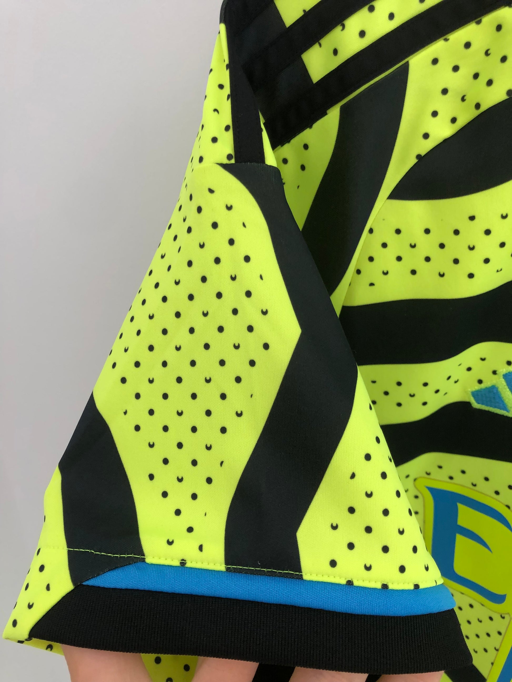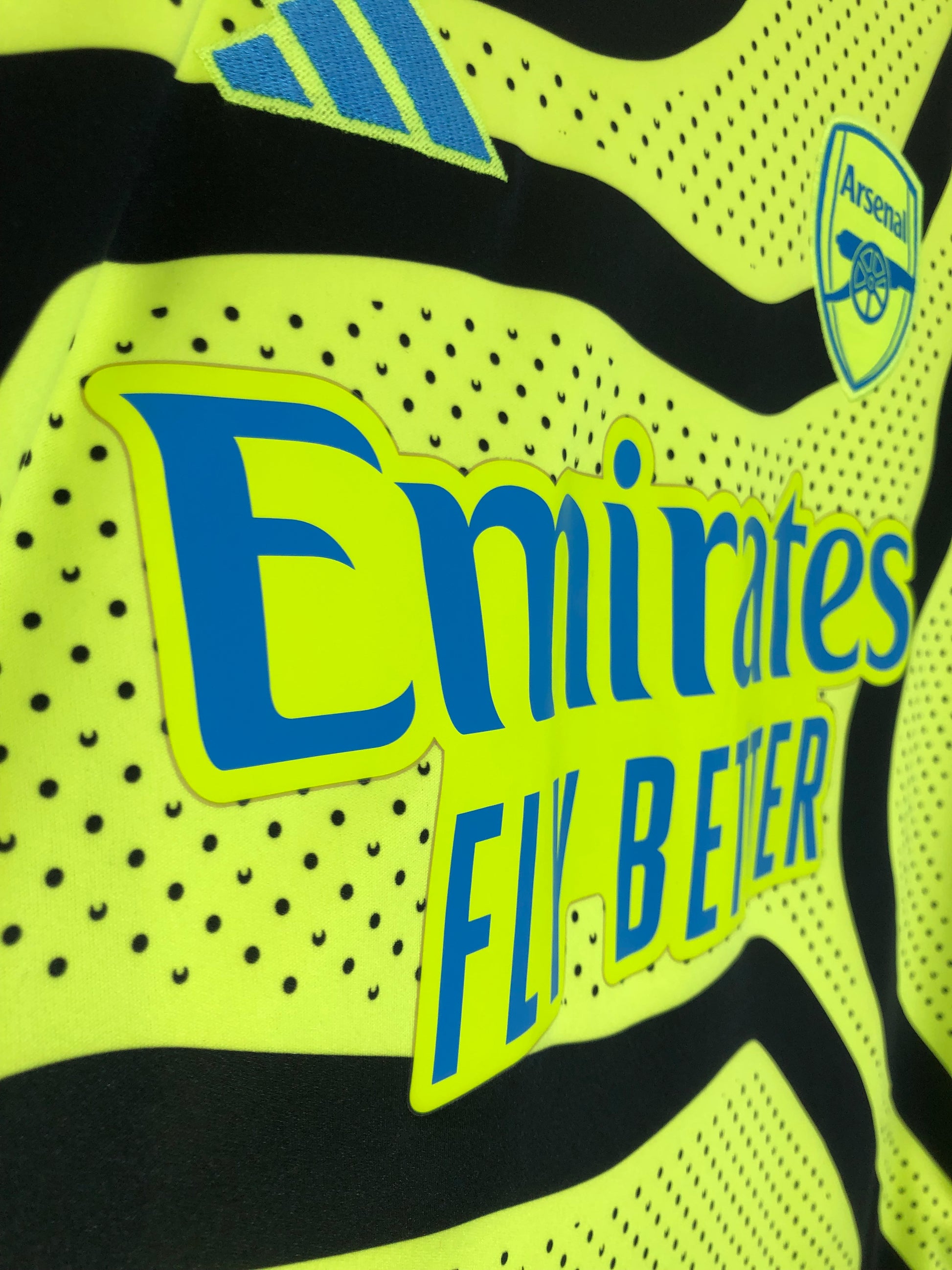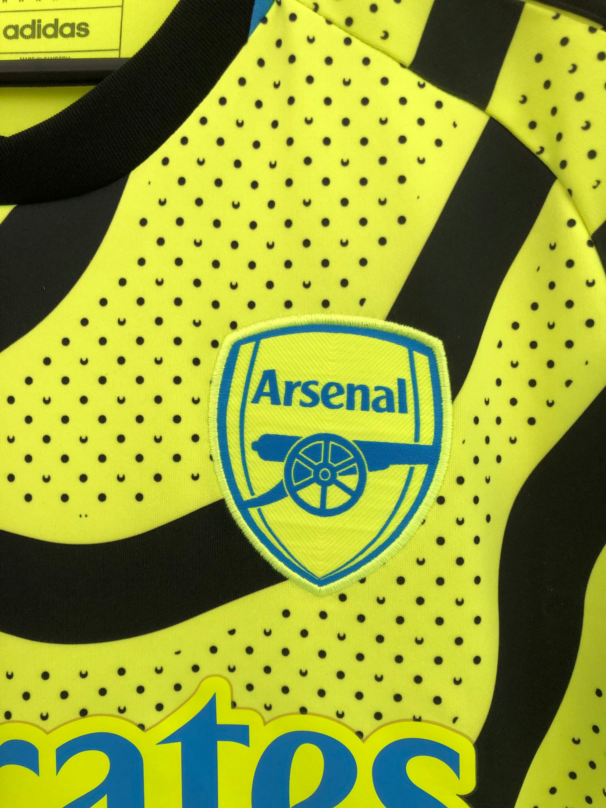 Show your support for Arsenal with this excellent condition 2023/24 away football shirt. The fluro yellow shirt features short sleeves and a loose fit, making it suitable for adults in a size medium. The shirt is made by Adidas and has a product code of HR6927, ensuring that you get a genuine item. This shirt has collar to hem measurements of 29 inches and pit to pit measurements of 20 inches. This shirt is suitable for wearing casually or at the match, so why not show your love for Arsenal by getting this shirt today.