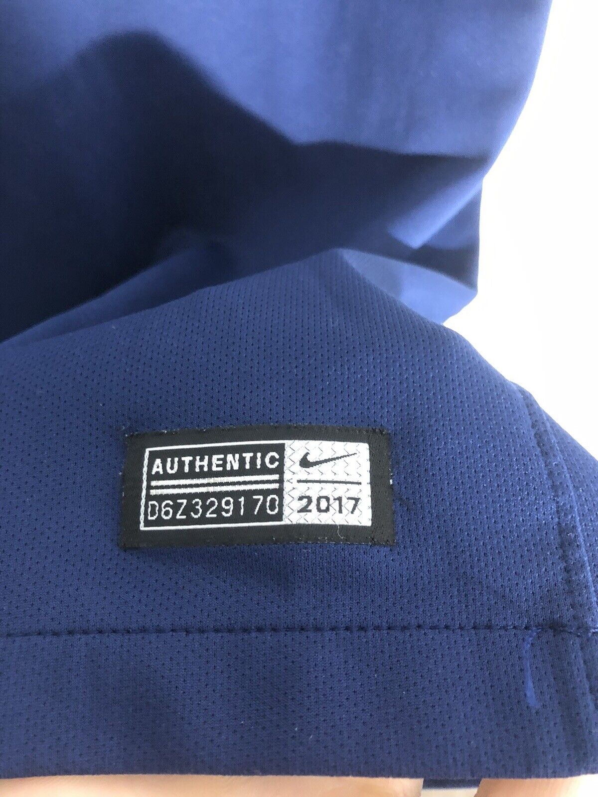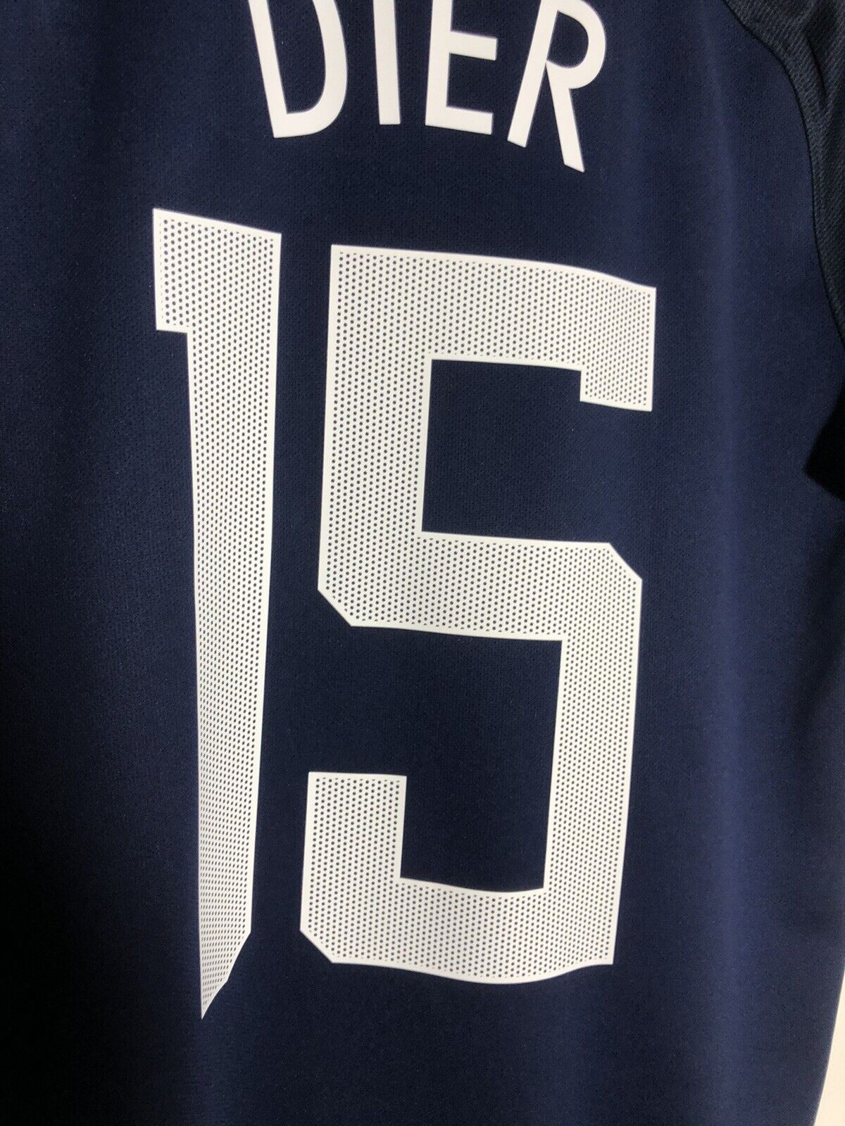 Show your support for Tottenham Hotspur with this excellent condition Dier #15 euro 2017/18 away football shirt. The shirt features short sleeves and a loose fit, making it suitable for adults in a size small. The shirt is made by Nike and has a product code of 896316-430, ensuring that you get a genuine item. This shirt has collar to hem measurements of 27 inches and pit to pit measurements of 19 inches. The shirt has an official Dier #15 euro nameset. This shirt is suitable for wearing casually or at the match, so why not show your love for Tottenham Hotspur by getting this shirt today.