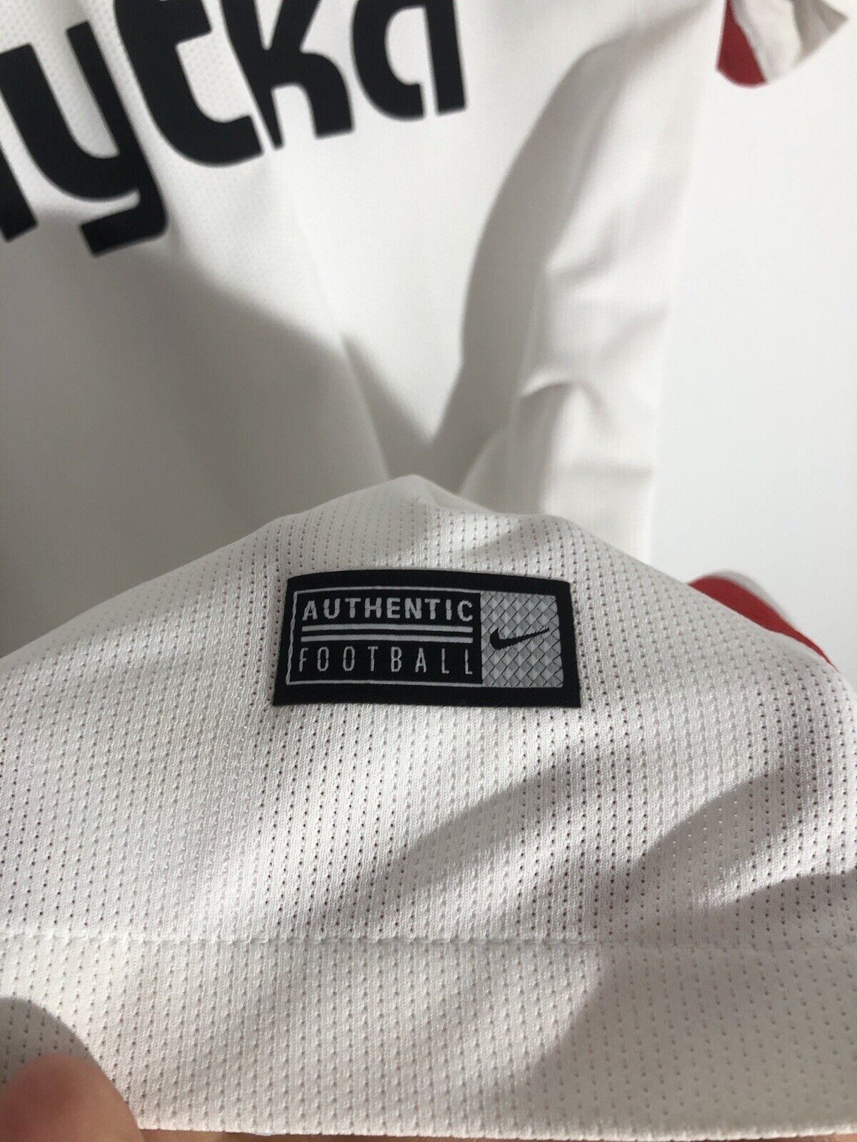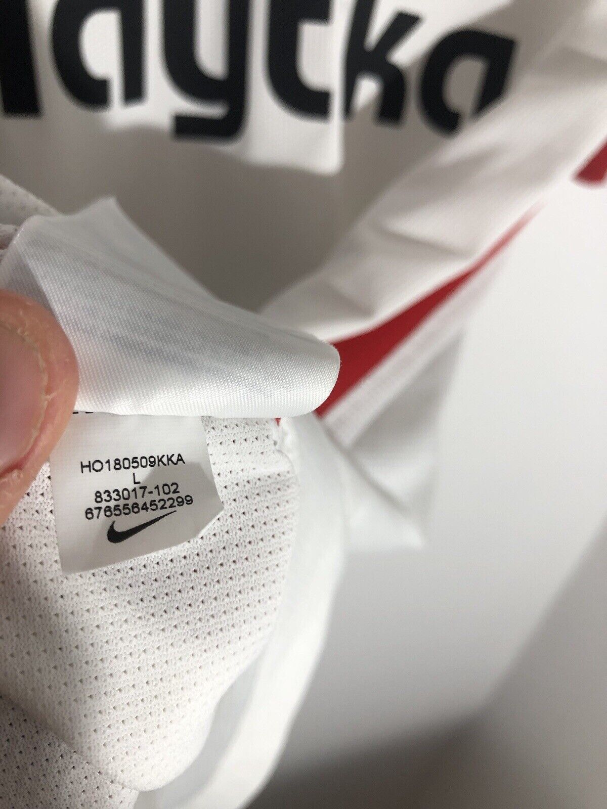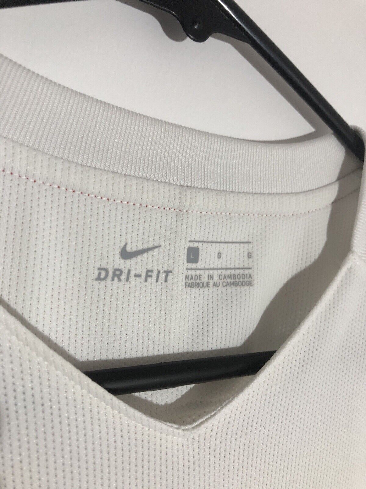 Show your support for Sevilla with this excellent condition Ever Banega #10 2019/20 home football shirt. The stylish white shirt features short sleeves and a loose fit, making it suitable for adults in a size large. The shirt is made by Nike and has a product code of 833017-102, ensuring that you get a genuine item. This shirt has collar to hem measurements of 30 inches and pit to pit measurements of 22 inches. The shirt has a official LFP Ever Banega #10 nameset. This shirt is suitable for wearing casually or at the match, so why not show your love for Barcelona by getting this shirt today.