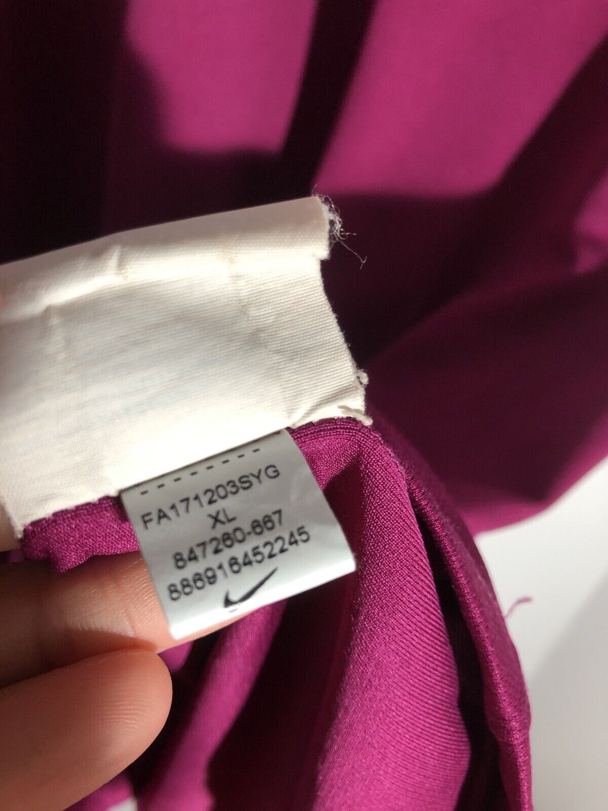Show your support for Manchester City with this excellent condition Nike Fernandinho #25 2017/18 Xl away football shirt. The stylish deep purple shirt features short sleeves and a loose fit, making it suitable for adults in a size Xl. The shirt is made by Nike and has a product code of 847260-667, ensuring that you get a genuine item. This shirt has collar to hem measurements of 30 inches and pit to pit measurements of 23 inches. The shirt has an official Fernandinho #25 nameset. This shirt is suitable for wearing casually or at the match, so why not show your love for Manchester City by getting this shirt today.