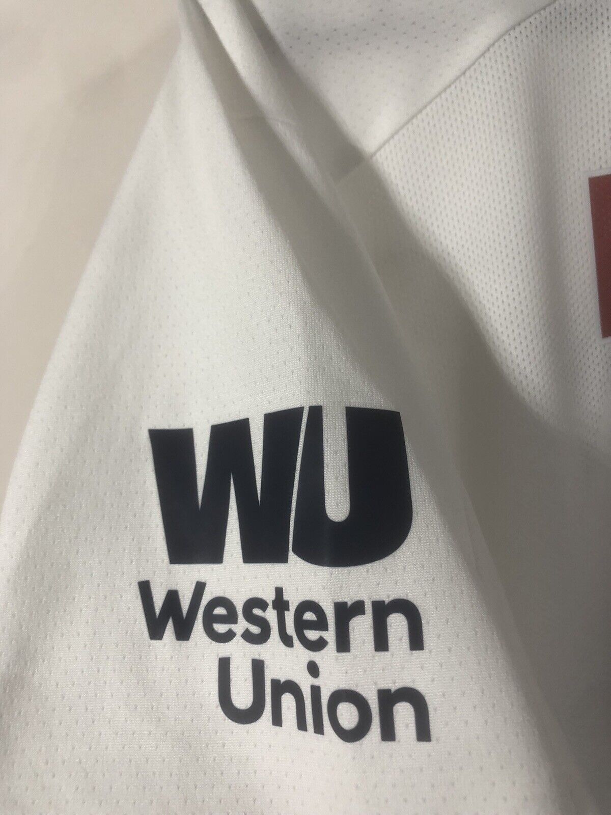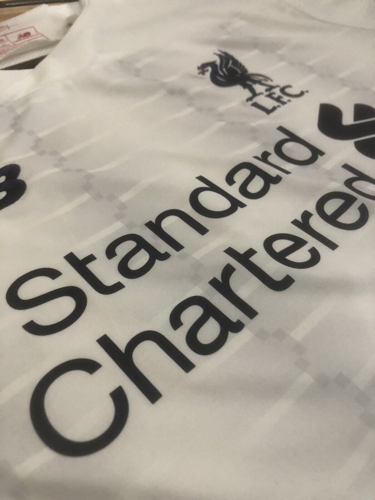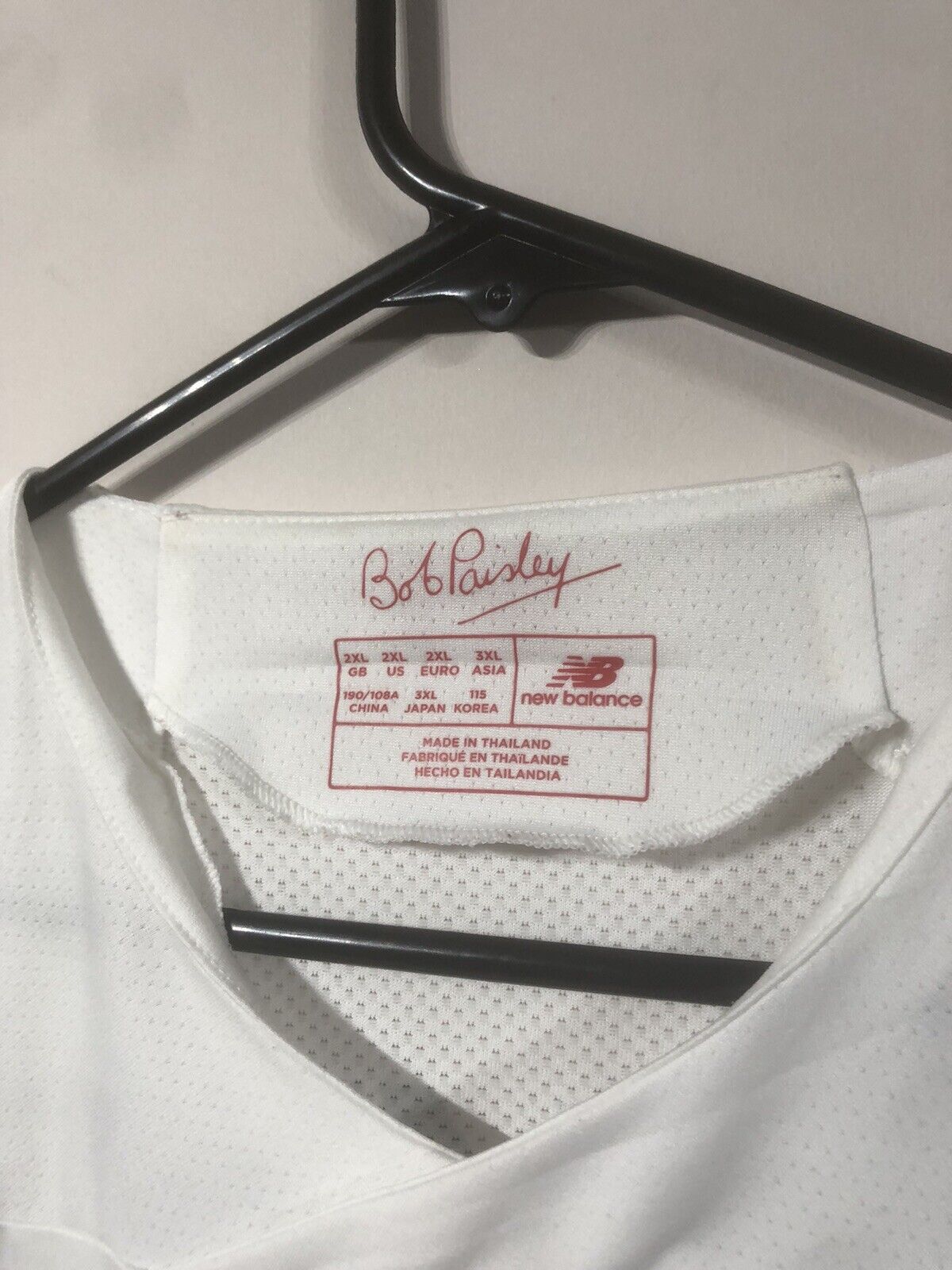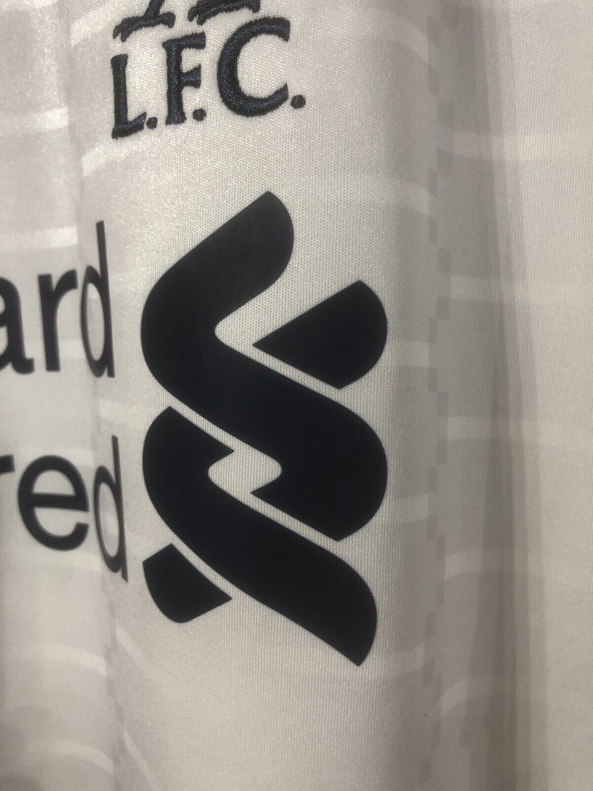 Show your support for Liverpool with this excellent condition Firmino #9 2019/20 away football shirt. The stylish white shirt features short sleeves and a loose fit, making it suitable for adults in a size XXL. The shirt is made by New Balance and has a product code of MT930013, ensuring that you get a genuine item. This shirt has collar to hem measurements of 31 inches and pit to pit measurements of 25 inches. The shirt has a official Liverpool Firmino #9 nameset and an official Premier League patch. This shirt is suitable for wearing casually or at the match, so why not show your love for Liverpool by getting this shirt today.