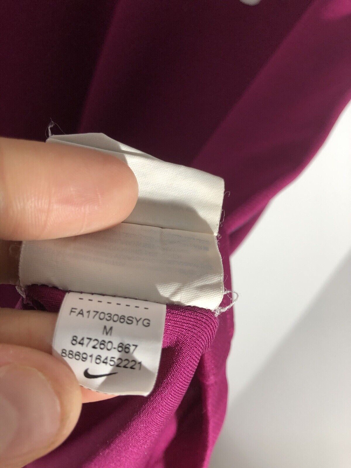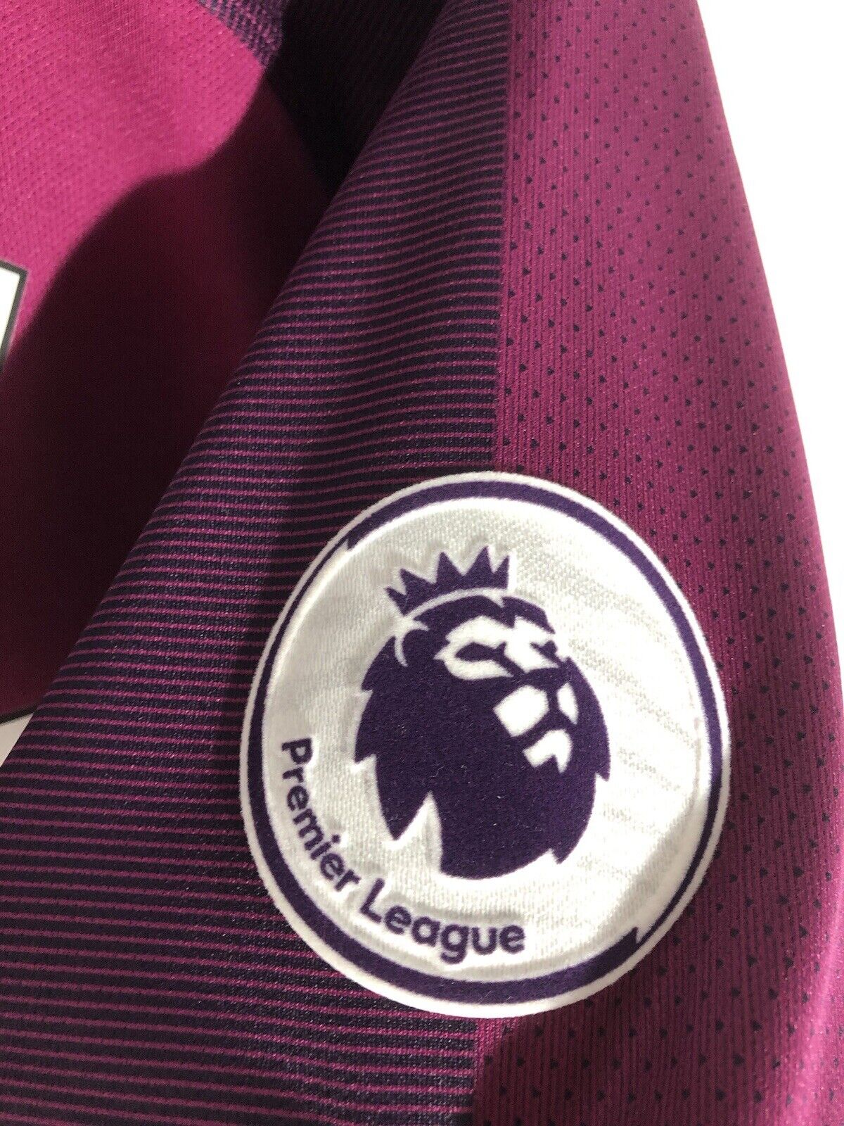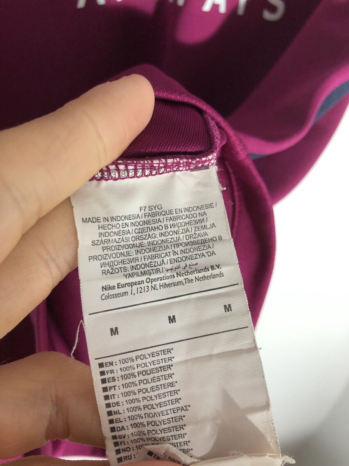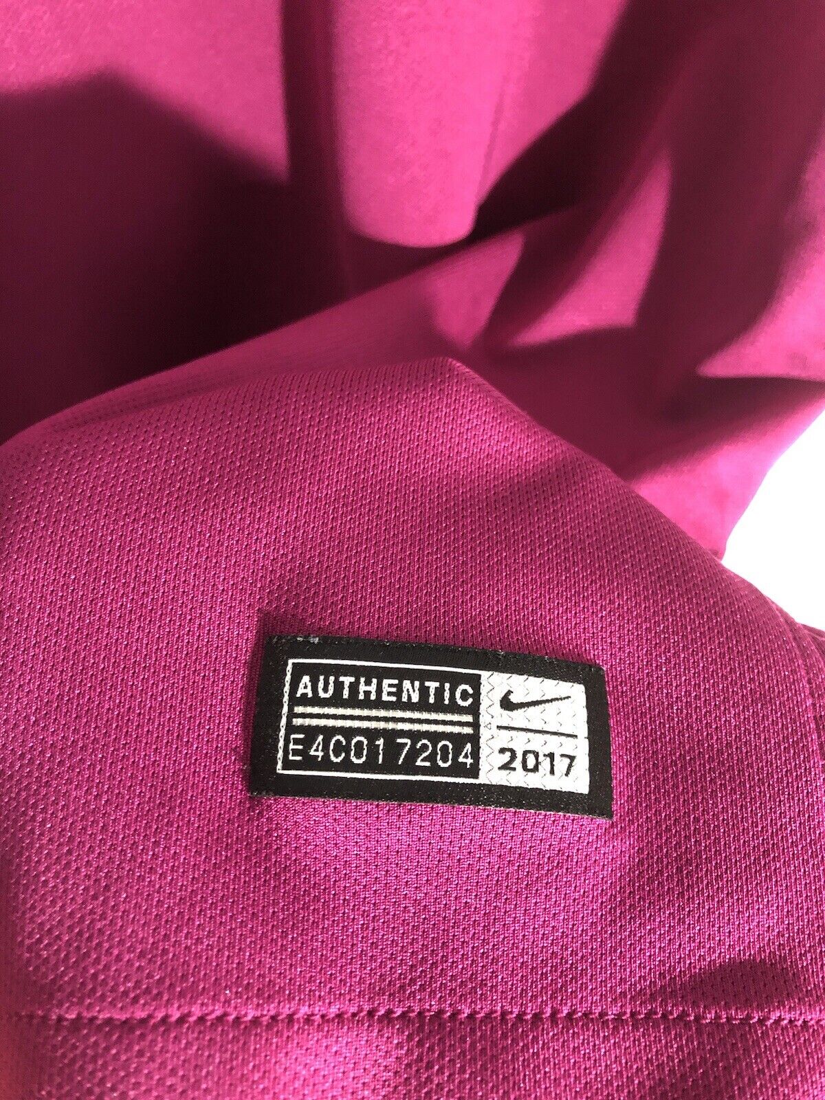 Show your support for Manchester City with this excellent condition Nike Foden #47 2017/18 medium away football shirt. The stylish deep purple shirt features short sleeves and a loose fit, making it suitable for adults in a size medium. The shirt is made by Nike and has a product code of 847260-667, ensuring that you get a genuine item. This shirt has collar to hem measurements of 28 inches and pit to pit measurements of 21 inches. The shirt has an official Foden #47 nameset. This shirt is suitable for wearing casually or at the match, so why not show your love for Manchester City by getting this shirt today.