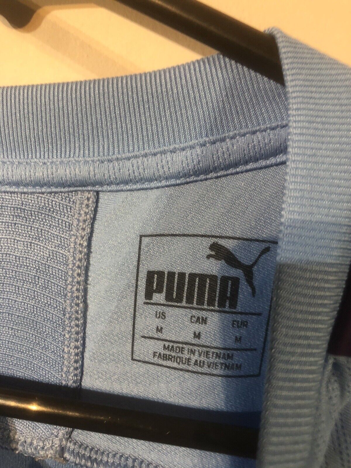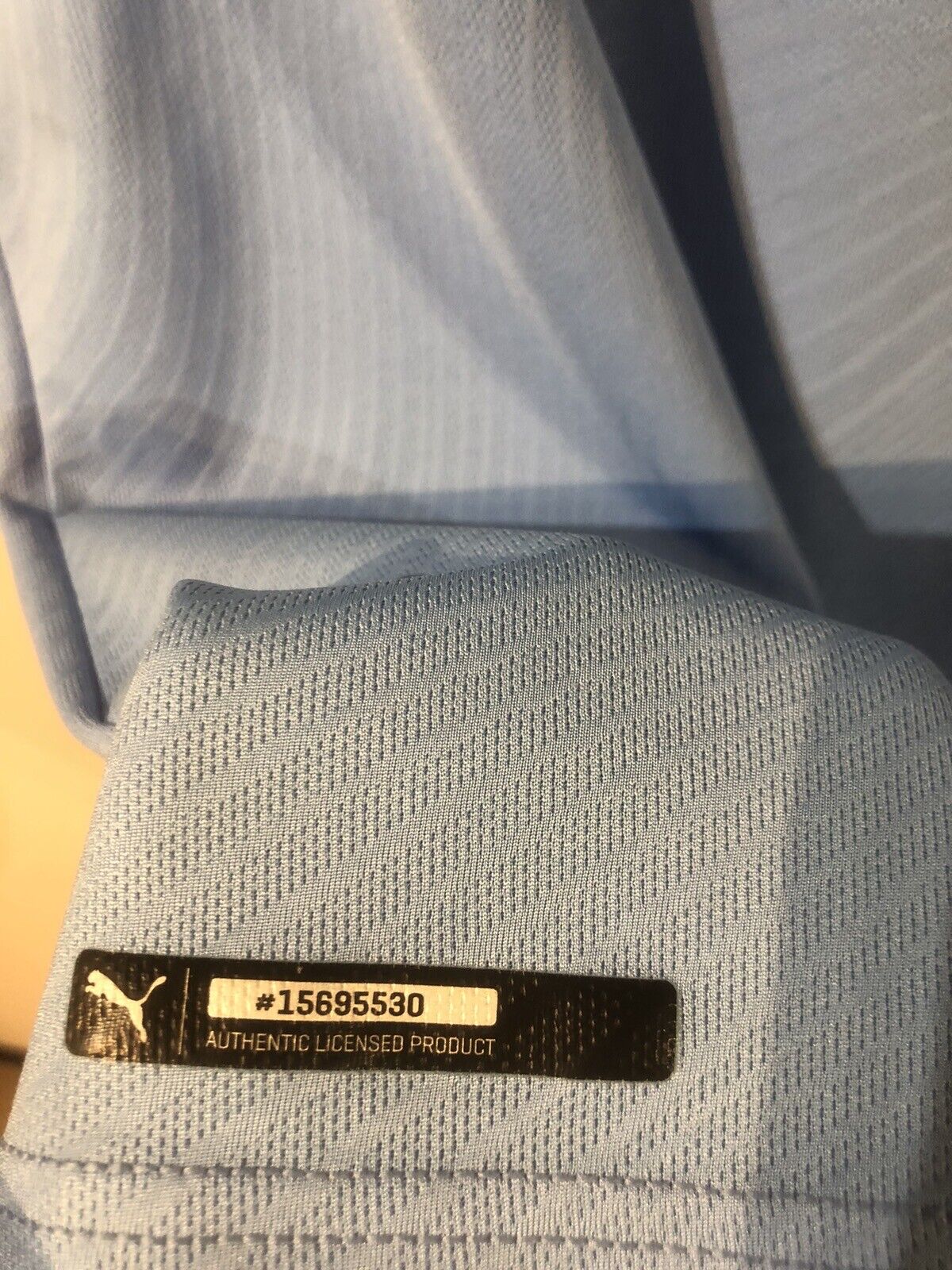 This Manchester City home shirt features Phil Foden's name and number, making it a must-have for any fan of the talented young player. The blue shirt has short sleeves and is suitable for adults in size medium. It is an officially licensed PUMA brand shirt and bears the Manchester City badge.