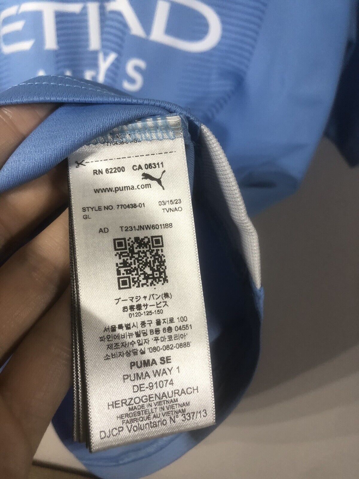 Show your support for Manchester City with this excellent condition Foden #47 2023/24 home football shirt. The shirt features short sleeves and a loose fit, making it suitable for adults in a size XL. The shirt is made by PUMA and has a product code of 770438-01, ensuring that you get a genuine item. This shirt has collar to hem measurements of 30 inches and pit to pit measurements of 23 inches. The shirt has an official Foden #47 euro nameset & official Champions League title holder & Foundation patch. This shirt is suitable for wearing casually or at the match, so why not show your love for Manchester City by getting this shirt today.