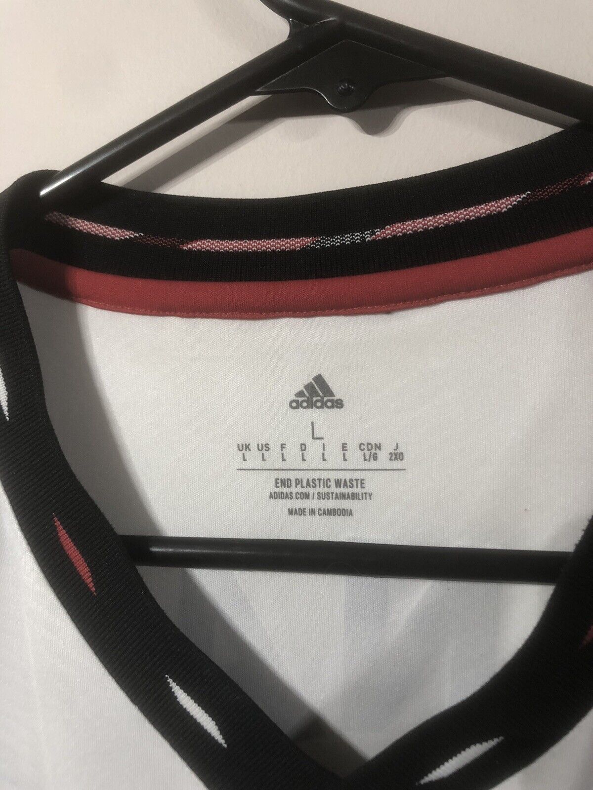 Get ready to score big with this stunning Manchester United away kit shirt! Made by adidas, this large-sized shirt features short sleeves and a bright white colour scheme, making it the perfect choice for any football fan. The shirt is in excellent condition, so you can be sure you're getting a top-quality item.