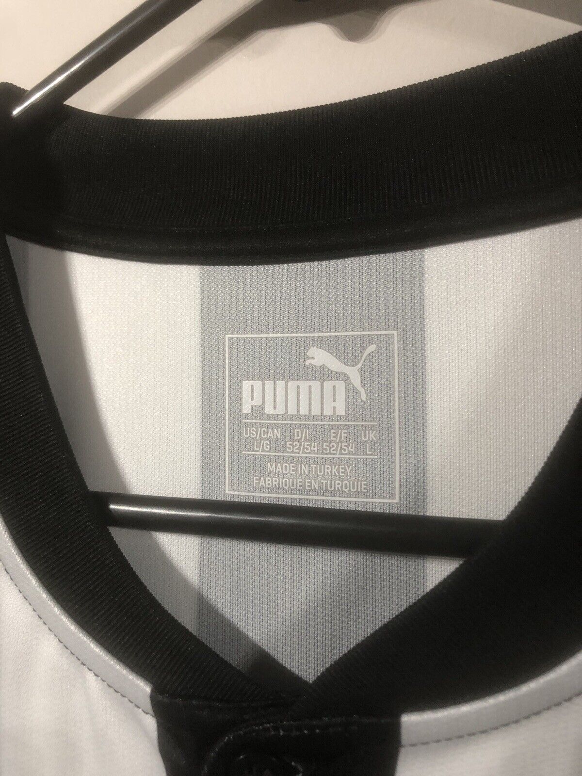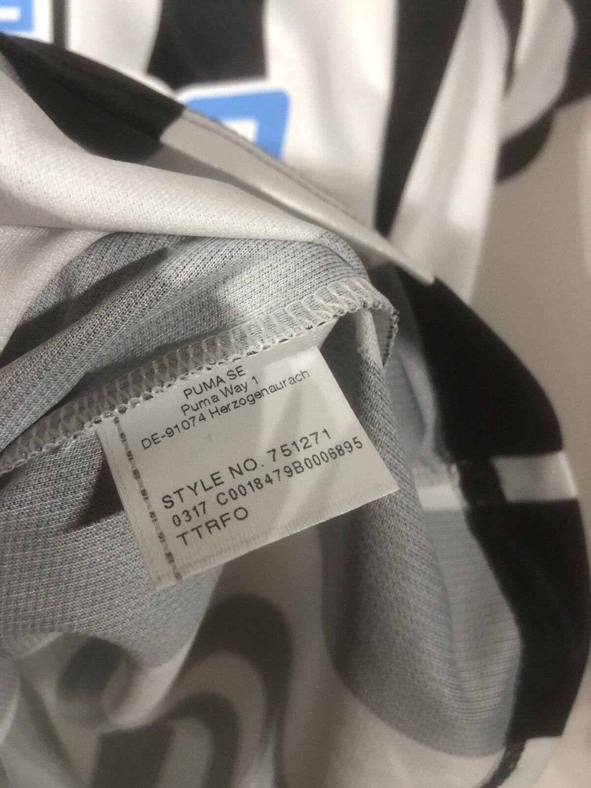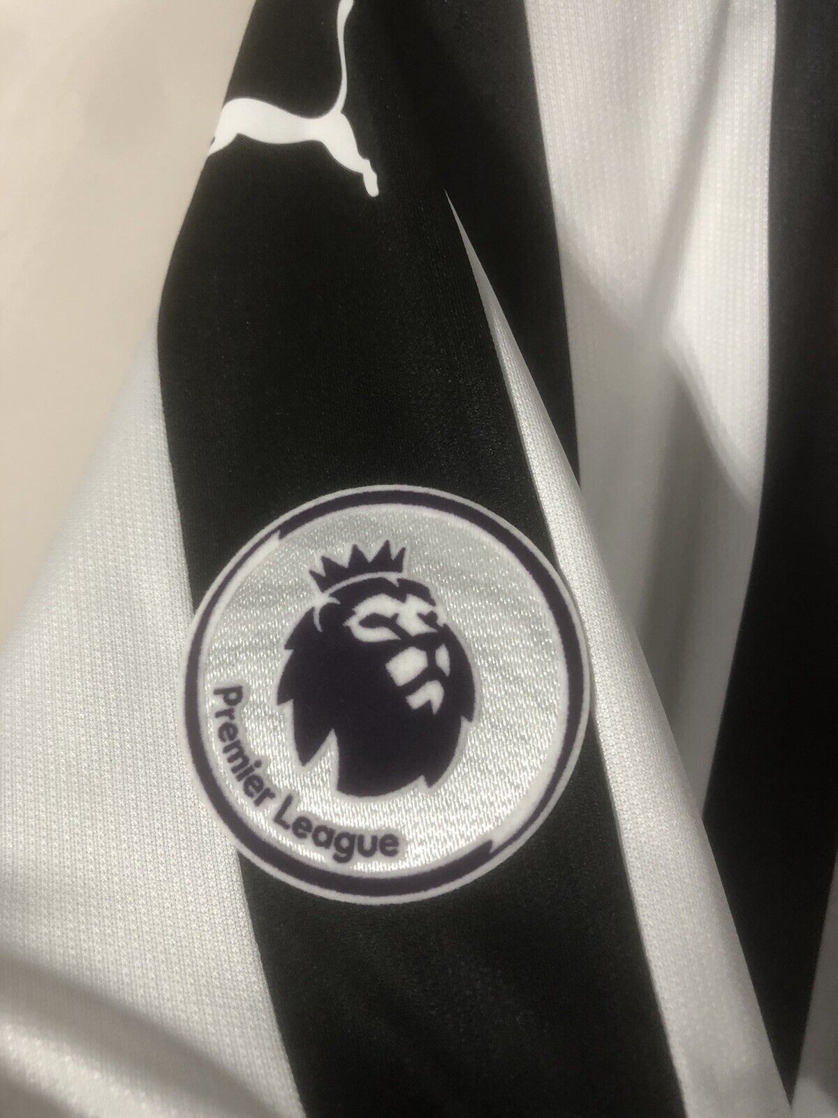 Show your support for Newcastle with this excellent condition 125 Gayle #9 2017/18 home football shirt. The shirt features short sleeves and a loose fit, making it suitable for adults in a size large. The shirt is made by PUMA, and has a product code of 751271 ensuring you receive a genuine item. This shirt has collar to hem measurements of 29 inches and pit to pit measurements of 21 inches. The shirt has an official Gayle #9 nameset & x2 Premier League patches. This shirt is suitable for wearing casually or at the match, so why not show your love for Newcastle by getting this shirt today.