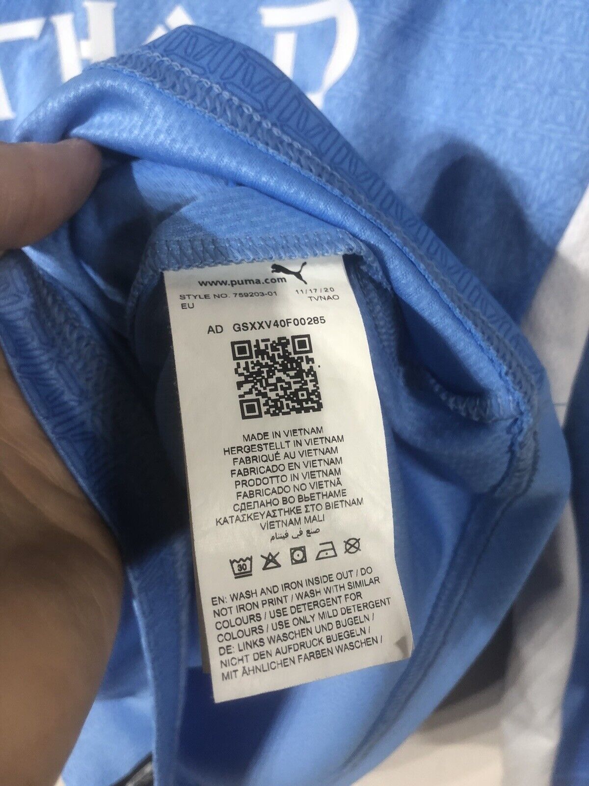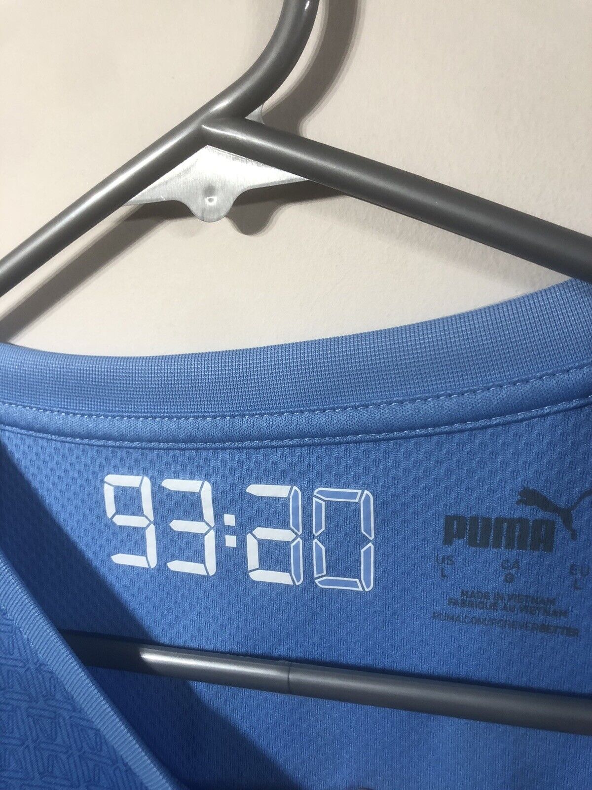 Show your love for Manchester City and Jack Grealish with this amazing home shirt. This PUMA shirt features Grealish's iconic #10 nameset and long sleeves, making it perfect for football enthusiasts and collectors alike. The blue shirt is suitable for adults and is a size Large.
