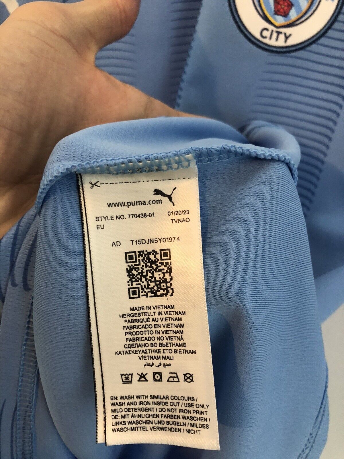 Show your support for Manchester City with this excellent condition Gvardiol #24 2023/24 home football shirt. The shirt features short sleeves and a loose fit, making it suitable for adults in a size medium. The shirt is made by PUMA and has a product code of 770438-01, ensuring that you get a genuine item. This shirt has collar to hem measurements of 28 inches and pit to pit measurements of 20 inches. The shirt has an official Gvardiol #24 nameset and Champions League patches. This shirt is suitable for wearing casually or at the match, so why not show your love for Manchester City by getting this shirt today.