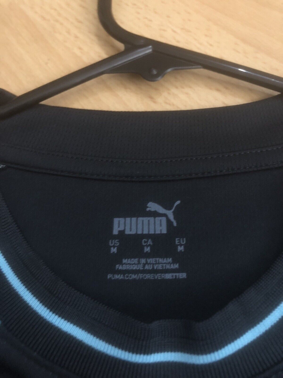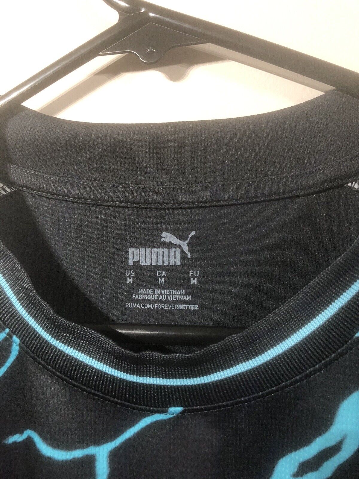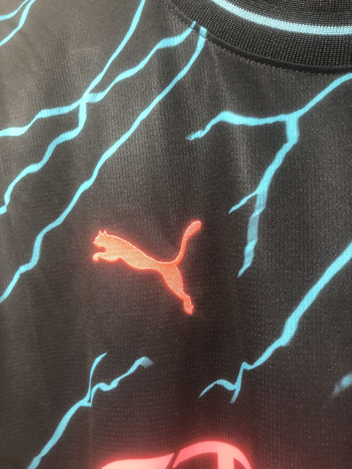 Show your support for Manchester City with this excellent condition Haaland #9 2023/24 3rd football shirt. The shirt features short sleeves and a loose fit, making it suitable for adults in a size medium. The shirt is made by PUMA and has a product code of 770461-03, ensuring that you get a genuine item. This shirt has collar to hem measurements of 28 inches and pit to pit measurements of 21 inches. The shirt has an official Haaland #9 nameset. This shirt is suitable for wearing casually or at the match, so why not show your love for Manchester City by getting this shirt today.