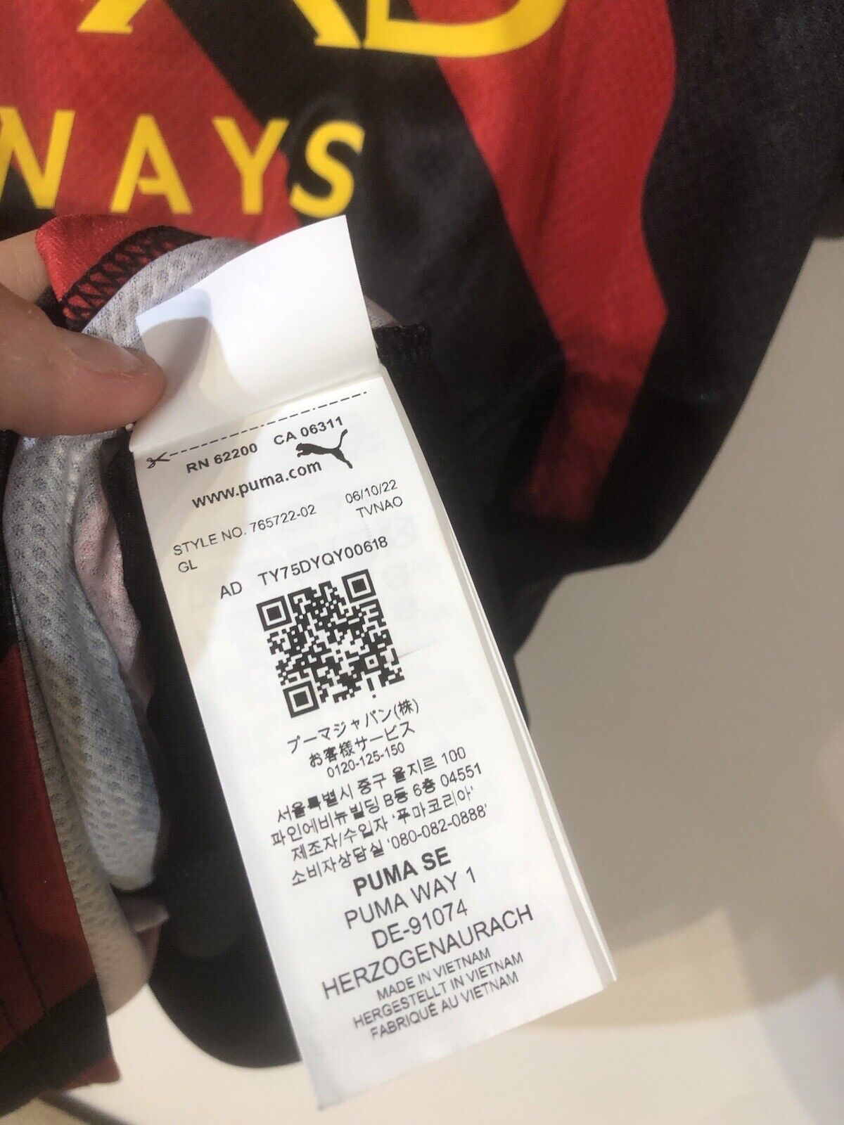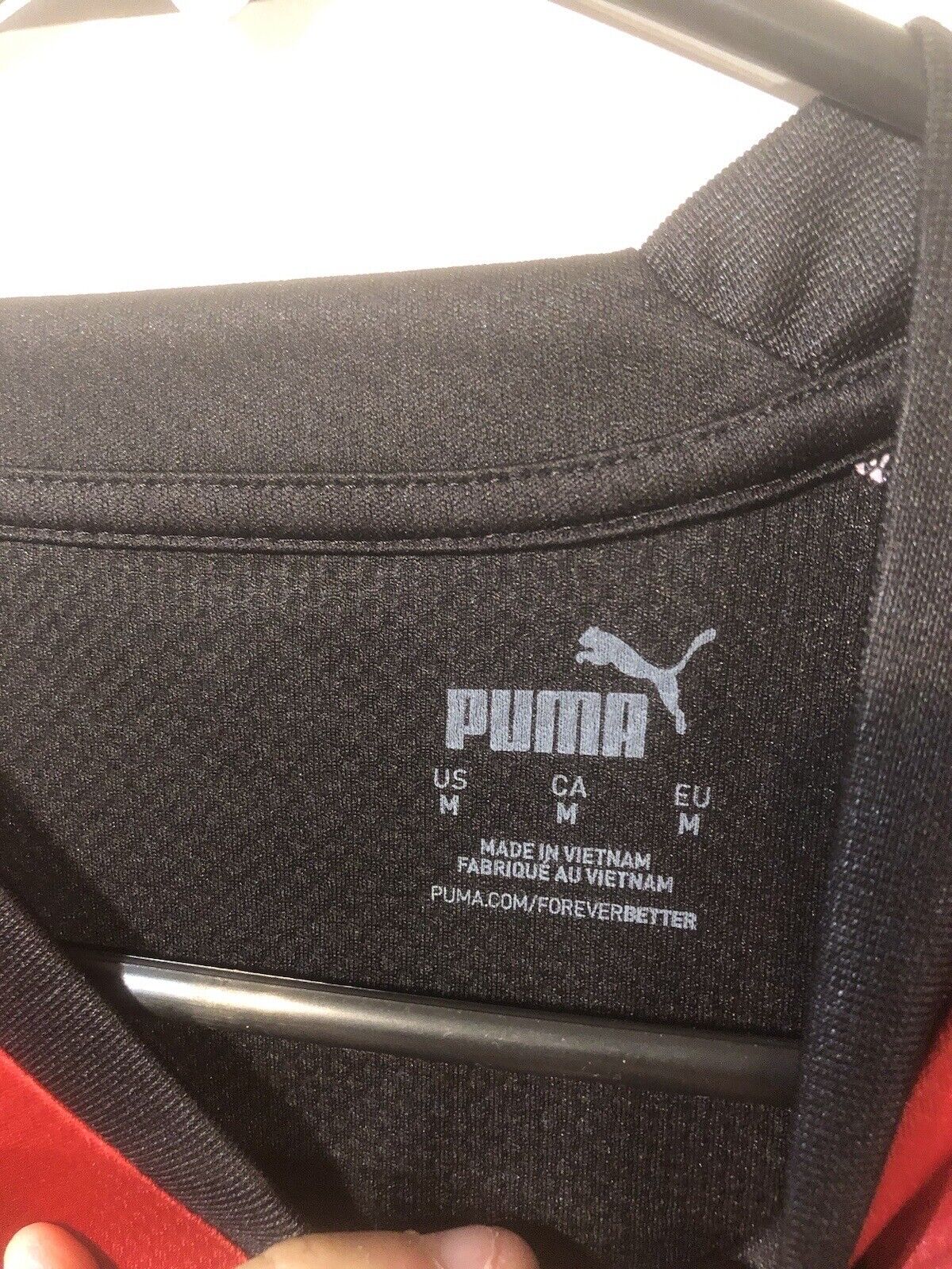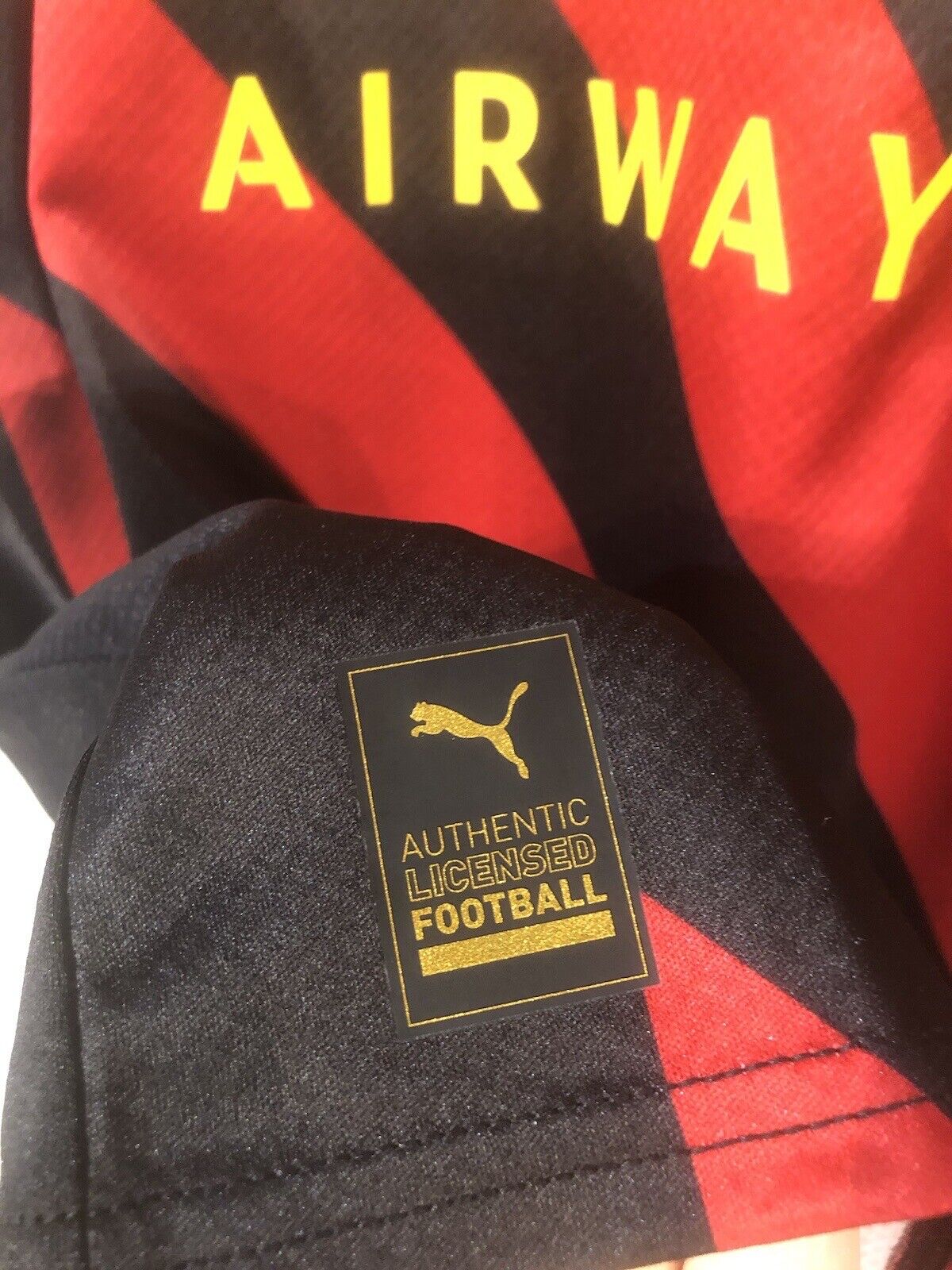 This is a fantastic Haaland #9 Manchester City 2022/23 Medium Away Football Shirt with a stunning design that is perfect for any football fan. The shirt has short sleeves and comes with a Haaland #9 Nameset, making it a great addition to your collection. The shirt is suitable for adults and is made by PUMA. It is an authentic football shirt from the English Club Manchester City. The kit type is Away, and the main color is red and black.