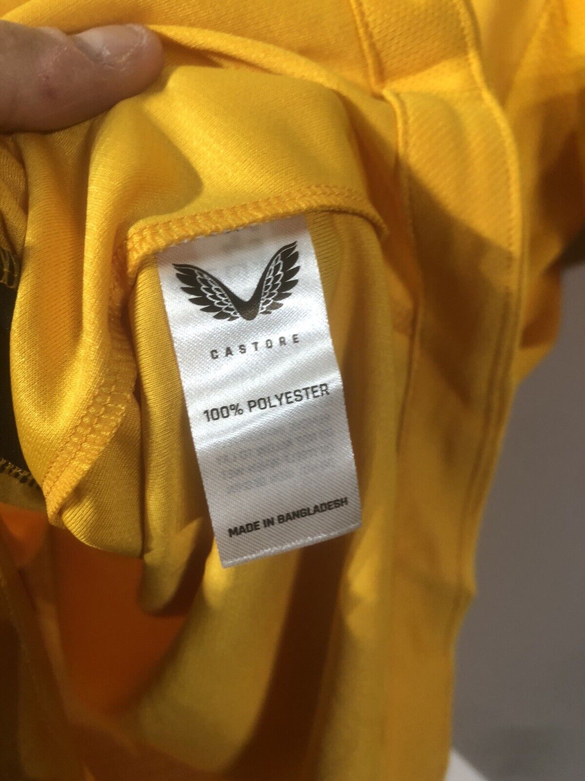 This shirt has short sleeves and is coloured in gold. It is a genuine item of sports memorabilia originating from Cambodia. The shirt is not match-worn and is in pristine condition. Get your hands on this sought-after Hee Chan #26 BNWT Wolves 2021/22 Large Home Football Shirt Jersey Castore today!