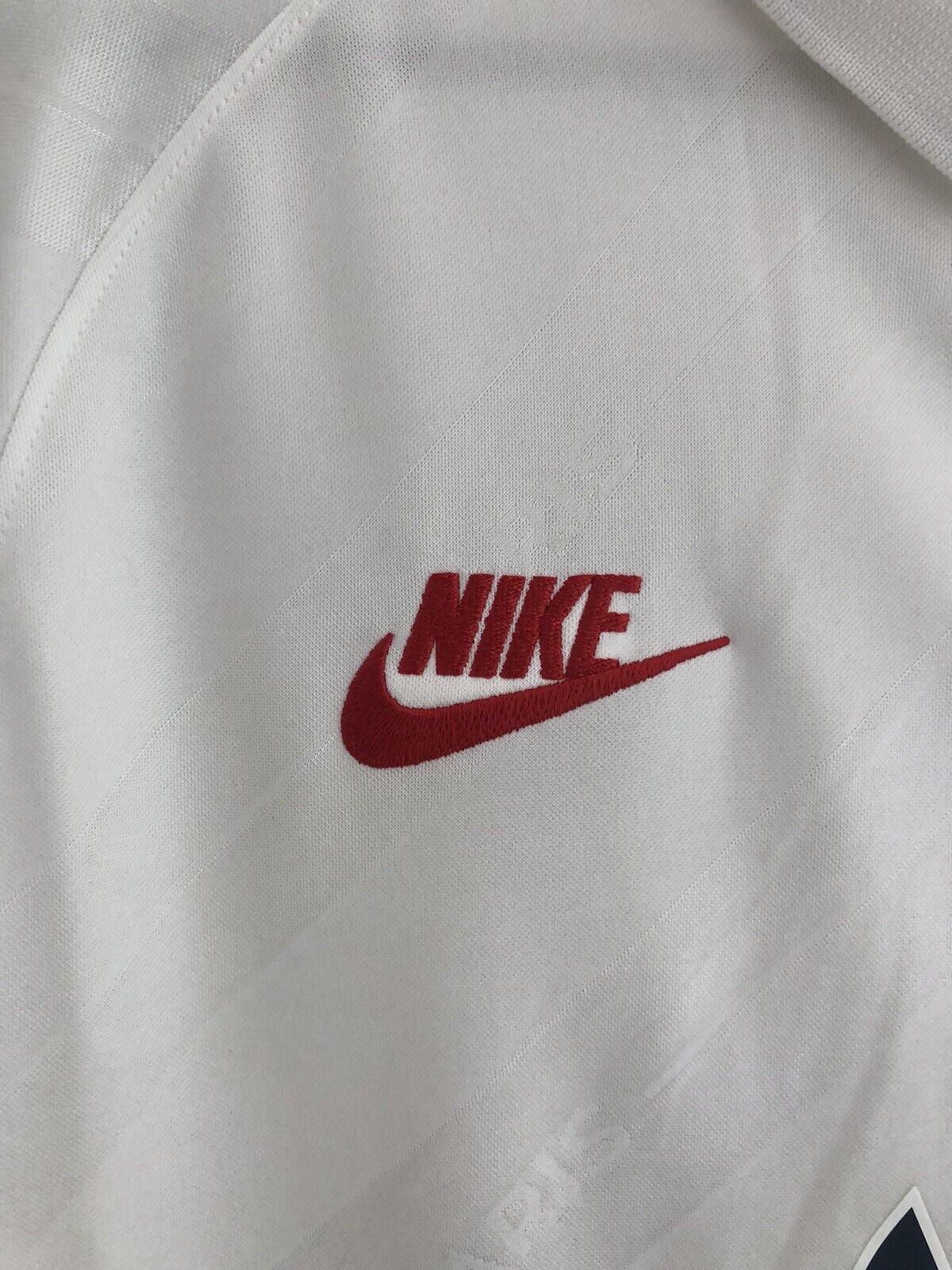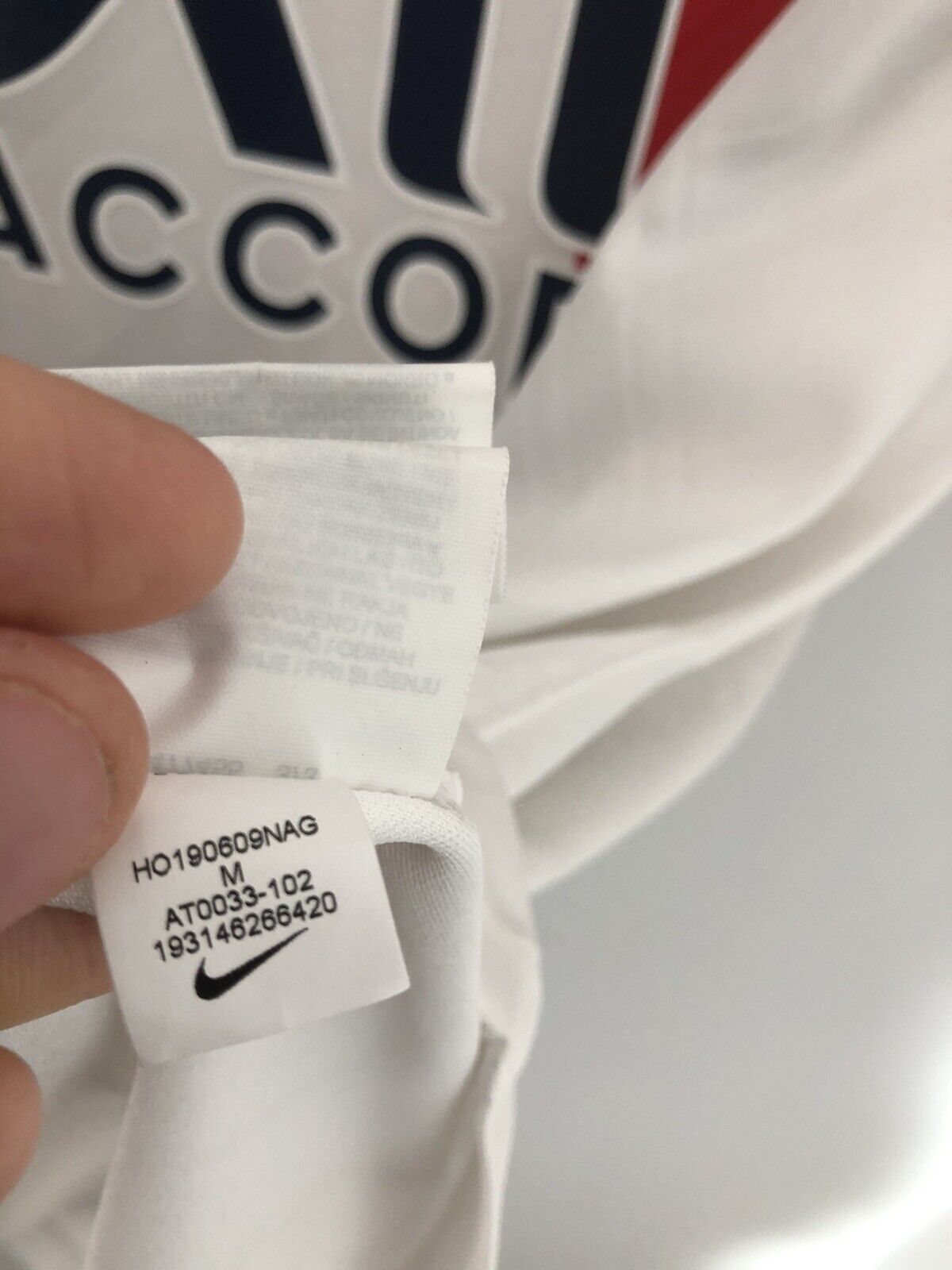 Show your support for Paris St Germain with this excellent condition Icardi #18 2019/20 3rd football shirt. The shirt features short sleeves and a loose fit, making it suitable for adults in a size medium. The shirt is made by Nike and has a product code of AT0033-102, ensuring that you get a genuine item. This shirt has collar to hem measurements of 28 inches and pit to pit measurements of 21 inches. The shirt has an official Icardi #18 nameset. This shirt is suitable for wearing casually or at the match, so why not show your love for PSG by getting this shirt today.