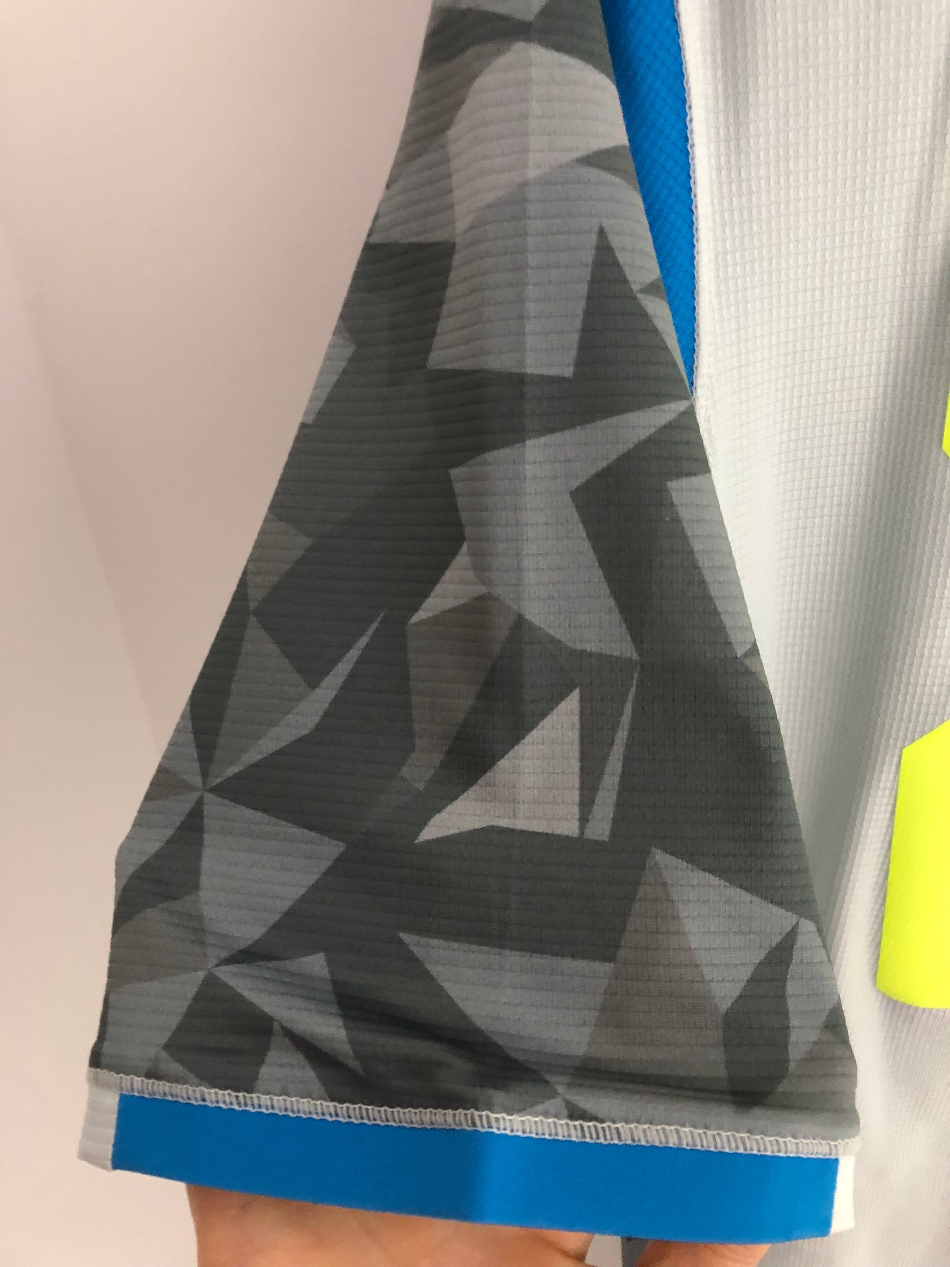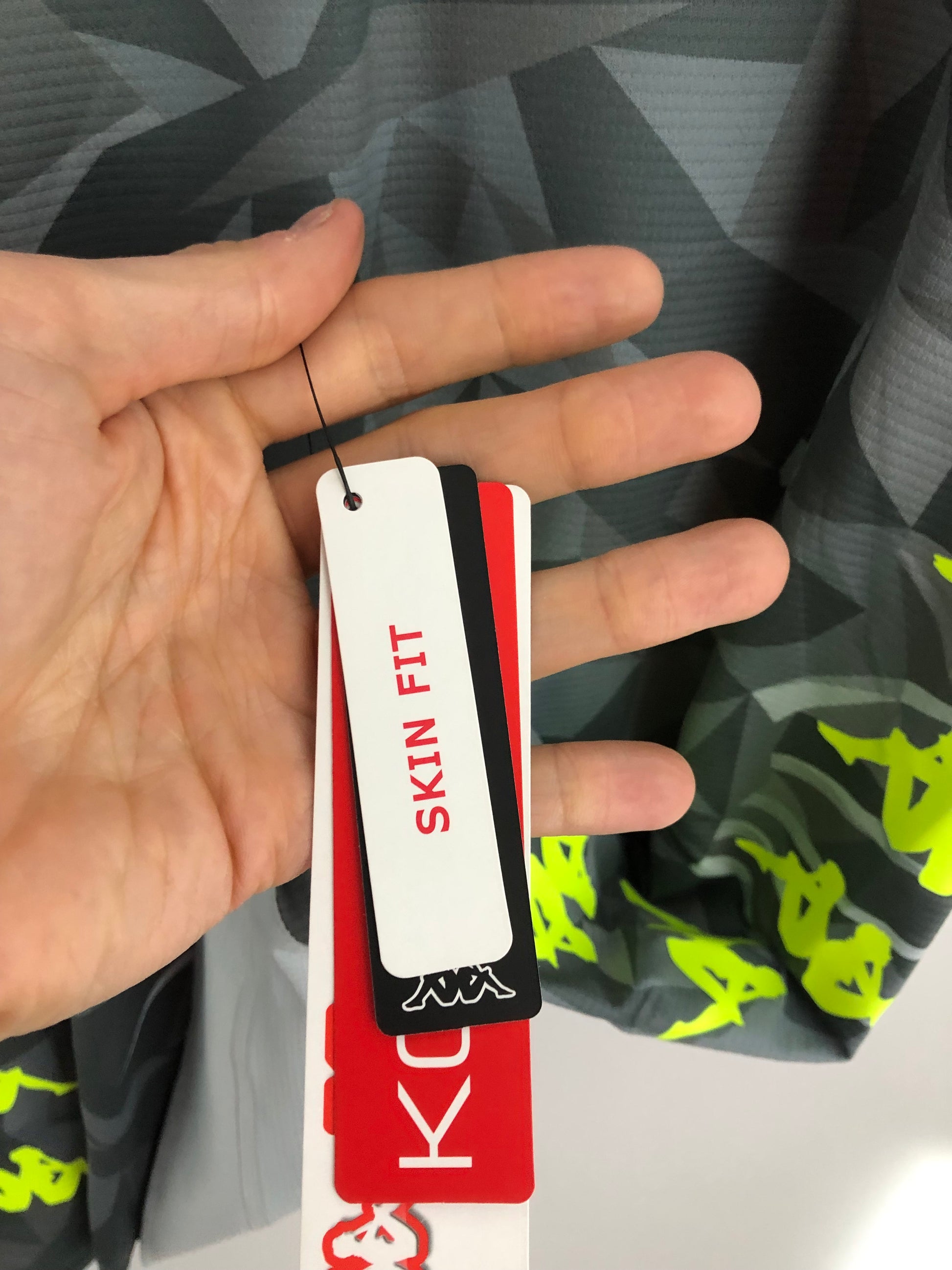 Show your support for SSC Napoli with this brand new Kappa Insigne #24 2018/19 3rd football shirt. The grey shirt features short sleeves and a tight fit, making it suitable for adults of a size large (small). The shirt is made by Kappa and has a product code of 3032vw0, ensuring that you get a genuine item. This shirt has collar to hem measurements of 28 inches and pit to pit measurements of 19 inches. The shirt has a Insigne #24 nameset. This shirt is suitable for wearing casually or at the match, so why not show your love SSC Napoli by getting this shirt today.