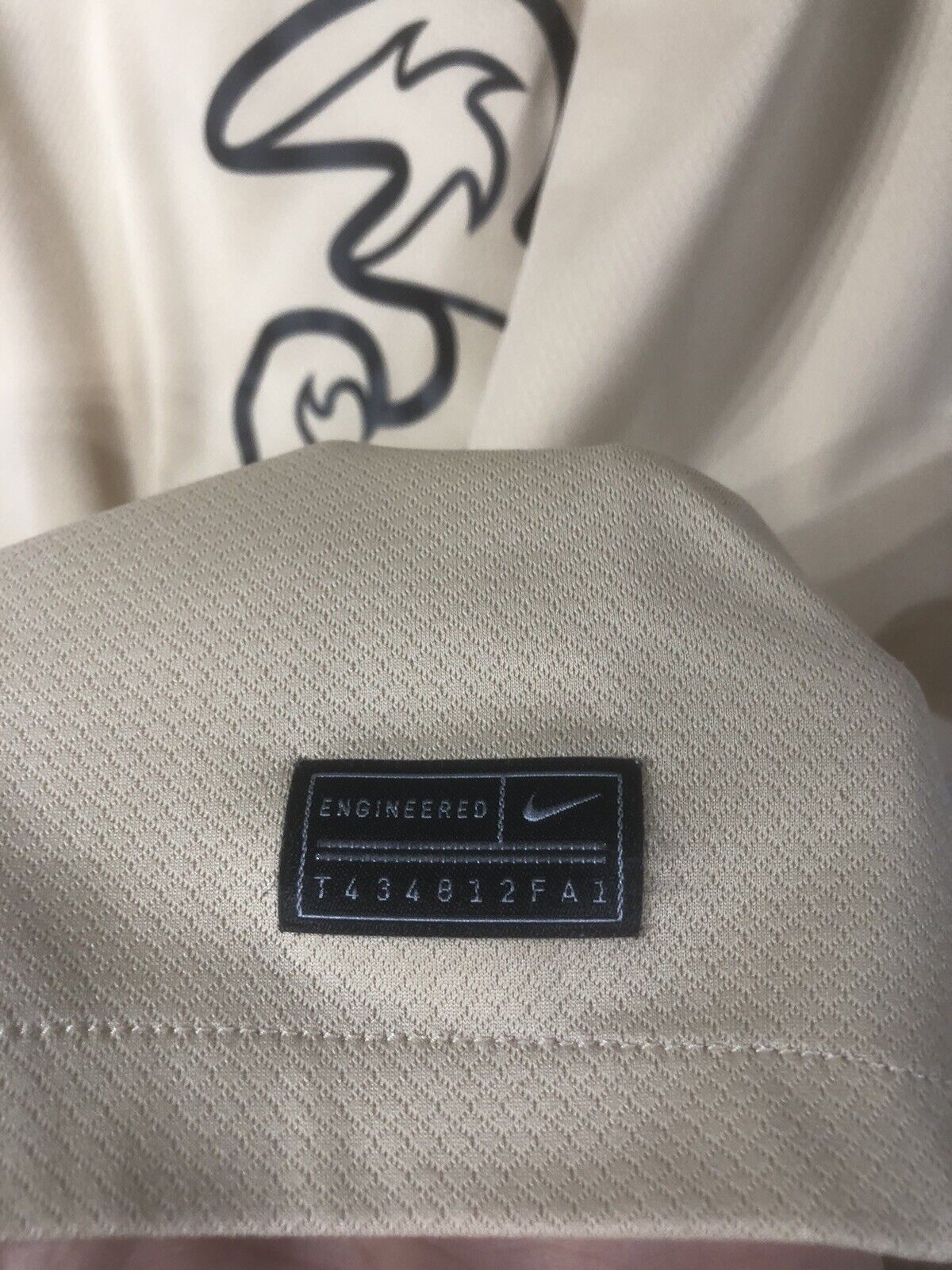 Show your support for Chelsea with this excellent condition Nike James #24 2022/23 3rd football shirt. The beige shirt features short sleeves and a loose fit, making it suitable for adults in a size medium. The shirt is made by Nike and has a product code of DM1839-496, ensuring that you get a genuine item. This shirt has collar to hem measurements of 28 inches and pit to pit measurements of 21 inches. The shirt has a Premier League nameset of James #24 and a Premier League player size patch. This shirt is suitable for wearing casually or at the match, so why not show your love Chelsea by getting this shirt today.