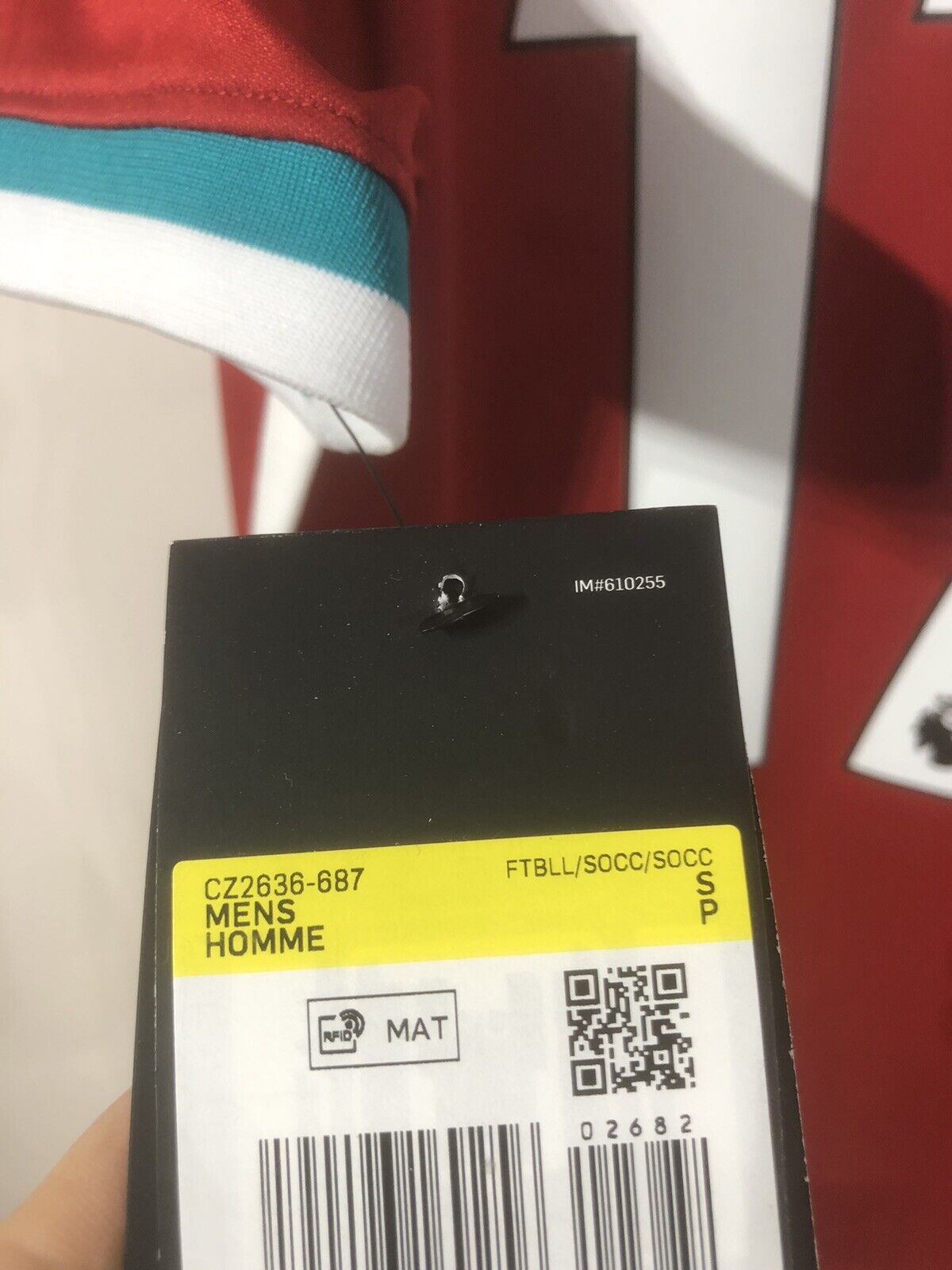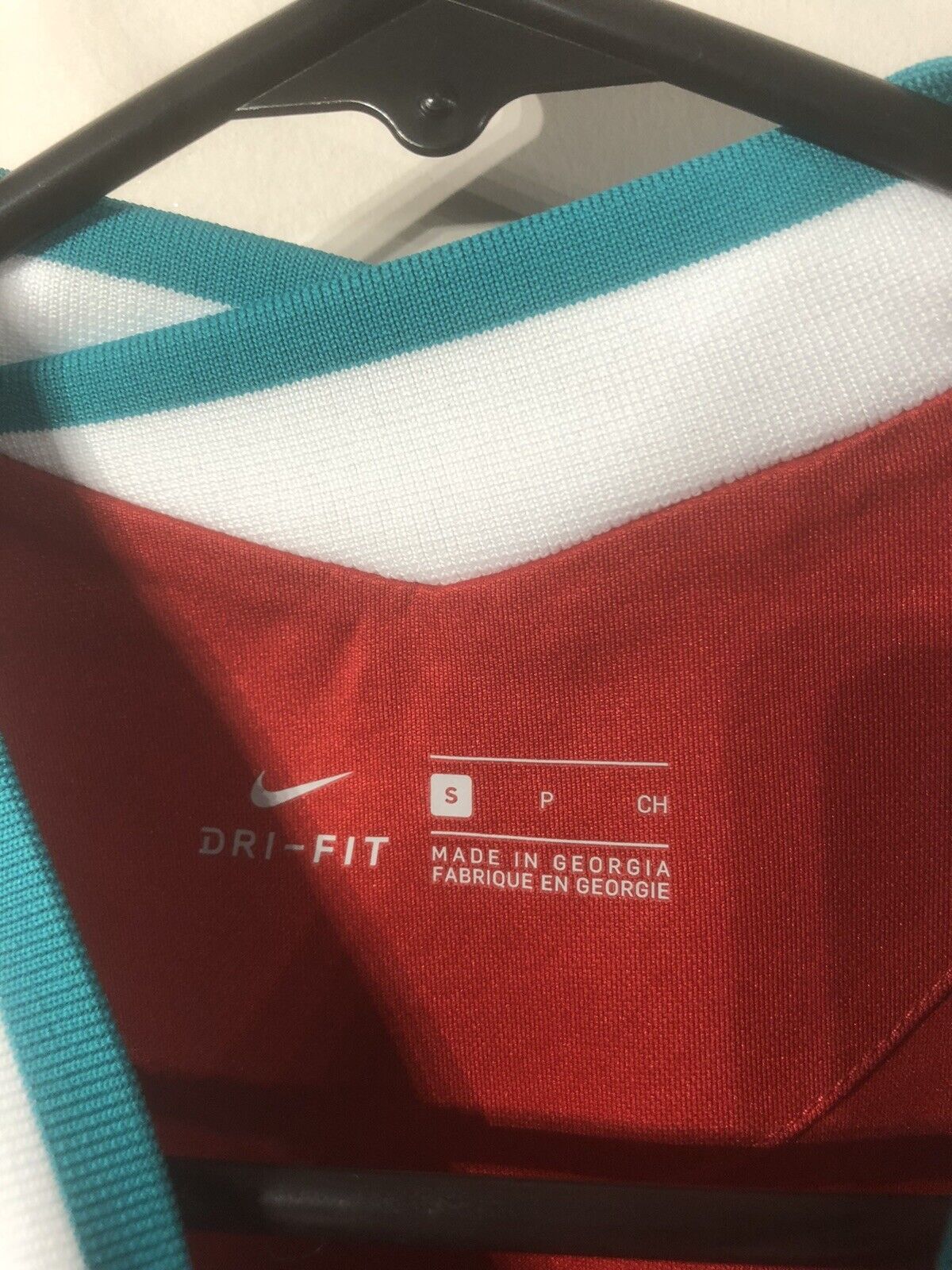 Show your support for Liverpool FC with this brand new home shirt jersey featuring Curtis Jones' #17 nameset. The short-sleeved shirt, made by Nike, is suitable for adults and is a size small. The iconic red colour of the shirt represents the club's passion and determination to win.