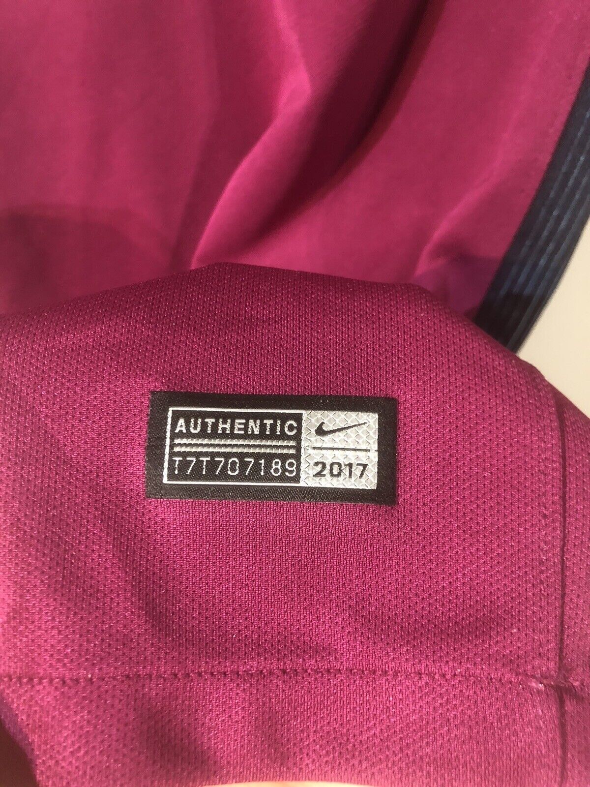 Show your support for Manchester City with this 2017/18 away shirt, featuring the iconic #4 Kompany nameset. Made by Nike and designed for adults, this shirt is perfect for football enthusiasts looking to add to their collection. With short sleeves and a vibrant purple colour, this shirt is a must-have for fans of the English club.