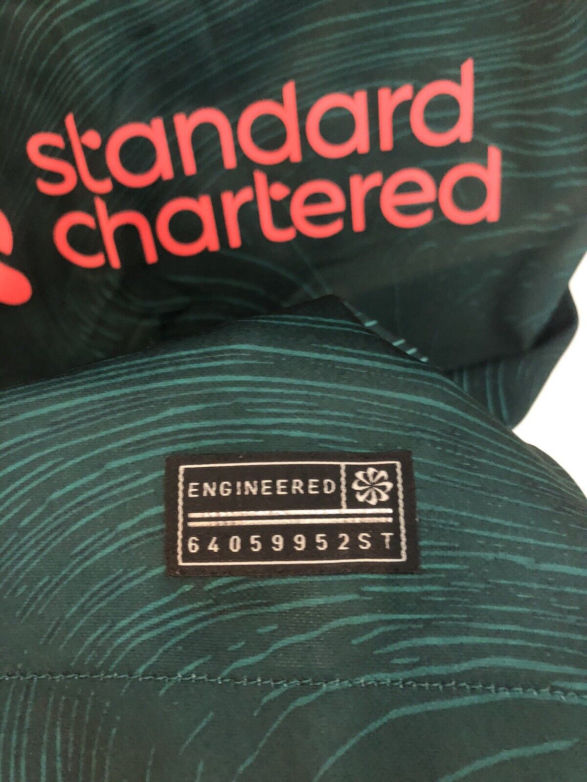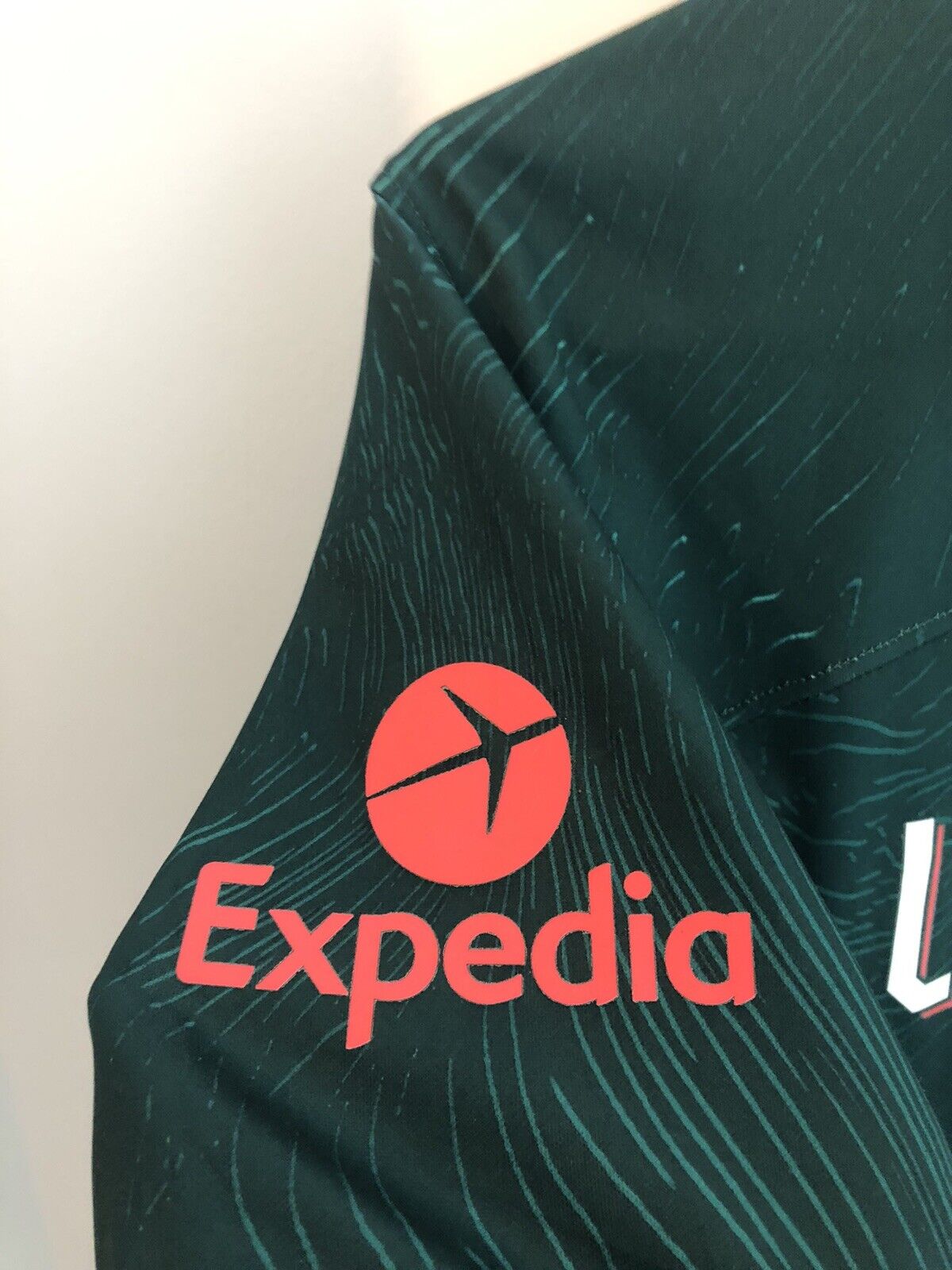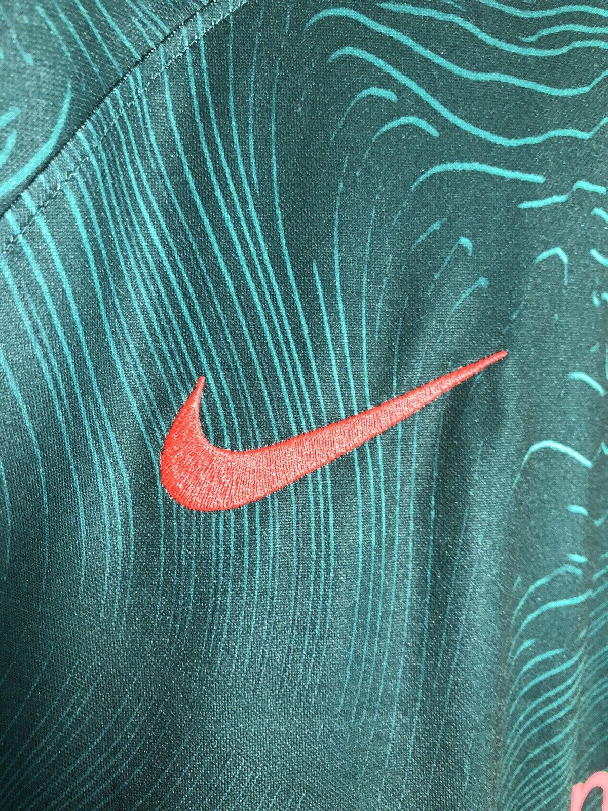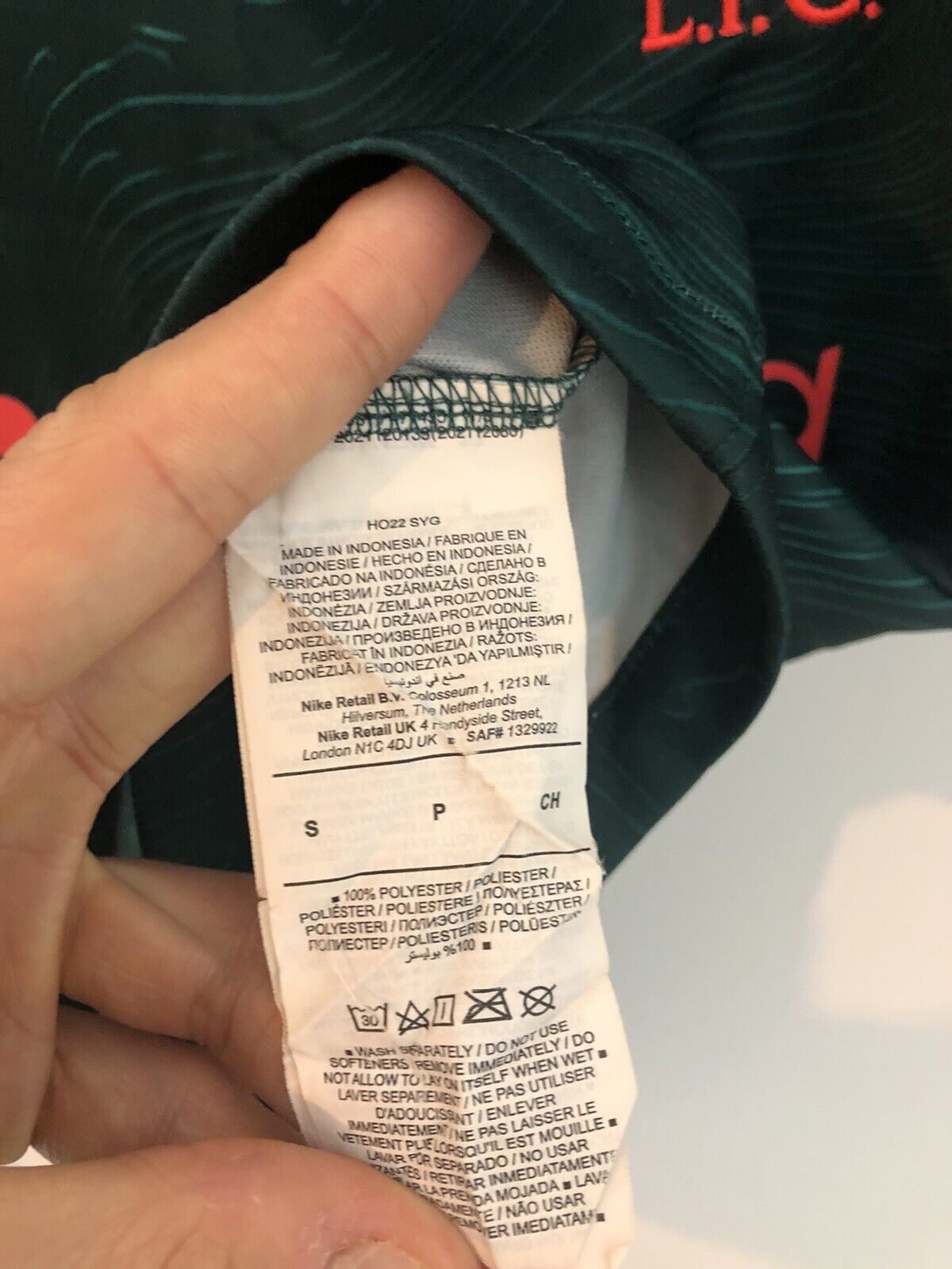 Show your support for Liverpool with this excellent condition Luis Diaz #23 2022/23 3rd football shirt. The green shirt features short sleeves and a loose fit, making it suitable for adults in an small. The shirt is made by Nike and has a product code of DM1835-377, ensuring that you get a genuine item. This shirt has collar to hem measurements of 28 inches and pit to pit measurements of 20 inches. The shirt has an official Luis Diaz #23 euro nameset. This shirt is suitable for wearing casually or at the match, so why not show your love for Liverpool by getting this shirt today.