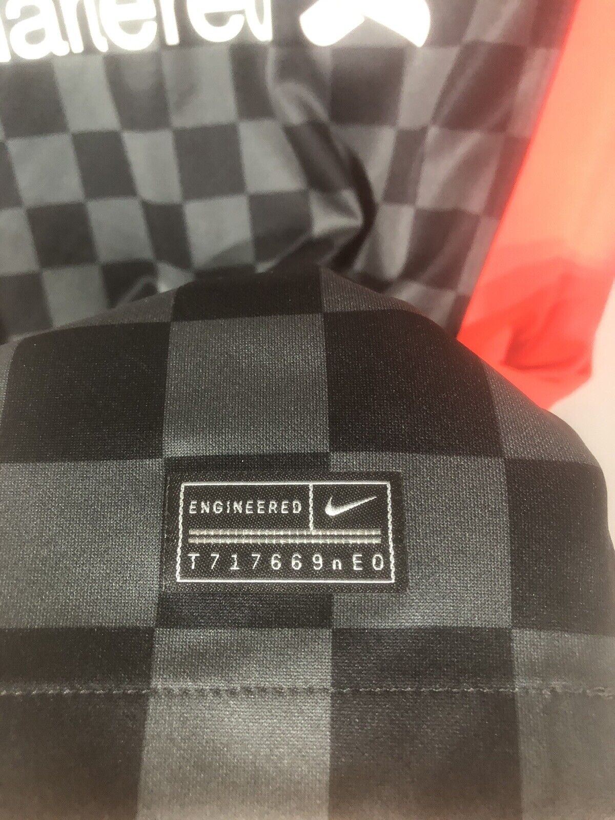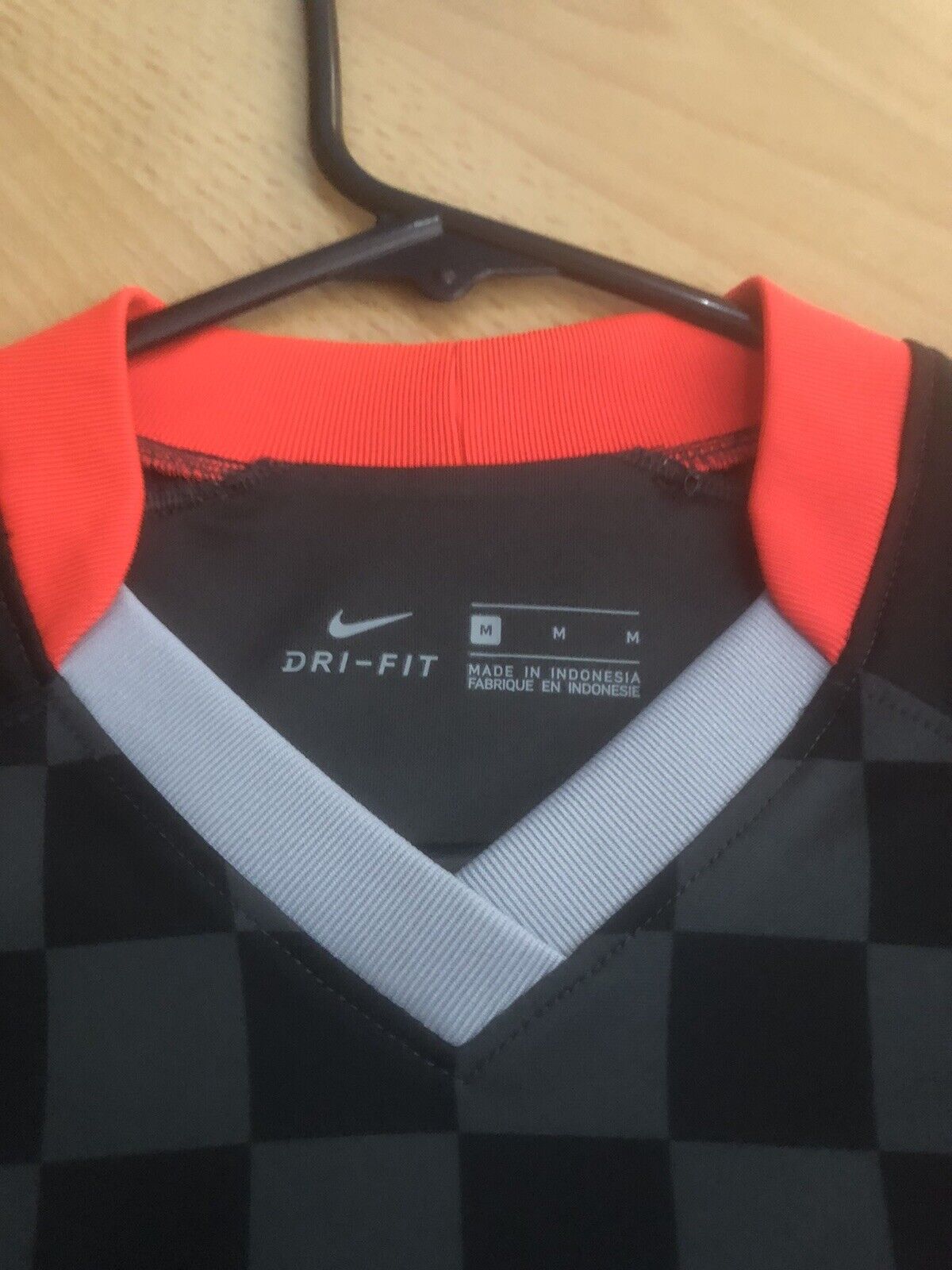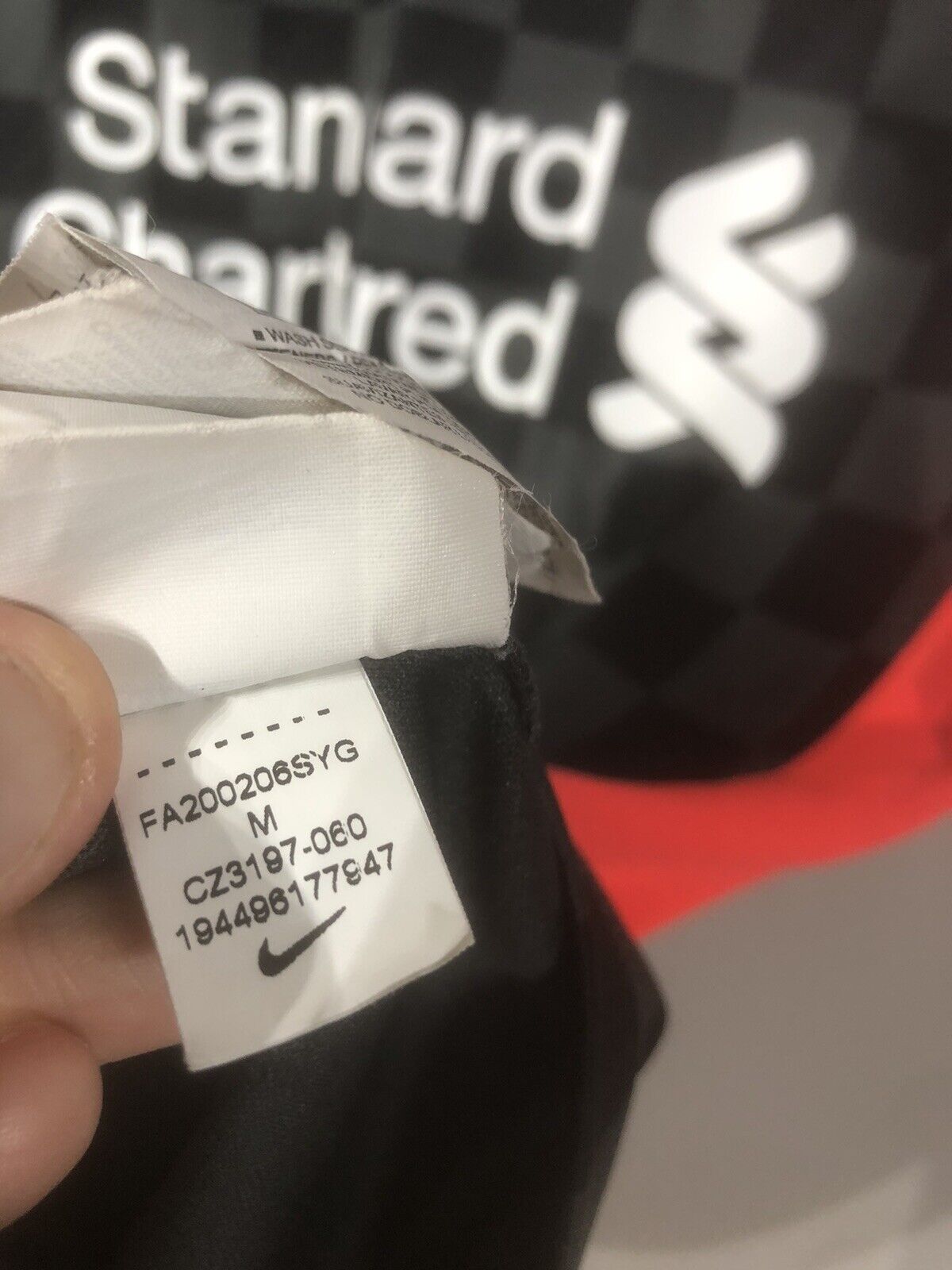 Show your support for Liverpool with this excellent condition M. Salah #11 2020/21 3rd football shirt. The stylish red & black shirt features short sleeves and a loose fit, making it suitable for adults in a size medium. The shirt is made by Nike and has a product code of CZ3197-060, ensuring that you get a genuine item. This shirt has collar to hem measurements of 28 inches and pit to pit measurements of 20 inches. The shirt has a official Liverpool M. Salah #11 nameset. This shirt is suitable for wearing casually or at the match, so why not show your love for Liverpool by getting this shirt today.