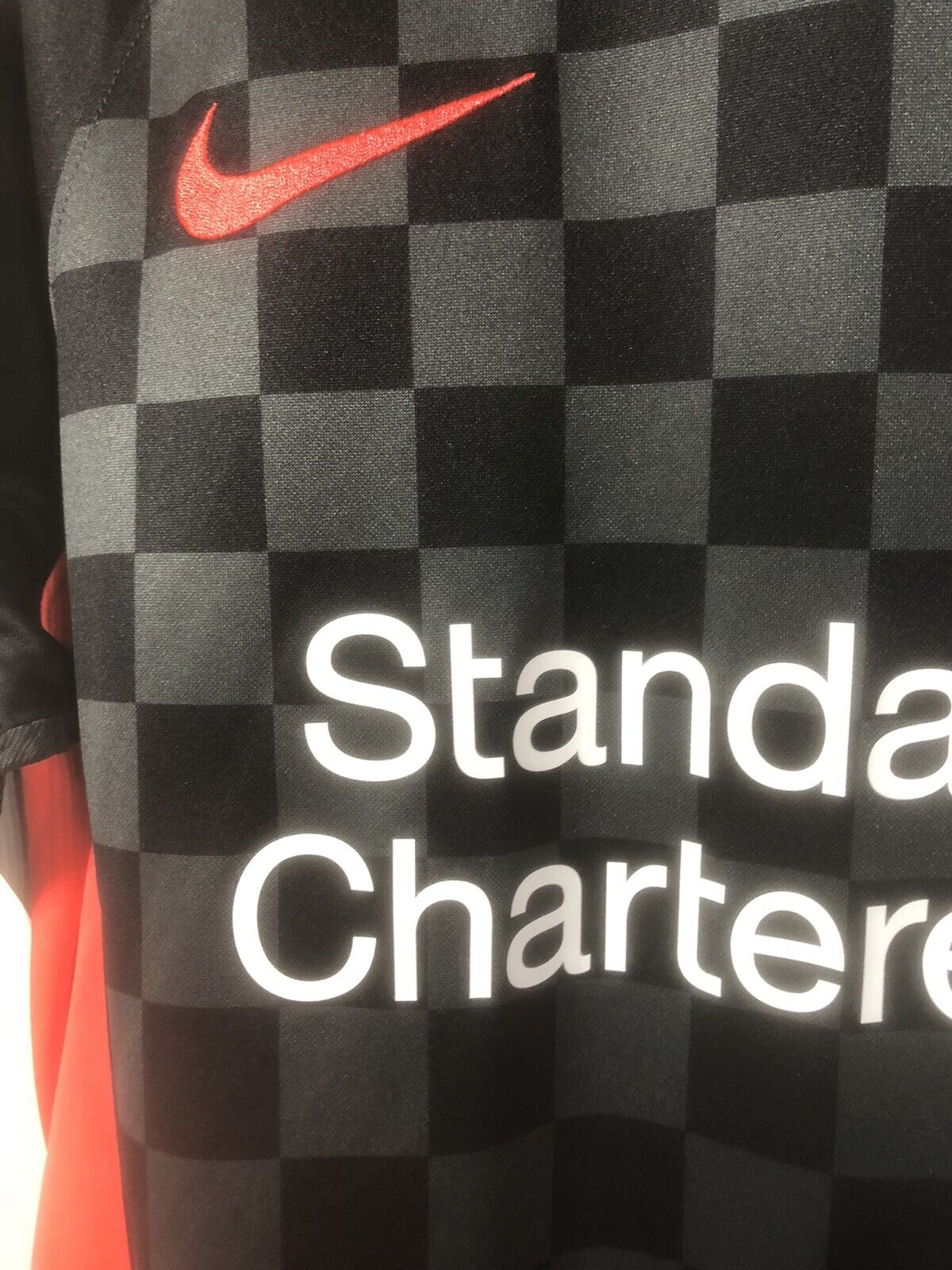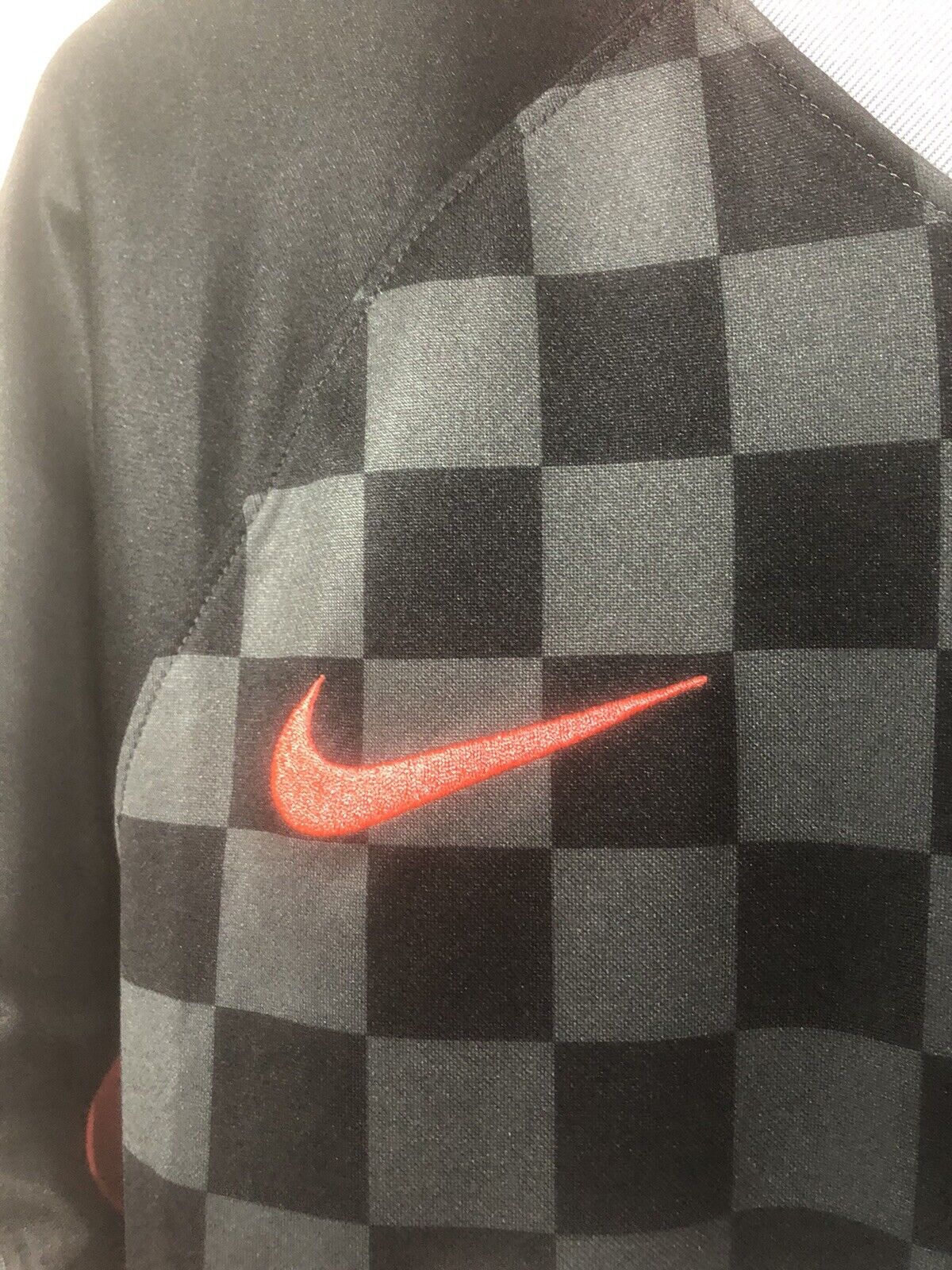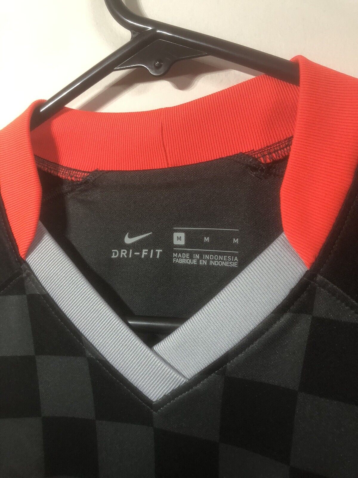 Show your support for Liverpool with this excellent condition M. Salah #11 2020/21 3rd football shirt. The stylish red & black shirt features short sleeves and a loose fit, making it suitable for adults in a size medium. The shirt is made by Nike and has a product code of CZ3197-060, ensuring that you get a genuine item. This shirt has collar to hem measurements of 28 inches and pit to pit measurements of 20 inches. The shirt has a official Liverpool M. Salah #11 nameset. This shirt is suitable for wearing casually or at the match, so why not show your love for Liverpool by getting this shirt today.