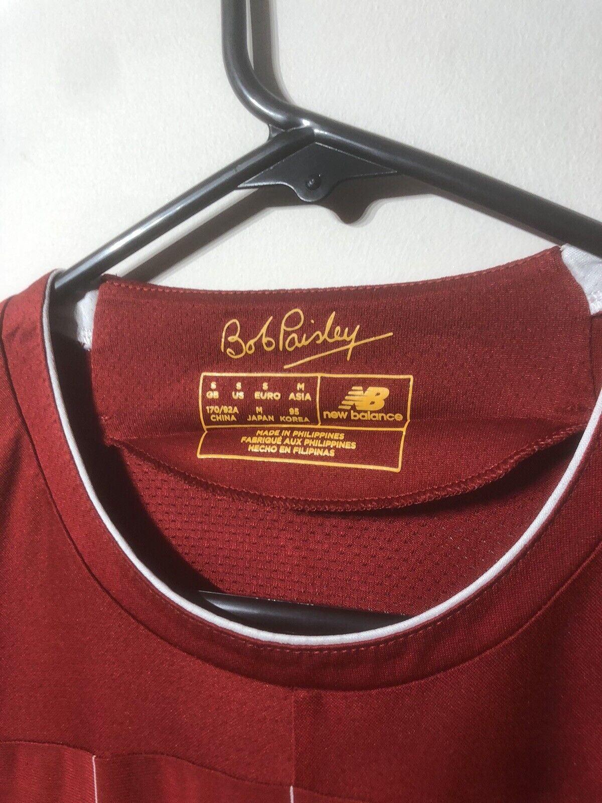 Show your support for Liverpool and their top scorer with this M. Salah #11 home shirt. Made by New Balance, this short-sleeved shirt is in excellent shape and perfect for adult fans of the English club. The size is small and the main colour is red, matching the team's iconic look. This shirt is an official piece of sports memorabilia, ideal for collectors of football shirts and Liverpool fans alike.