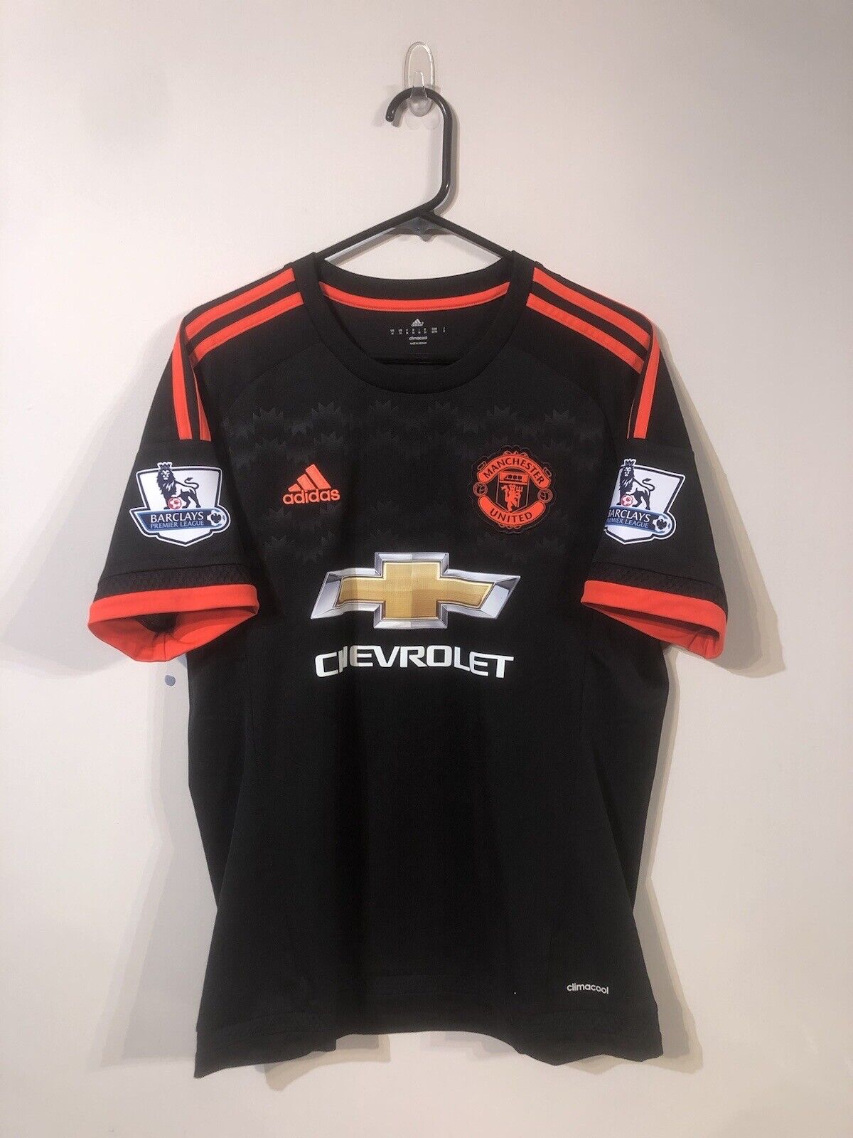 Get ready to show your support for Manchester United with this amazing 2015/16 3rd kit football shirt. Made by adidas, this shirt is suitable for adults and comes in a size medium. With short sleeves and a sleek black design, you'll be looking and feeling great on and off the field.