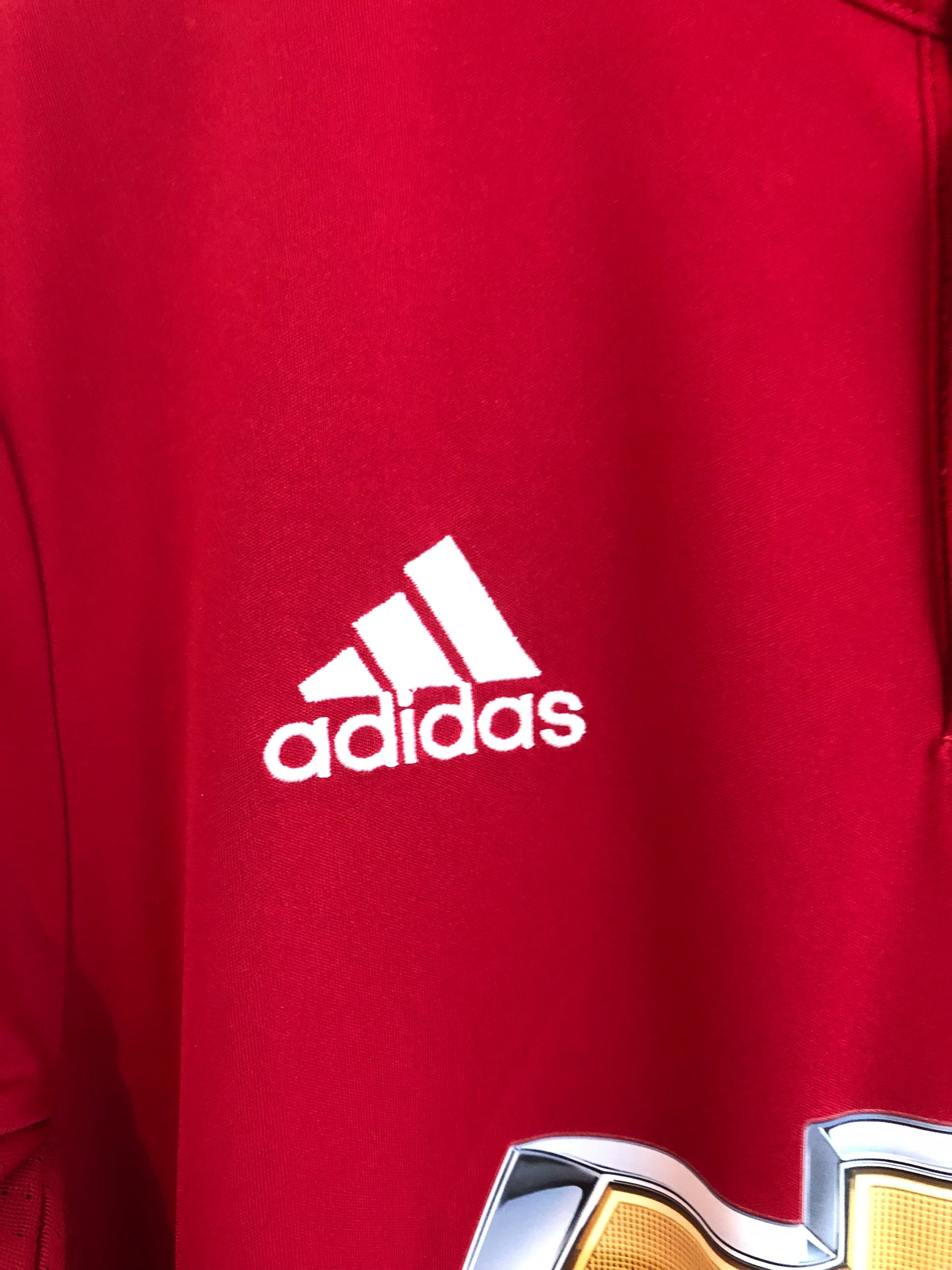 Show your support for Manchester United with this excellent condition Mata #8 2017/18 home football shirt. The red shirt features short sleeves and a loose fit, making it suitable for adults in a size medium. The shirt is made by Adidas and has a product code of Bs1214, ensuring that you get a genuine item. This shirt has collar to hem measurements of 29 inches and pit to pit measurements of 21 inches. The shirt has an official Mata #8 European nameset. This shirt is suitable for wearing casually or at the match, so why not show your love for Manchester United by getting this shirt today.