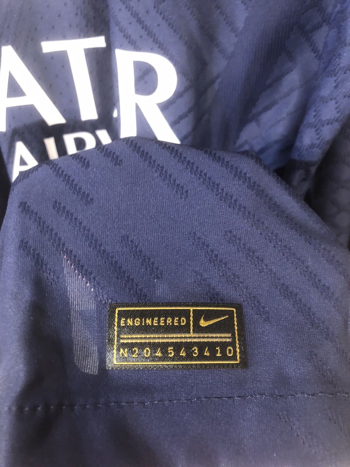 Get your hands on this authentic Lionel Messi #30 Paris Saint-Germain home shirt made by Nike. The short-sleeved shirt is designed for adults and comes in size M. The blue shirt is perfect for football enthusiasts who want to show their support for the French football club.