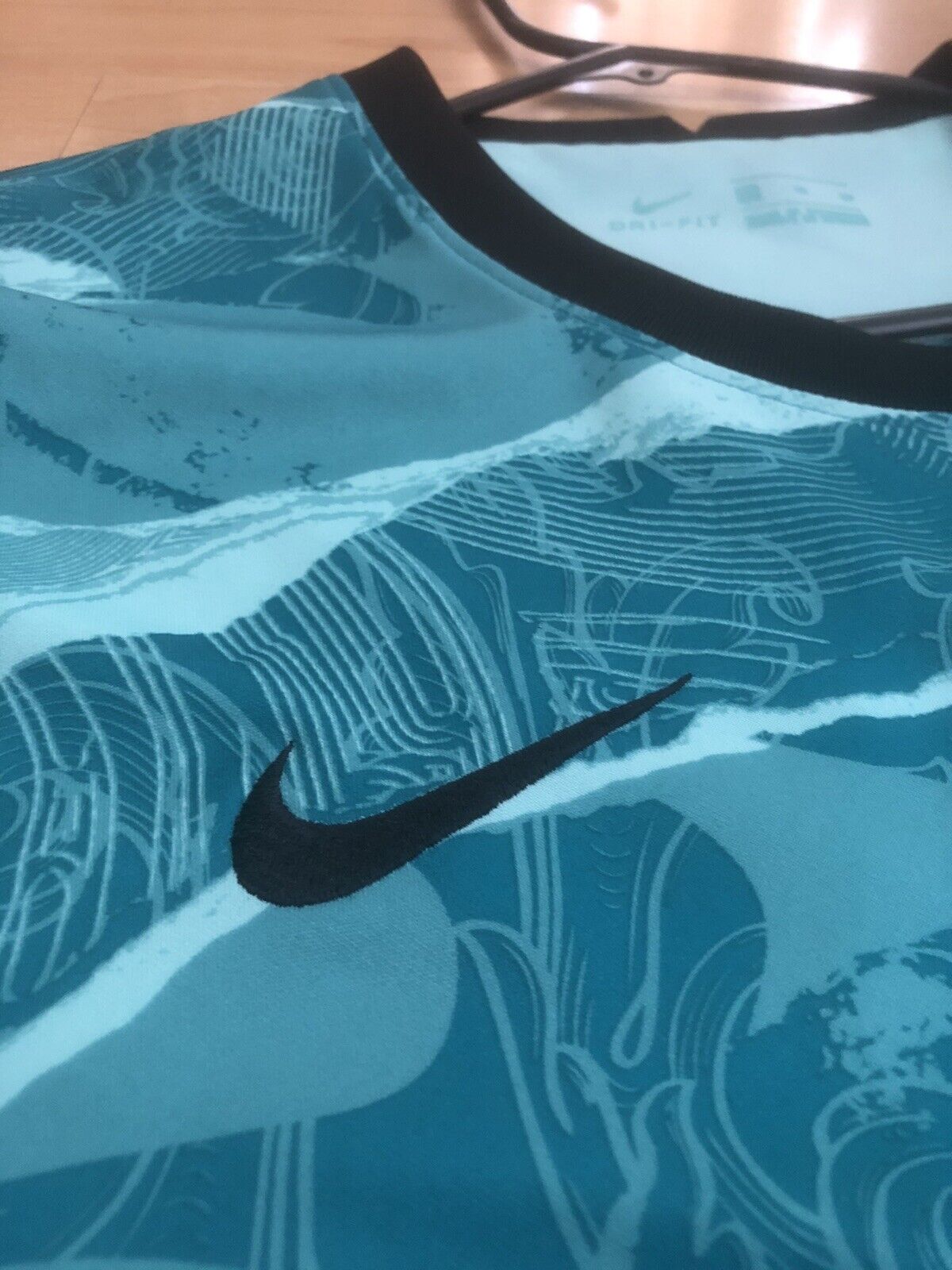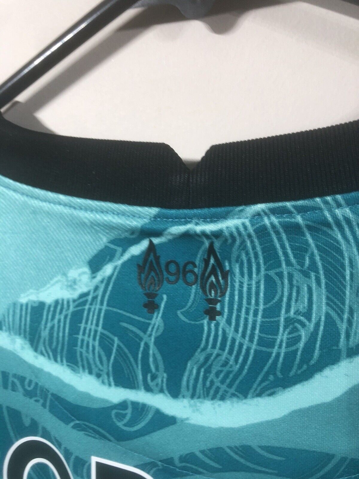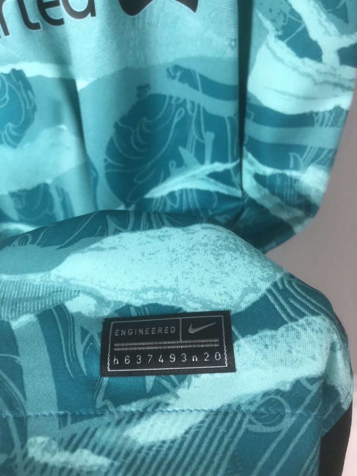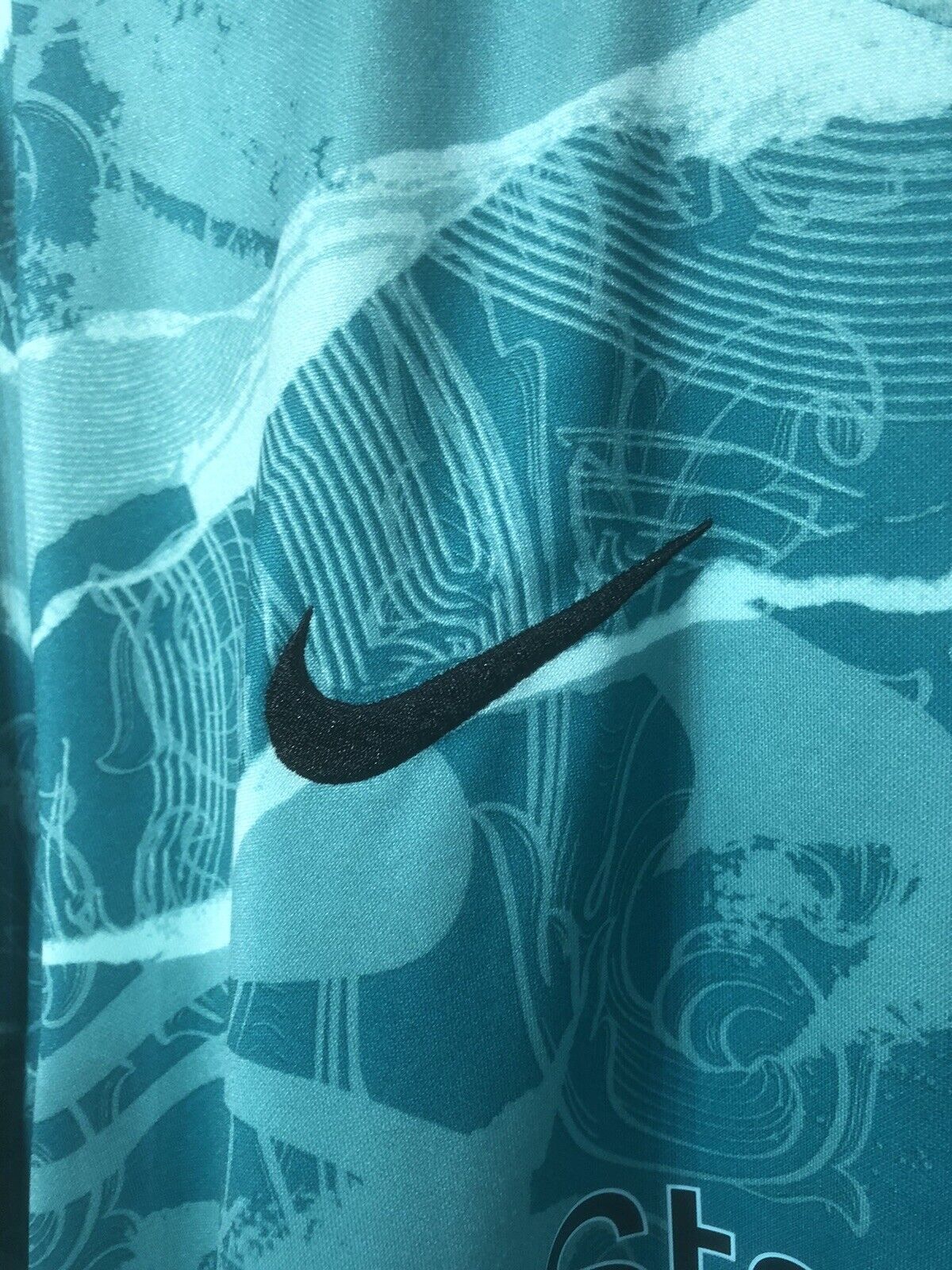 Show your support for Liverpool with this very good condition Origi #27 2020/21 away football shirt. The green shirt features short sleeves and a loose fit, making it suitable for adults in a size XL. The shirt is made by Nike and has a product code of CZ2635-354, ensuring that you get a genuine item. This shirt has collar to hem measurements of 30 inches and pit to pit measurements of 22 inches. The shirt has an official Avery Dennison Origi #27 nameset. This shirt is suitable for wearing casually or at the match, so why not show your love for Liverpool by getting this shirt today.