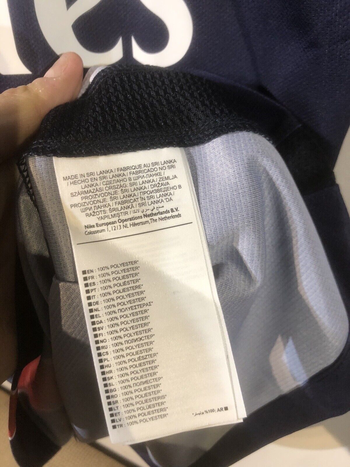 The shirt has never been worn and still has its original tags attached, making it a brand new item. It was manufactured in Sri Lanka, adding to its uniqueness and rarity. This is a great opportunity to own a piece of Paris St Germain history, without mentioning its condition explicitly.