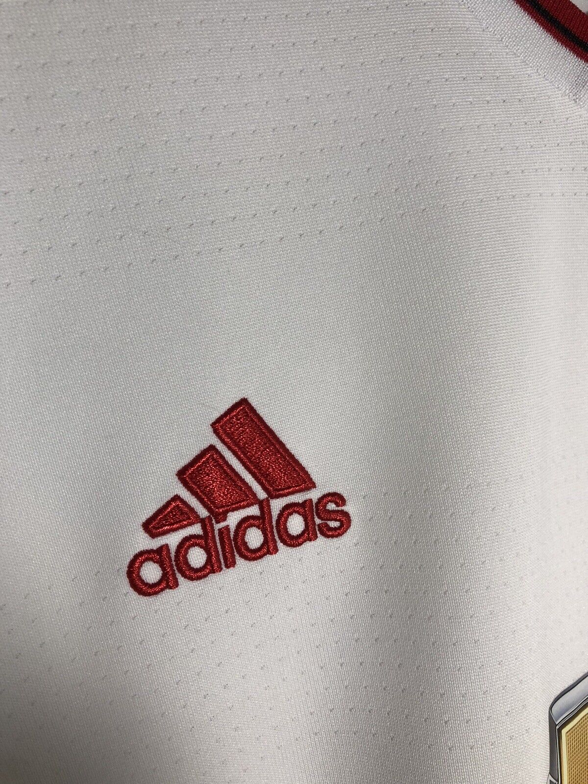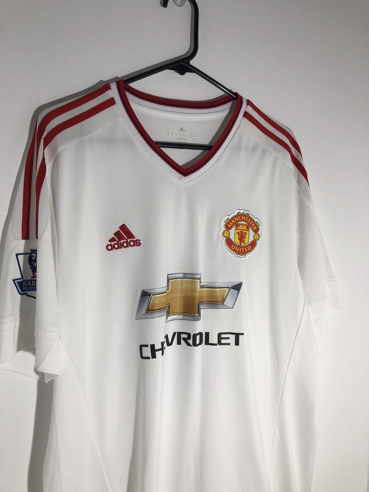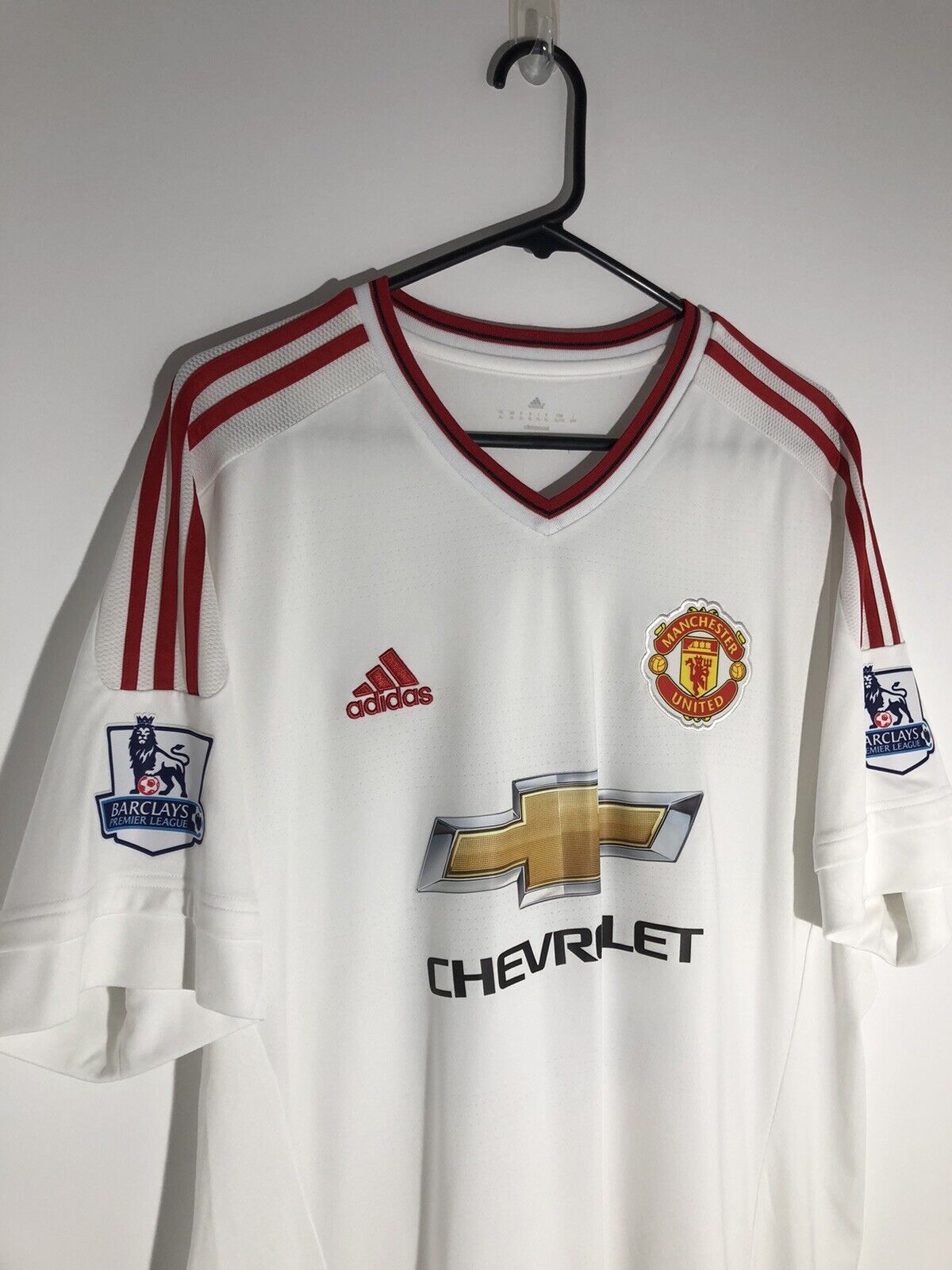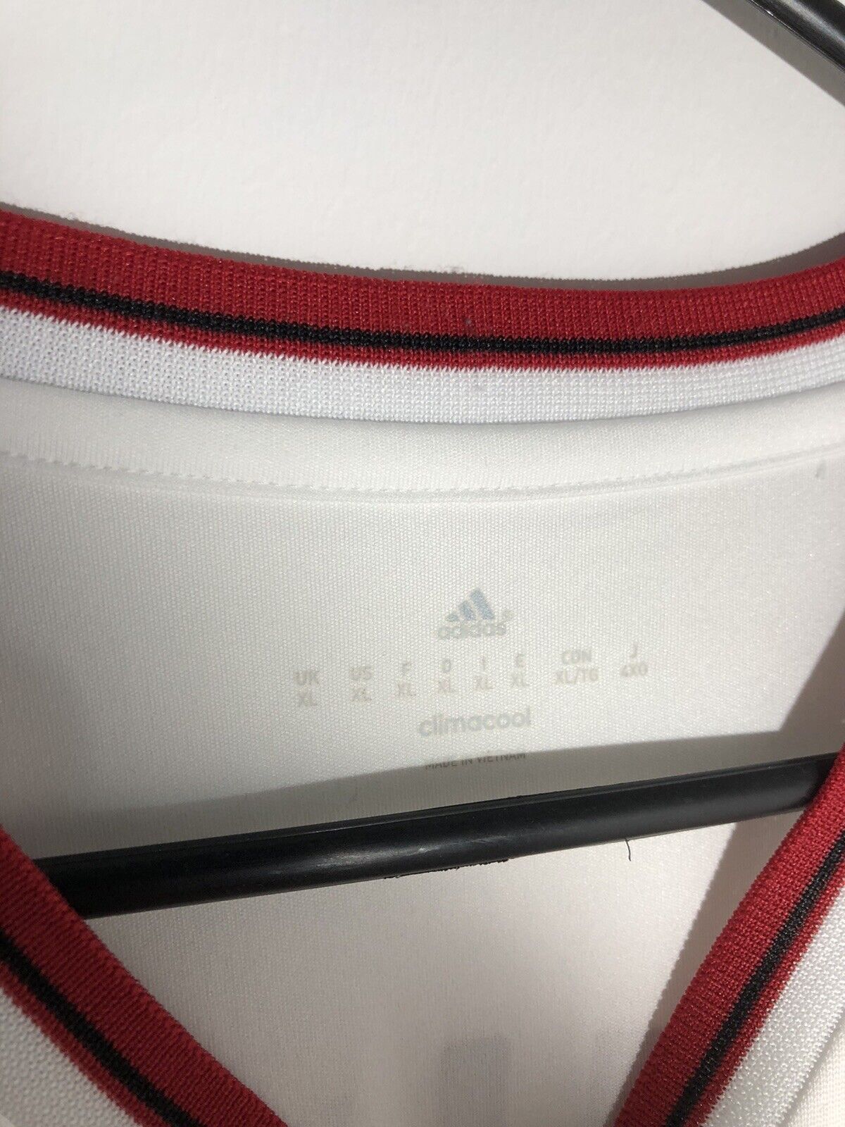 Show your support for Manchester United with this brand new Rashford #39 2015/16 away football shirt. The bright white shirt features short sleeves and a loose fit, making it suitable for adults in a size XL. The shirt is made by Adidas and has a product code of AI6363, ensuring that you get a genuine item. This shirt has collar to hem measurements of 31 inches and pit to pit measurements of 22 inches. The shirt has a official Manchester United Rashford #39 nameset. This shirt is suitable for wearing casually or at the match, so why not show your love for Manchester United by getting this shirt today.