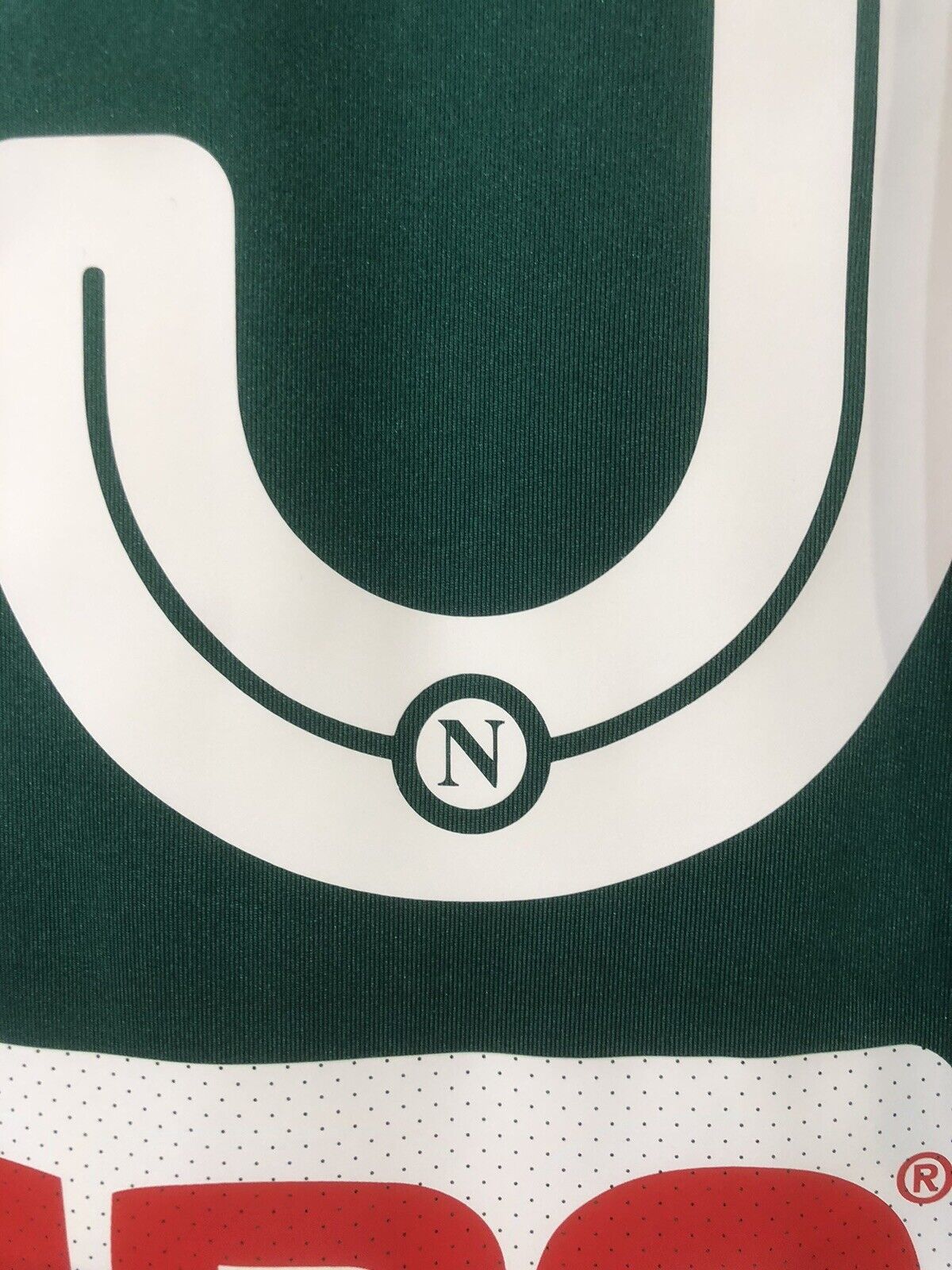 The shirt is a Kappa brand and is officially licensed by the Italian club. It is a football sports memorabilia, perfect for collectors or fans who want to show their support for SSC Napoli. This shirt is not match-worn and was not previously used by any player. Get this limited edition item now and show off your love for football and SSC Napoli!