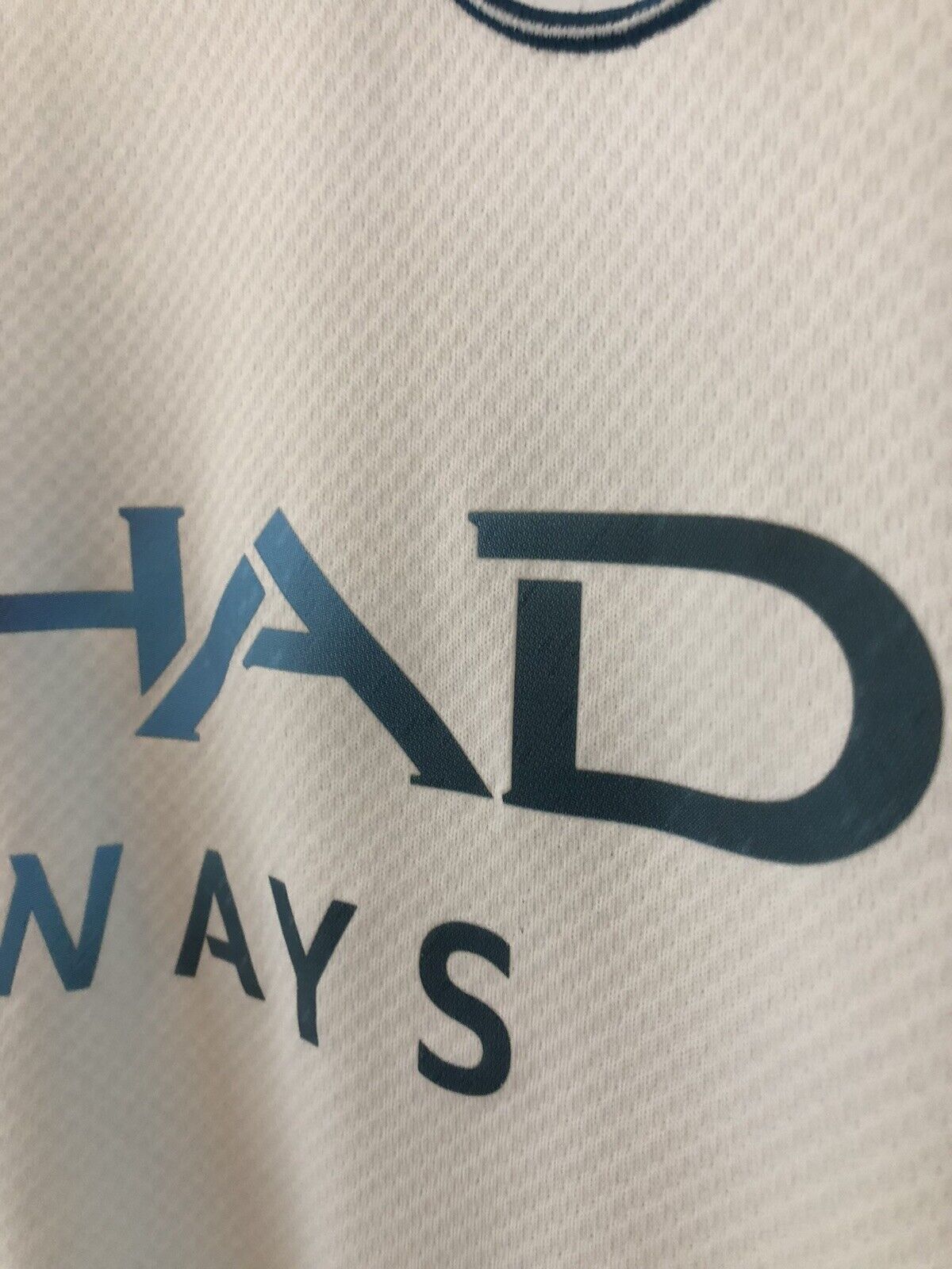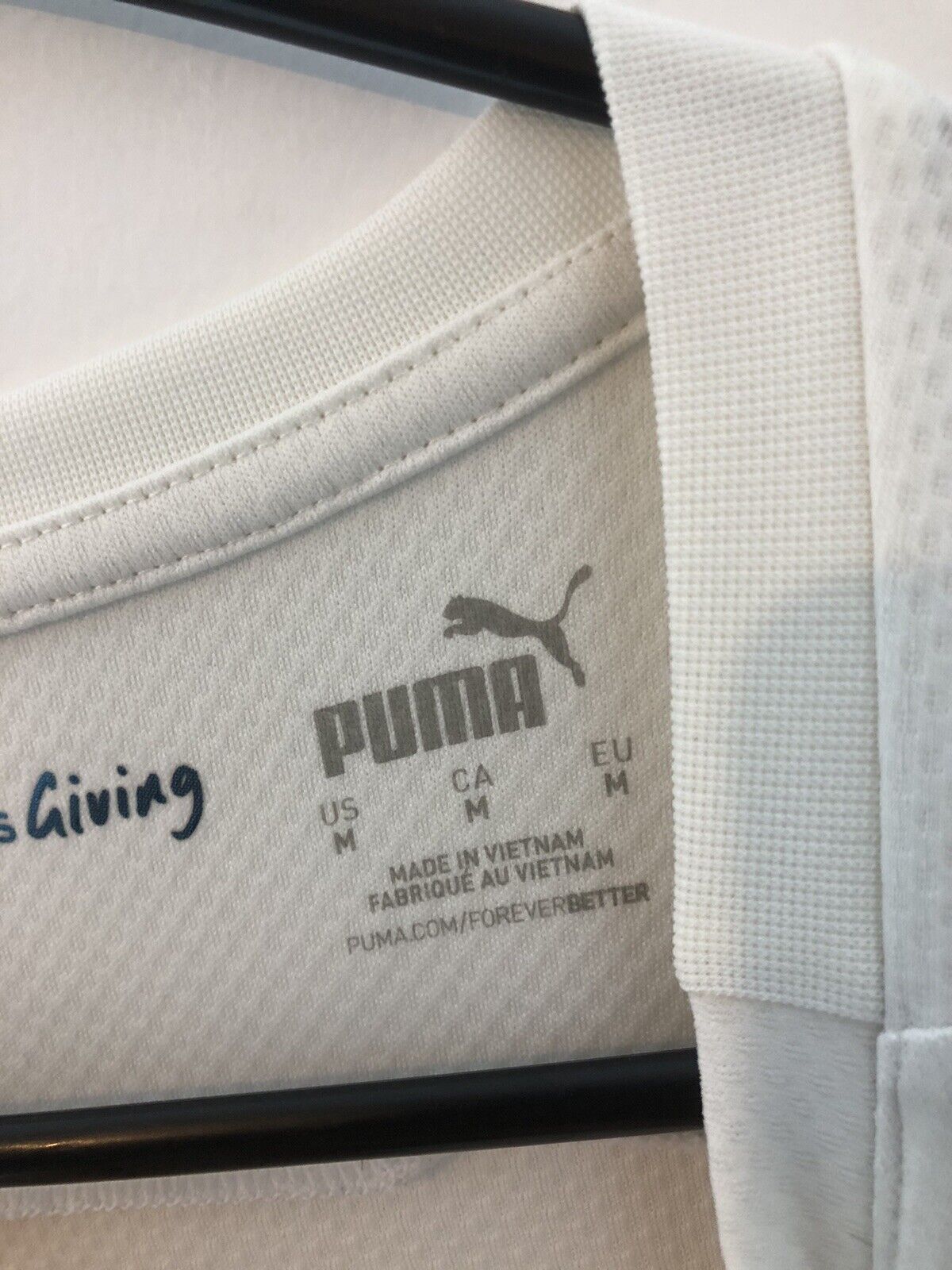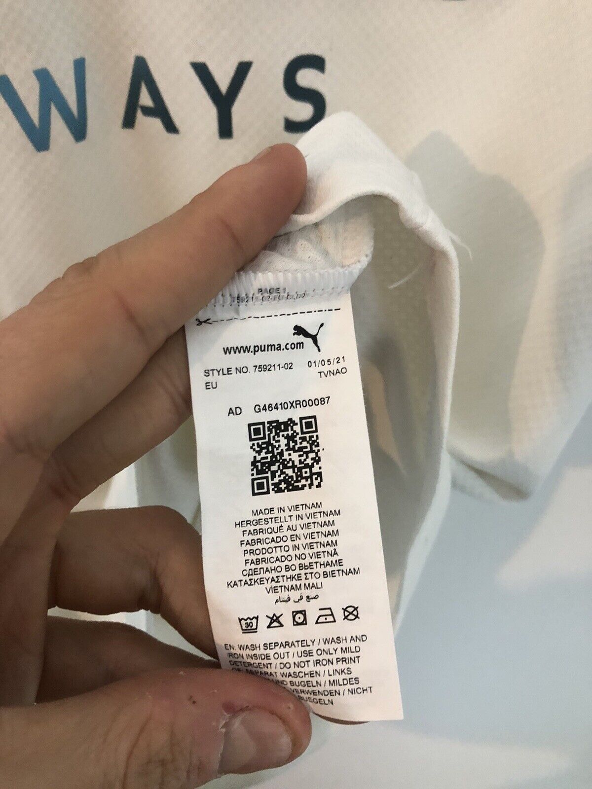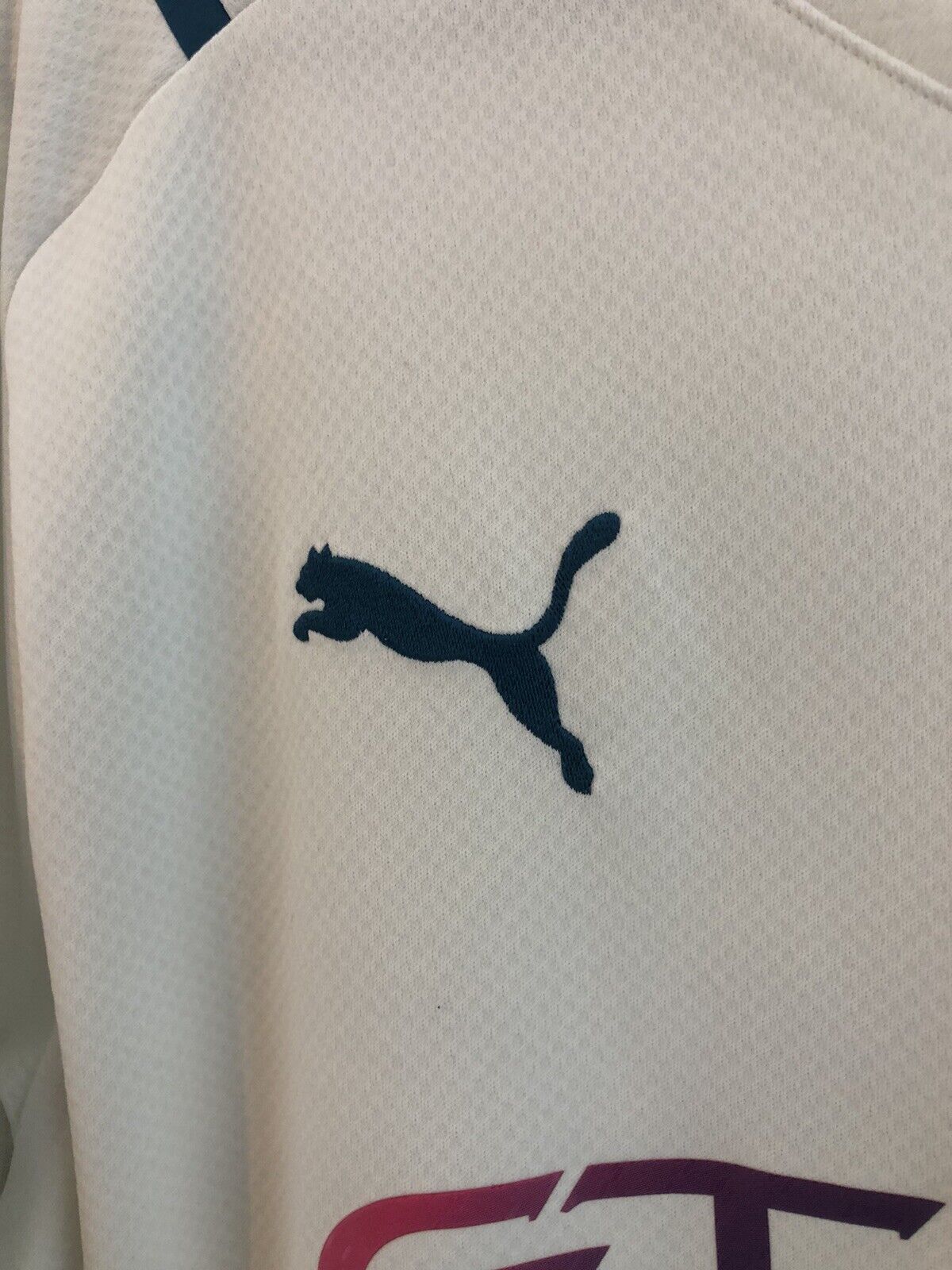 Show your support for Manchester City with this excellent condition Rodri #16 2021/22 away football shirt. The stylish cream shirt features short sleeves and a loose fit, making it suitable for adults in a size medium. The shirt is made by Puma and has a product code of 759211-02, ensuring that you get a genuine item. This shirt has collar to hem measurements of 28 inches and pit to pit measurements of 21 inches. This shirt is suitable for wearing casually or at the match, so why not show your love for Manchester City by getting this shirt today.