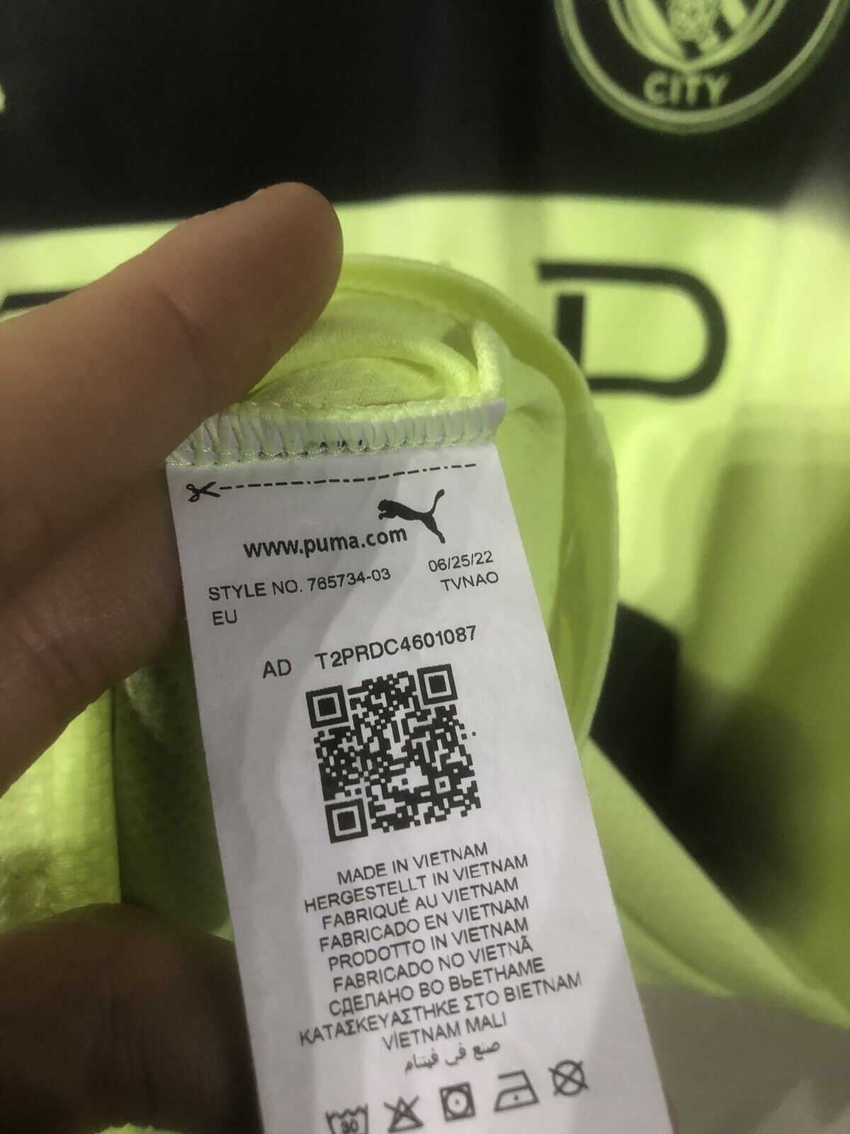 Show your support for Manchester City with this excellent condition Rodri #16 2022/23 3rd football shirt. The shirt features short sleeves and a loose fit, making it suitable for adults in a size large. The shirt is made by PUMA and has a product code of 765734-03, ensuring that you get a genuine item. This shirt has collar to hem measurements of 28 inches and pit to pit measurements of 22 inches. The shirt has an official Rodri #16 nameset. This shirt is suitable for wearing casually or at the match, so why not show your love for Manchester City by getting this shirt today.