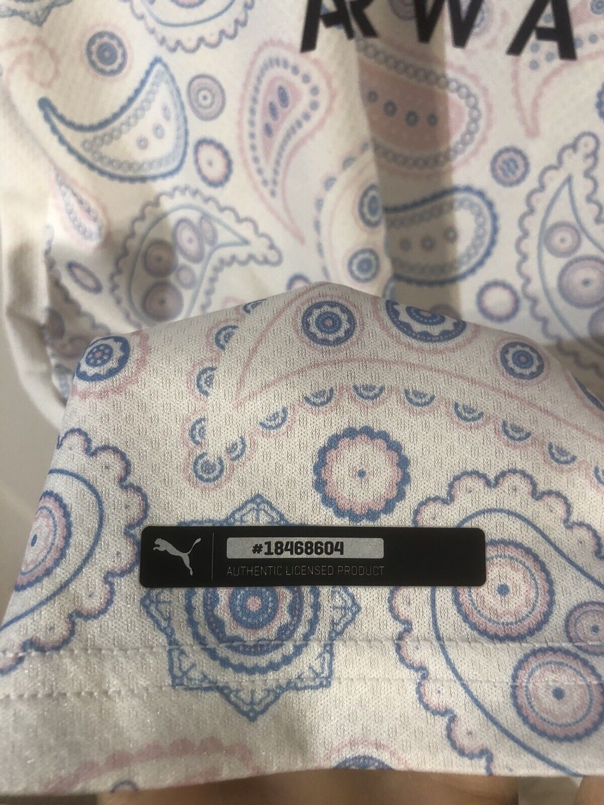 Show your support for Manchester City with this stunning 2020/21 3rd Kit shirt featuring Rodrigo's #16 nameset. Made by PUMA, this shirt is perfect for any adult fan. The short-sleeved shirt comes in size M and is the perfect addition to any football memorabilia collection.