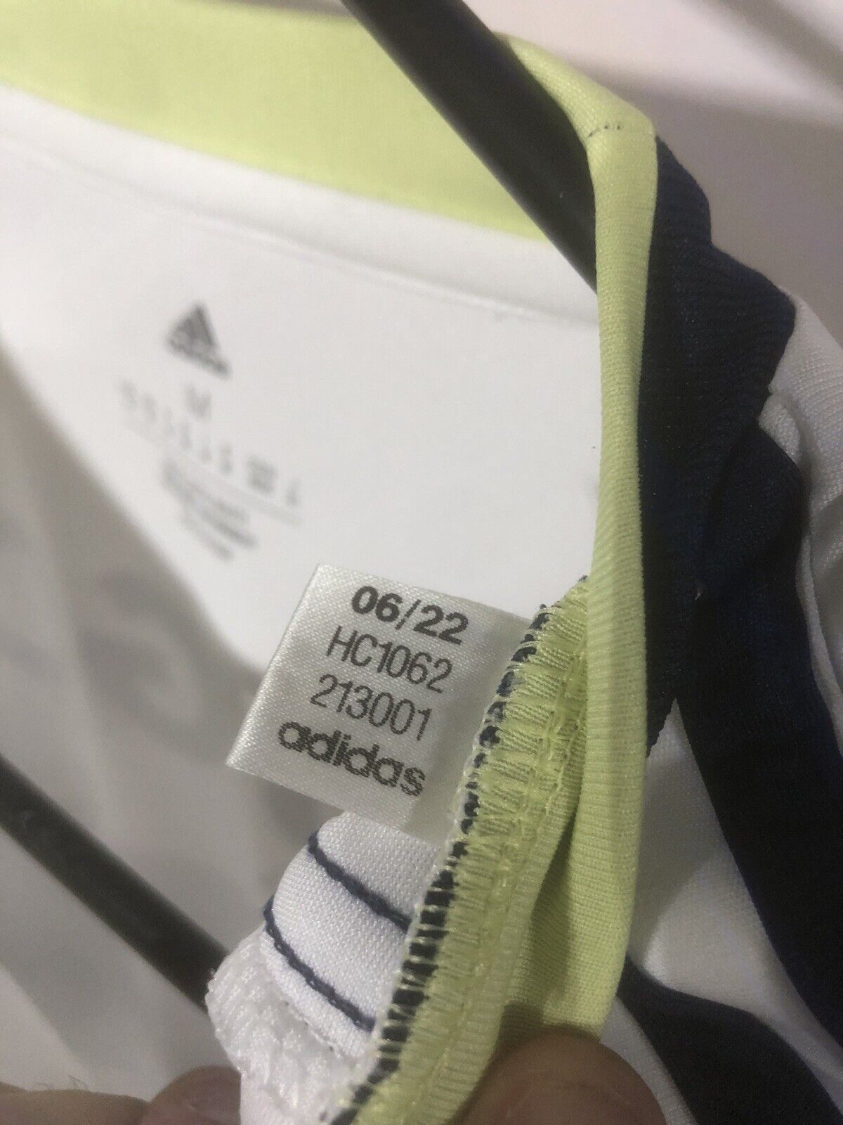 Show your support for Leeds United with this excellent condition Rodrigo M. #19 2022/23 home football shirt. The shirt features short sleeves and a loose fit, making it suitable for adults in a size medium. The shirt is made by Adidas and has a product code of HC1062, ensuring that you get a genuine item. This shirt has collar to hem measurements of 29 inches and pit to pit measurements of 21 inches. The shirt has an official Rodrigo M. #19 nameset & a Premier League patch. This shirt is suitable for wearing casually or at the match, so why not show your love for Leeds United by getting this shirt today.