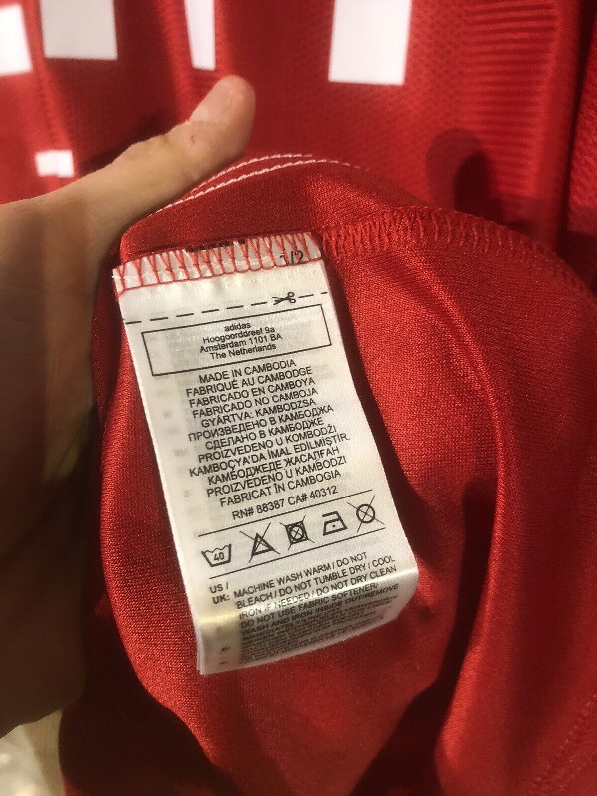The shirt is in the classic Bayern Munich red colour and has the club crest embroidered on the chest. It is an authentic item, made in Cambodia and is classified as sports memorabilia. This football shirt is a must-have for any Bayern Munich or Leroy Sane fan and is a great addition to any sports memorabilia collection.