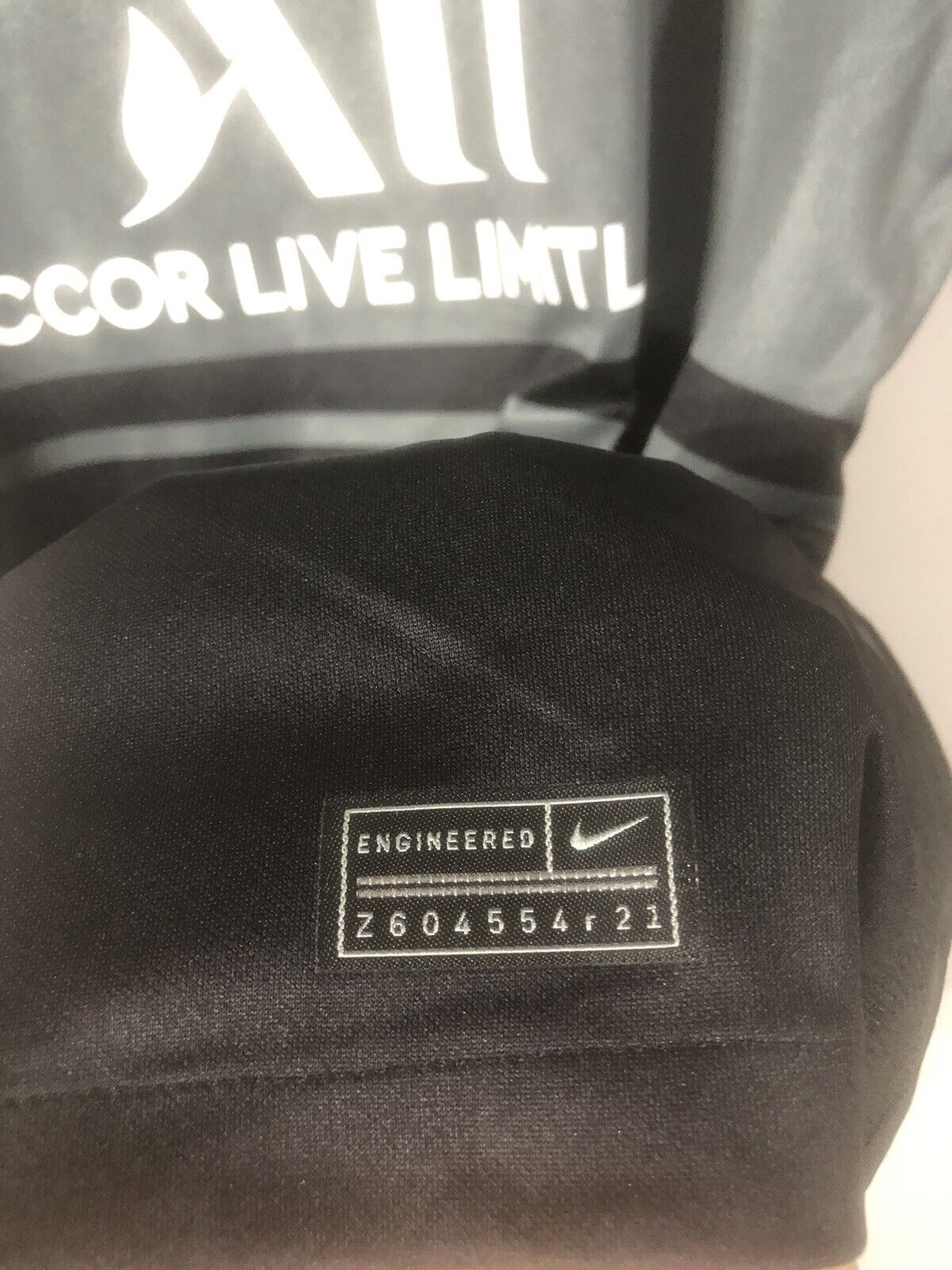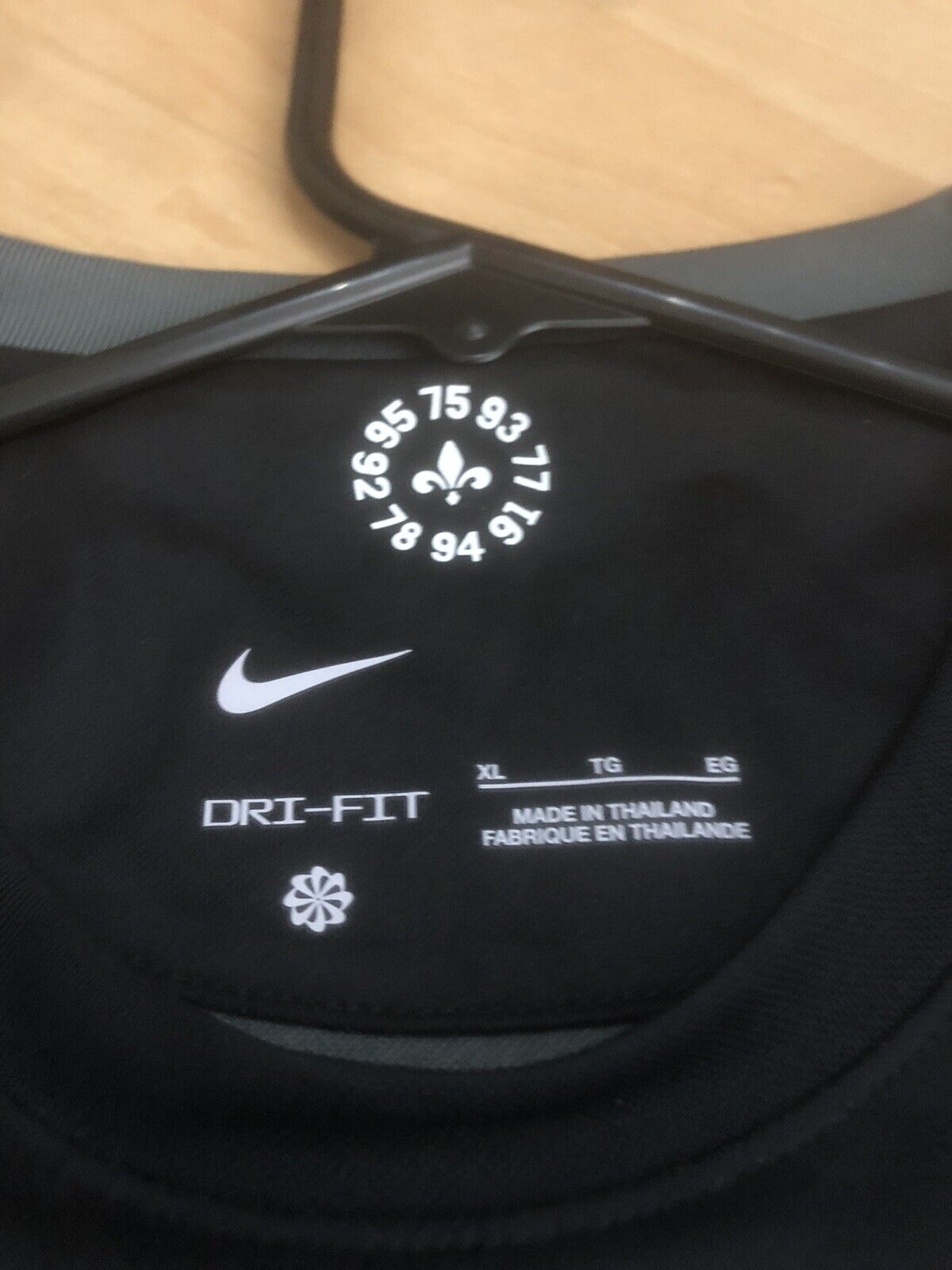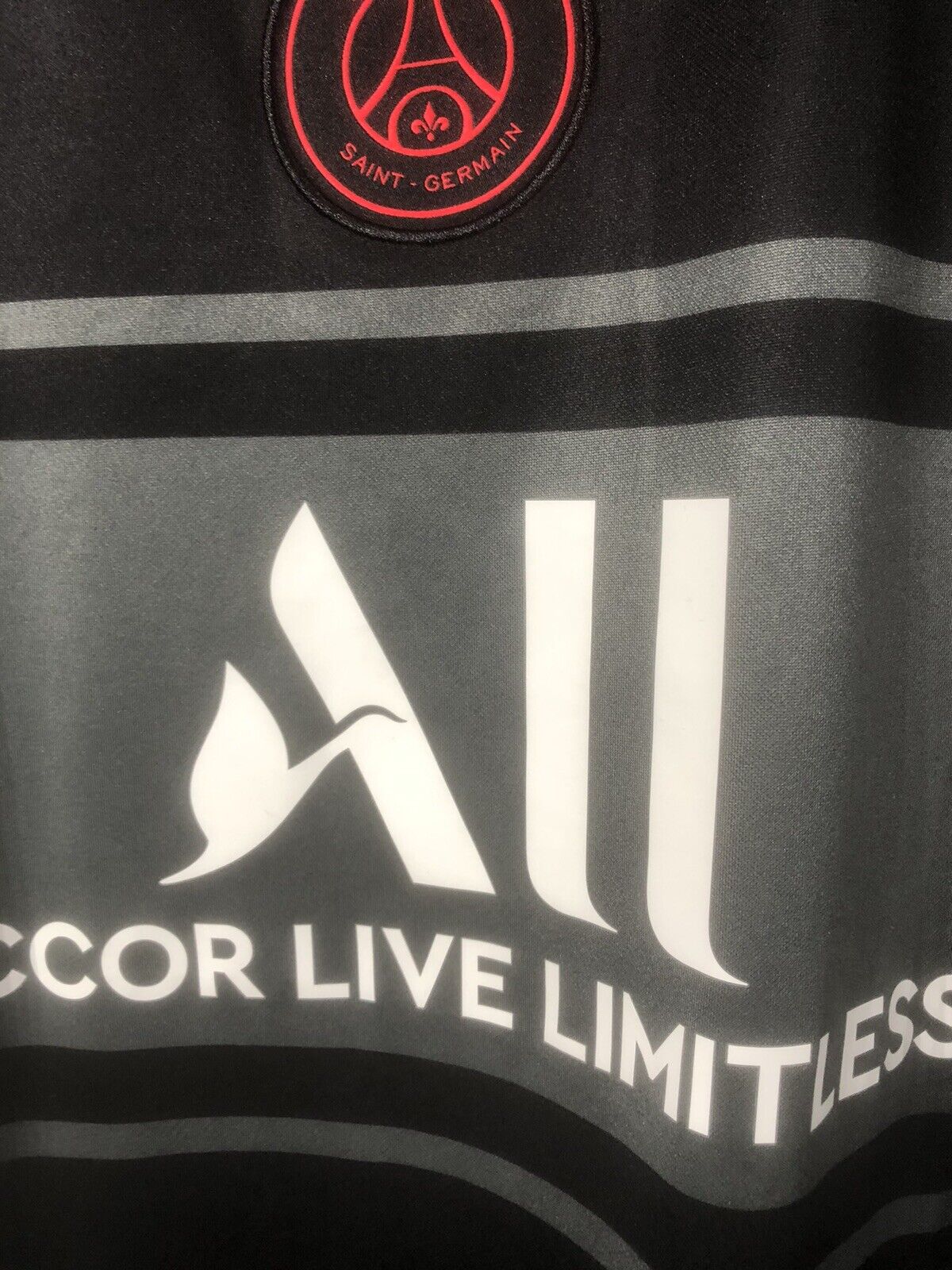 Show your support for Paris St Germain with this excellent condition Sergio Ramos #4 2021/22 3rd football shirt. The classic black shirt features short sleeves and a loose fit, making it suitable for adults in a XL. The shirt is made by Nike and has a product code of DB5900-011, ensuring that you get a genuine item. This shirt has collar to hem measurements of 30 inches and pit to pit measurements of 22 inches. The shirt has an official Sergio Ramos #4 nameset. This shirt is suitable for wearing casually or at the match, so why not show your love for Paris St Germain by getting this shirt today.