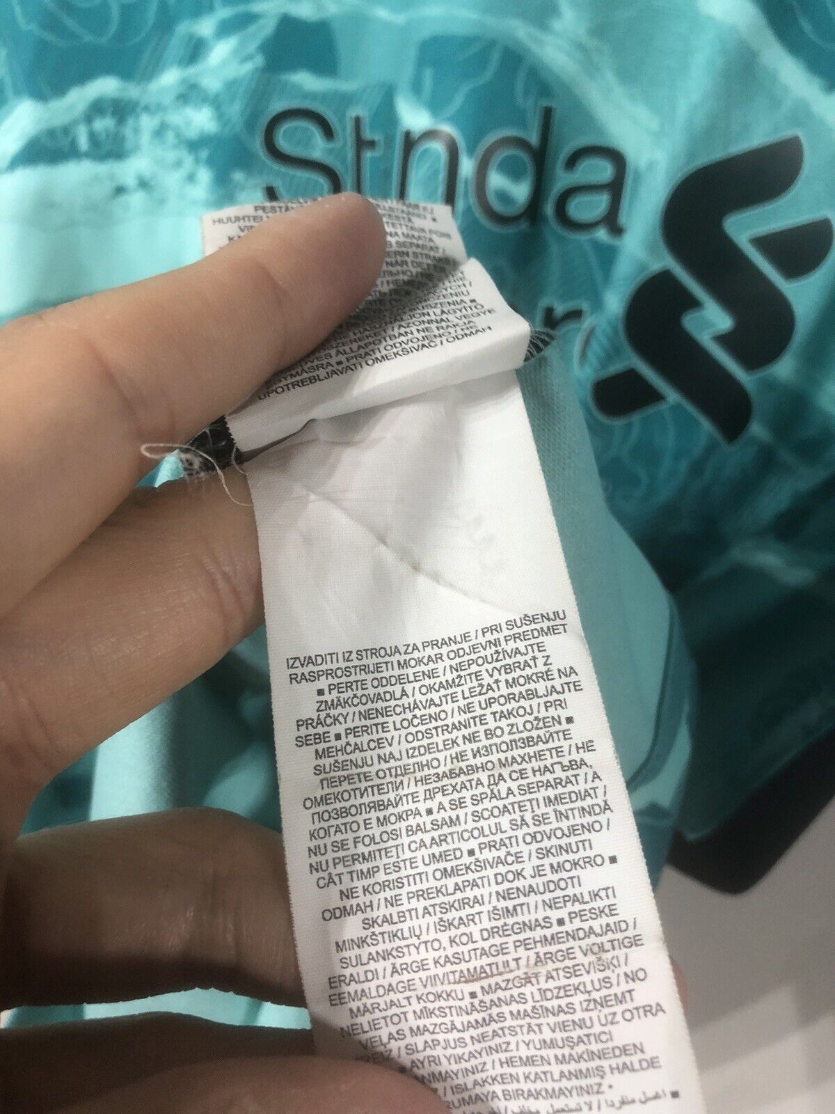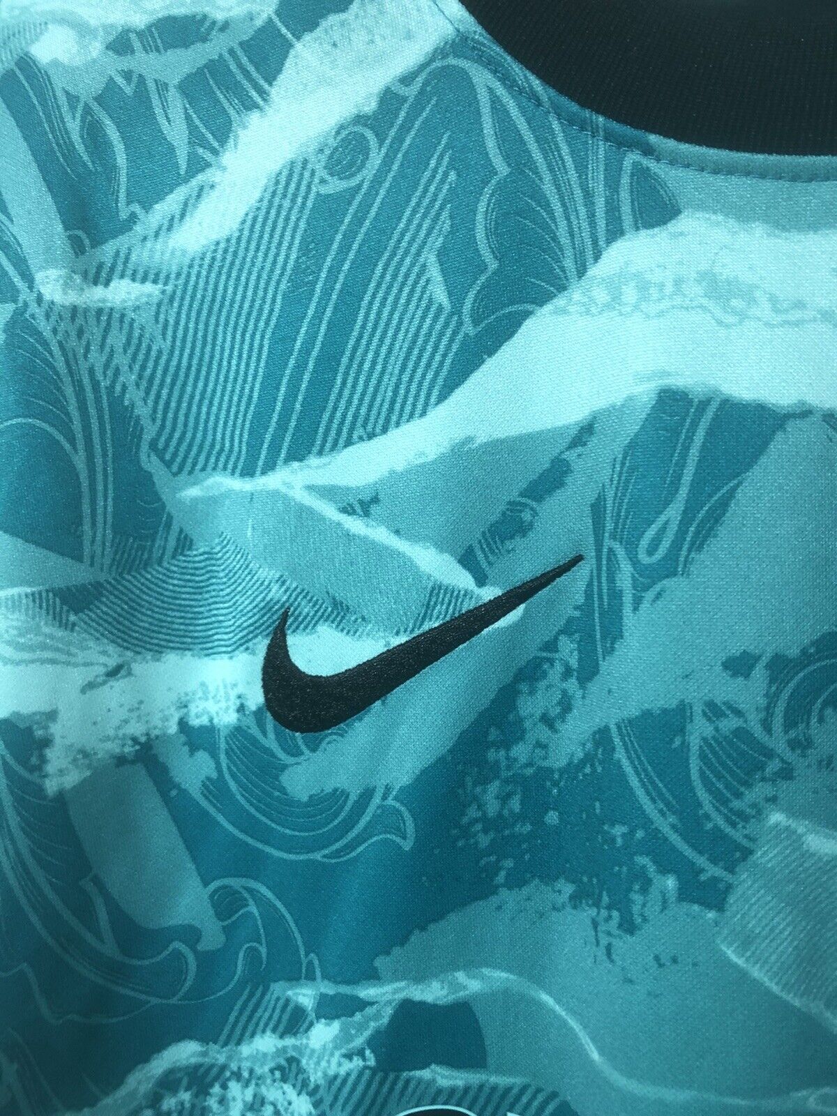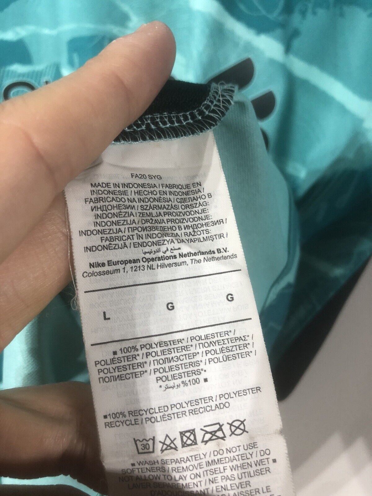 Show your support for Liverpool with this excellent condition Shaqiri #23 2020/21 away football shirt. The green shirt features short sleeves and a loose fit, making it suitable for adults in a size large. The shirt is made by Nike and has a product code of CZ2635-354, ensuring that you get a genuine item. This shirt has collar to hem measurements of 29 inches and pit to pit measurements of 21 inches. The shirt has an official Avery Dennison Shaqiri #23 nameset and official Premier League Champions patches. This shirt is suitable for wearing casually or at the match, so why not show your love for Liverpool by getting this shirt today.