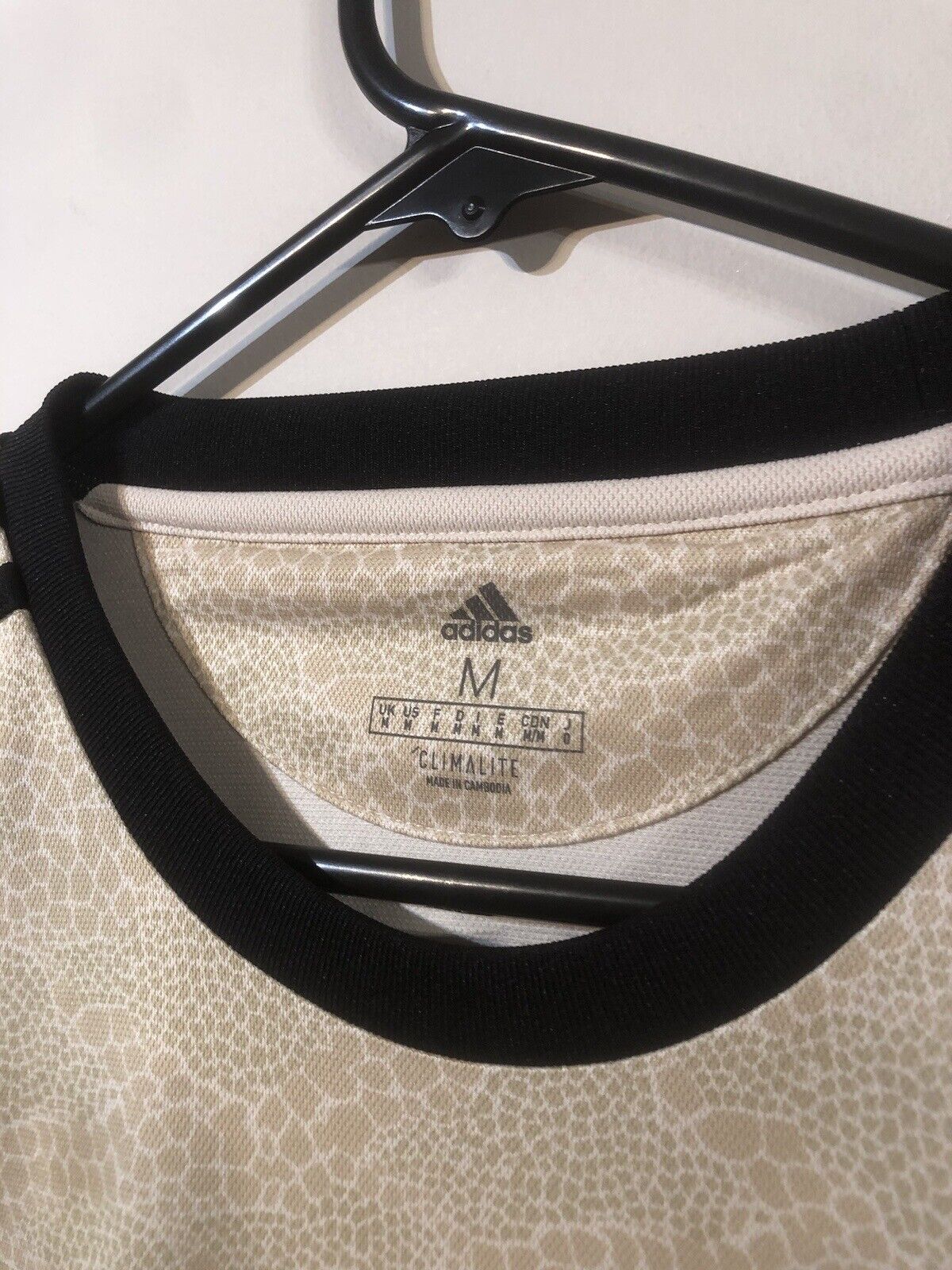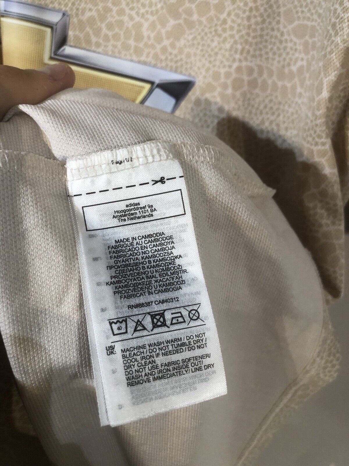 The shirt is a size M and has short sleeves, perfect for wearing during the summer months. The main colour of the shirt is gold, with accents of black and white. This shirt is a modified item, with a Shaw #23 euro nameset added to the back. It is suitable for adults and is an official Manchester United product. Get your hands on this shirt and show your support for the team today!