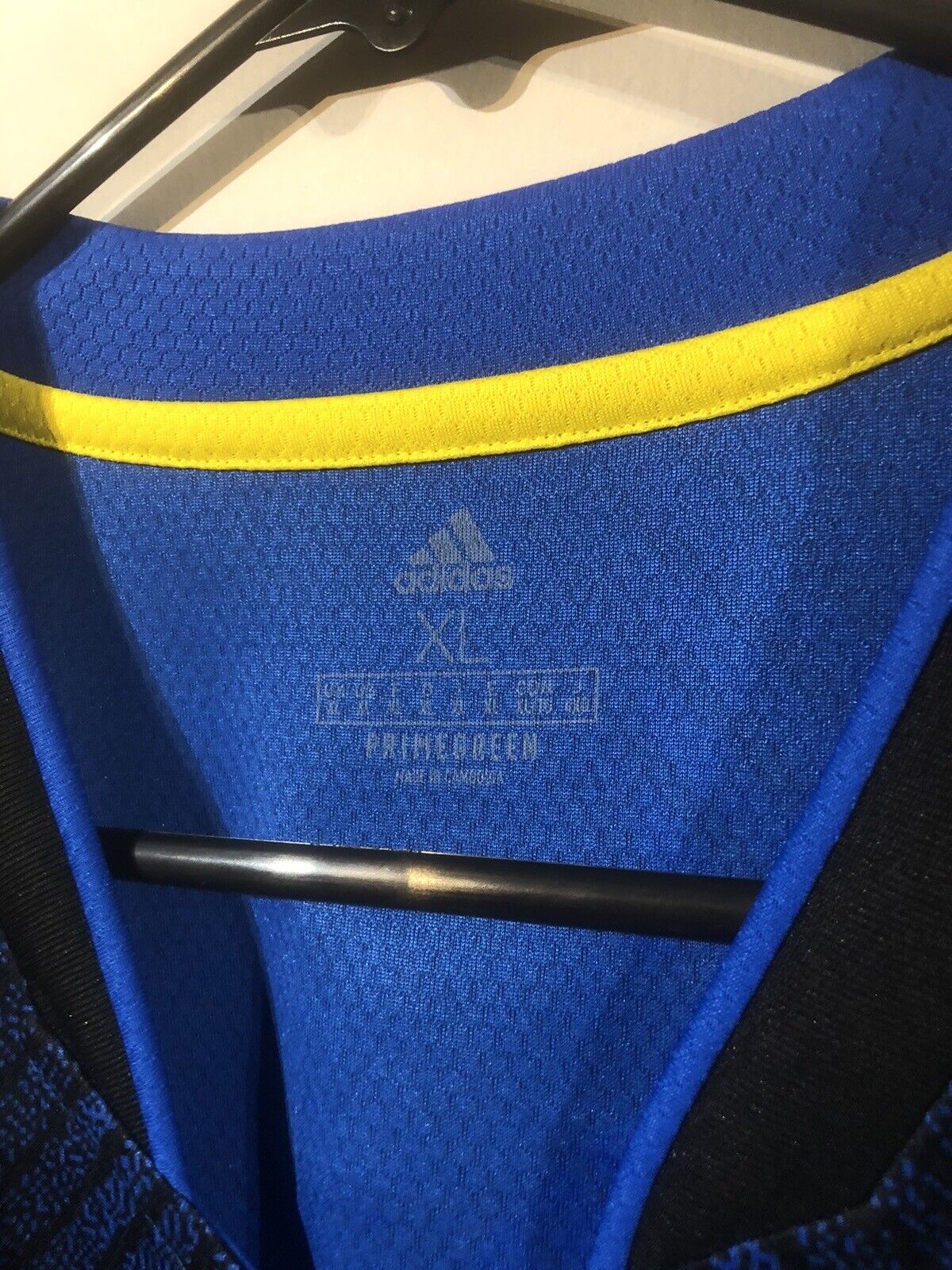 This is a brand new Manchester United 3rd kit shirt for the 2021/22 season. The shirt features Luke Shaw's name and number, #23, on the back, with short sleeves and a blue colour scheme. This shirt is suitable for adult sizes and is an official adidas product.