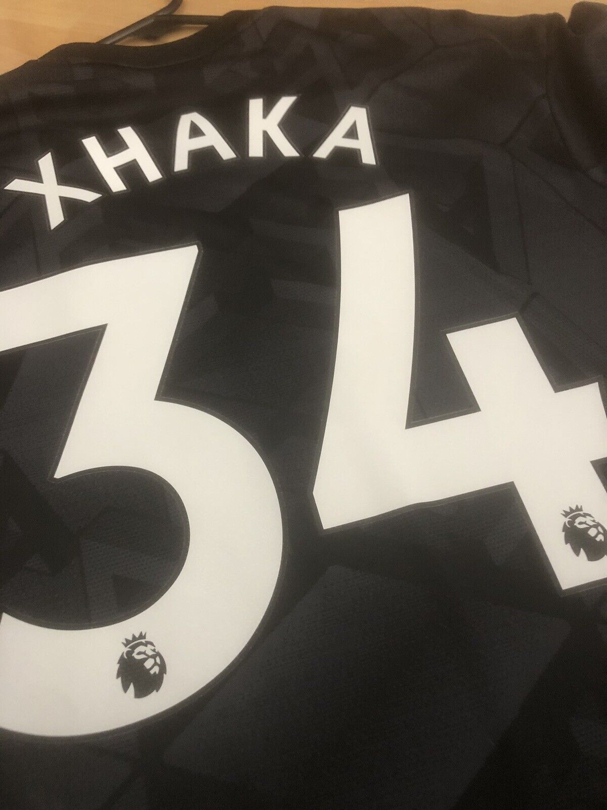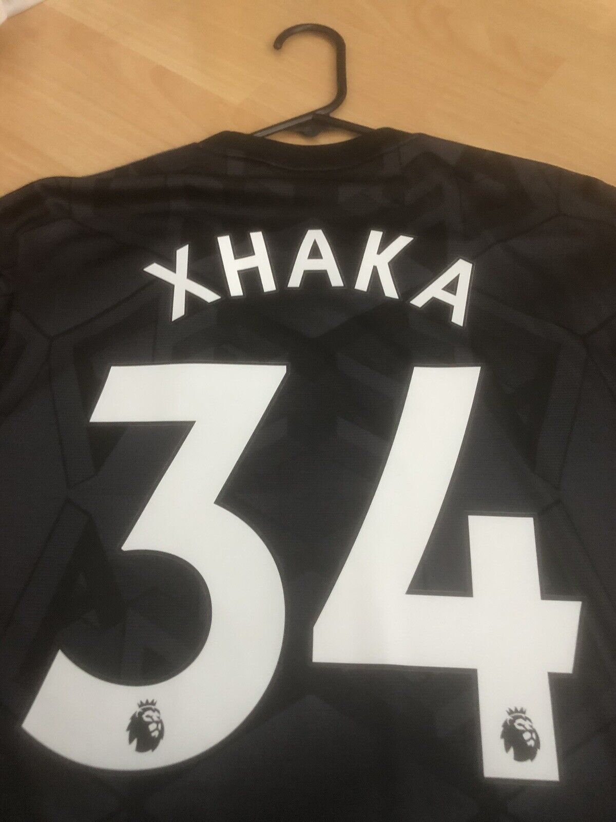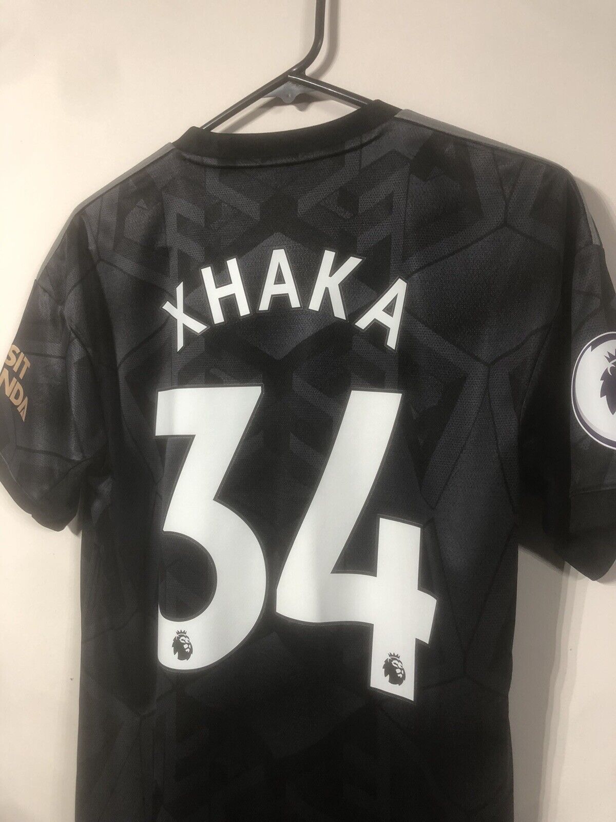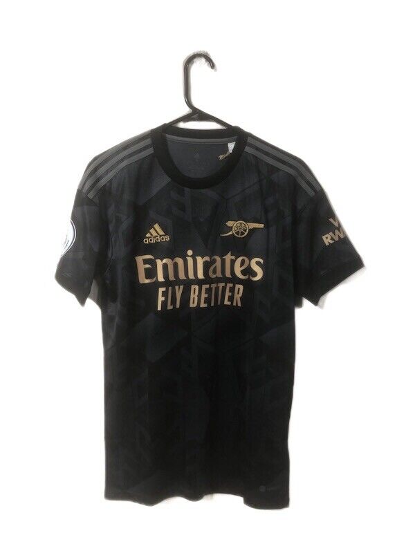 Show your support for Arsenal with this brand new Xhaka #34 2022/23 away football shirt. The black shirt features short sleeves and a loose fit, making it suitable for adults in a small. The shirt is made by Adidas and has a product code of H35902, ensuring that you get a genuine item. This shirt has collar to hem measurements of 29 inches and pit to pit measurements of 19 inches. The shirt has an official Xhaka #34 nameset and an official Premier League player size patch. This shirt is suitable for wearing casually or at the match, so why not show your love for Arsenal by getting this shirt today.